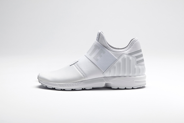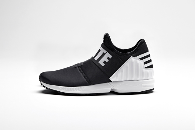 もう一つは adidas Original のアイコンモデルでもある ZX シリーズの最新作、「ZX FLUX PLUS (ゼットエックス フラックス プラス)」 。シュータン部分にジャガードで施された大胆なホワイトロゴが特徴の同モデルは、ヒールケージやソールにあしらったトルションバーなど ZX シリーズを象徴するディテールを踏襲しながらも、スリップオン仕様を採用したミニマムかつソリッドなルックスに仕上がった。メインアッパーのマテリアルには、ネオプレーンを使用した伸縮性のある素材を使い、フィット感も追求した。