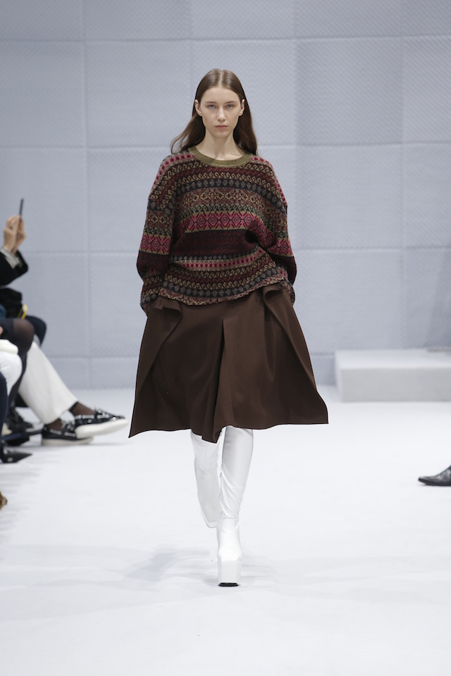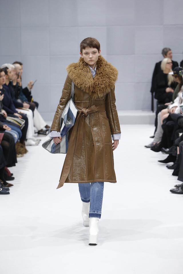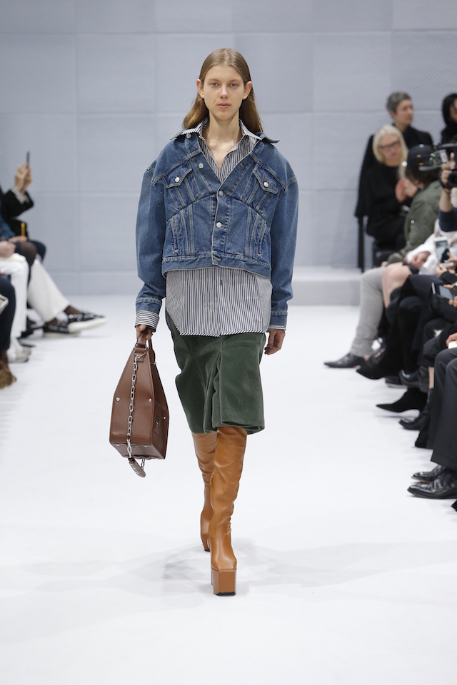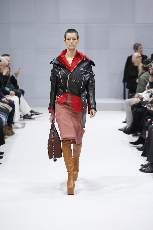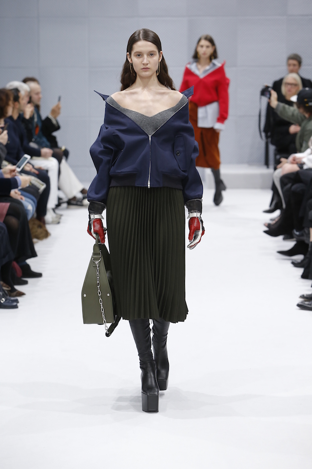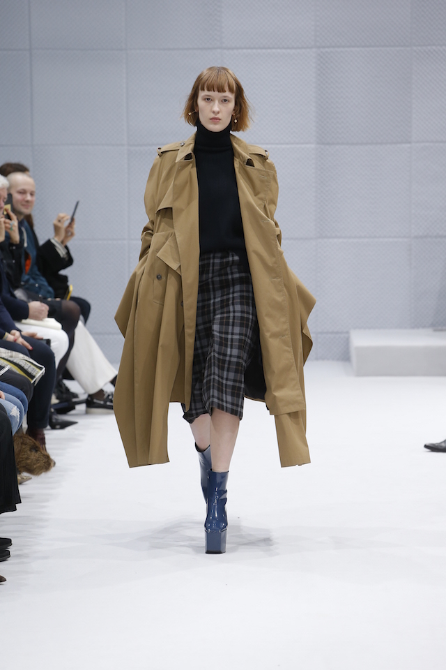 「D.I.Y.」で「ロー・キー」なスタイルで次世代のアヴァンギャルドを地で行く Vetements に同じく、リアルクローズをベースに発展、進化、そして変形させたコレクションだが、一方でメゾンのヘリテージに対する敬意も忘れてはいない。実際、序盤に登場したベーシックなセットアップでさえ、そのウエストはまるで彫刻のようにシェイプされ、360度どこから見ても構築的なシルエットを完成させている。