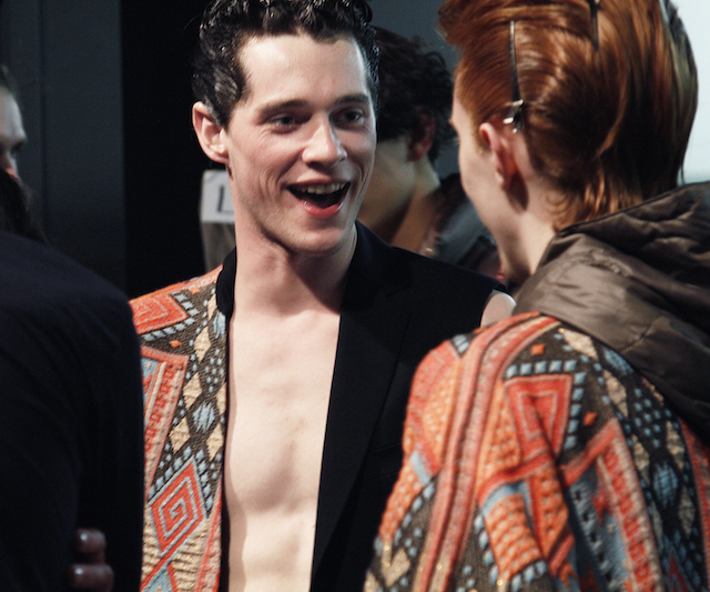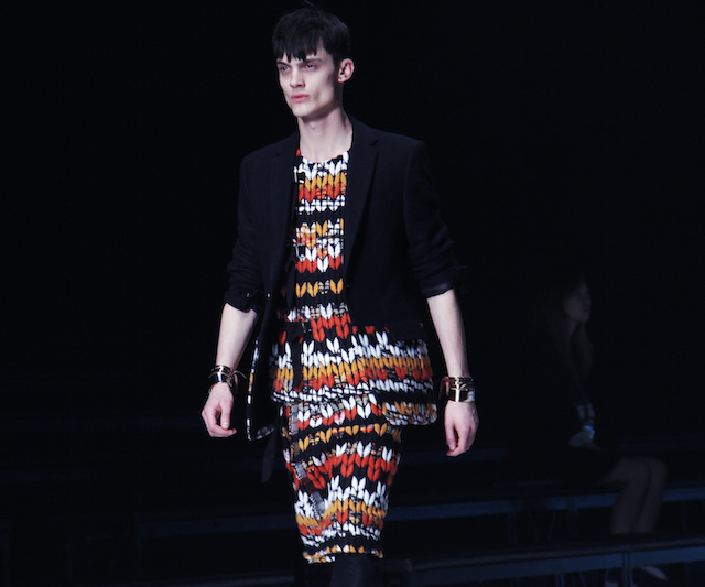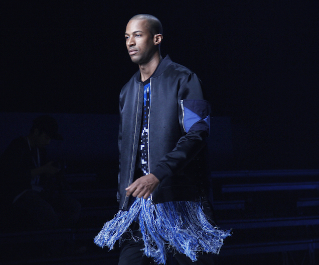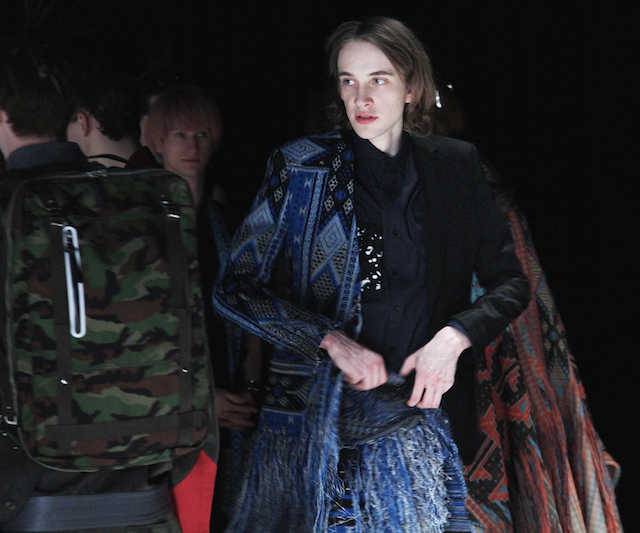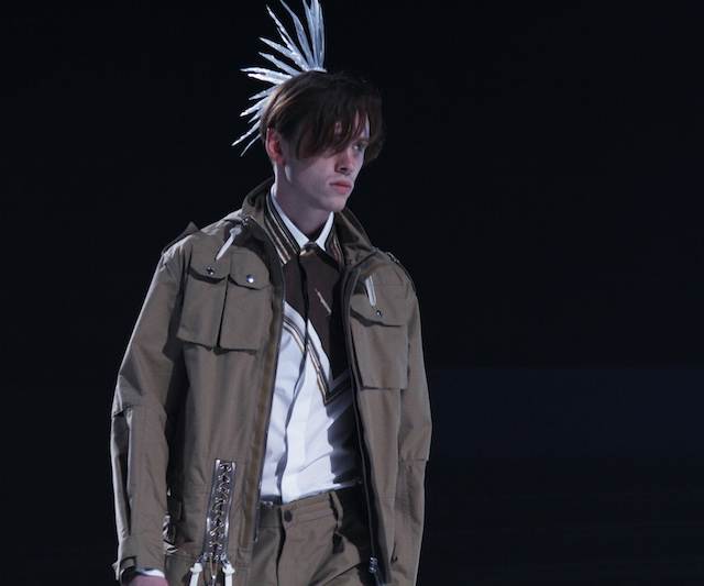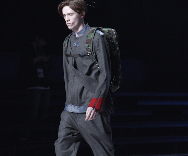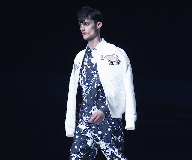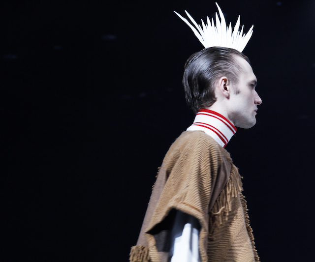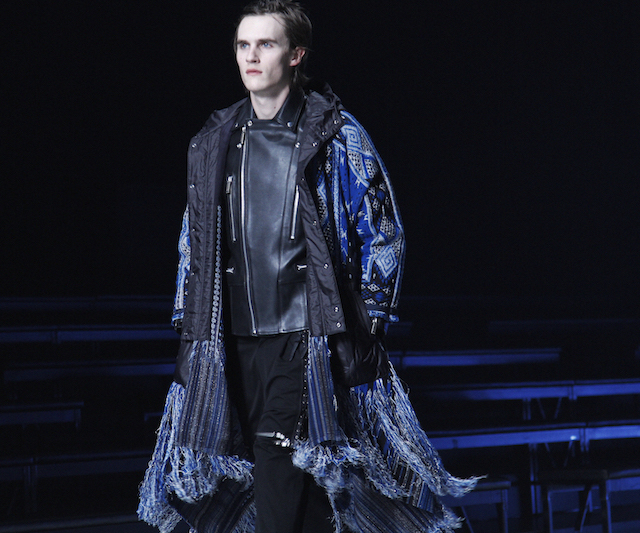 そんな久保の口から、今季2016-17年秋冬コレクションのランウェイショー後のインタビューで「何か新しいこと」という言葉が聞けたのは大きな収穫だ。日本のジュエリーブランド HEAVY & Co. blacksmith (ヘヴィー&コー ブラック・スミス) とのコラボによって発表された今回のコレクションでは、ブランドのアイデンティティであるハイブリッドなストリートウェアをベースに、ジュエリー感覚のレースアップディティールや、グラマラスなフリンジが新鮮な印象を与えている。また「より洋服にフォーカスを置いたコレクションにしたかった」という言葉通り、リハーサルで登場したカラフルなウィッグは本番では出番が無かったことも言及しておこう。異国情緒溢れるフリンジケープ、MA-1 を変形させたようなツイードジャケット、そしてこれまたこれまであまり yoshio kubo のランウェイでは見かけなかったワイドレッグのトラウザーなど、「いつもの定番」から「新たなフェイバリット」まで巧みに操った今季コレクションは、久々に MBFWT にフレッシュなエネルギーをもたらした。