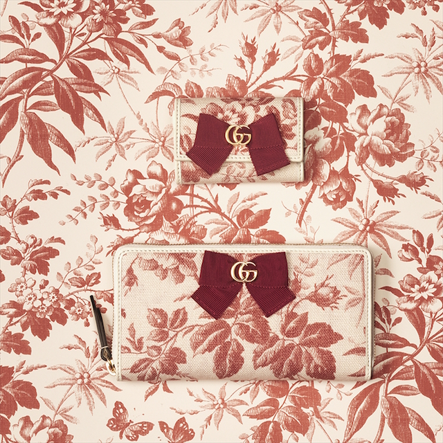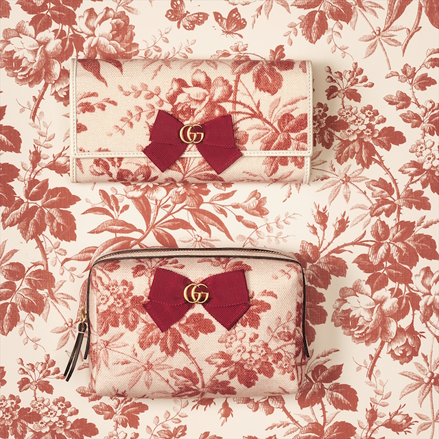 GG Ribbon Wallet ¥ 85,320 (税込) GG Ribbon Pouch ¥ 37,800 (税込) ✳︎ ともに日本限定