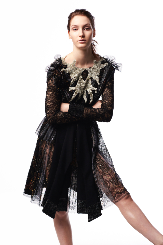 Design Dubai & Fashion Council (DDFC) とのパートナーシップのもと Style.com/Arabia (スタイルドットコム/アラビア) が主催した Fashion Prize は、アラブ地域の才能ある若手デザイナーを発掘することを目的としたコンテストで、アラブ地域15ヶ国から200人のデザイナーが参加した。同コンテストの受賞者である Hussein Bazaza の特徴は、重厚感のあるパターン、形、テキスチャー。2016年春夏コレクション「Mithra (ミトラ)」の続編であるカプセルコレクションは、ペルシャ神話に登場するプリンセス Mithra をイメージし、古代ペルシャ王により投下された核爆発後の世界に再び開花する自然を表現した。デザイナーが「ドラマチック、フェミニン、エッジ」と表現した同コレクションは、幾重にも複雑に組み合わされたマテリアルが近未来的な独自の構造を生み出している。しかし、そのディテールやシルエットは繊細かつ優美で美しく、デザイナーの抜きん出た才能を窺い知ることが出来るコレクションとなっている。Hussein Bazaza は受賞スピーチで「優秀で勤勉なデザイナーがたくさんいる中で受賞できたこと が信じられない。懸命に作り上げて良かった。嬉しい。」と語った。