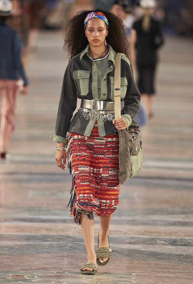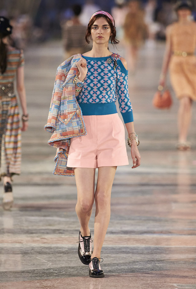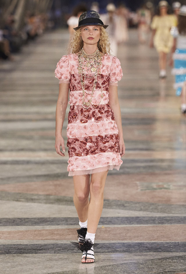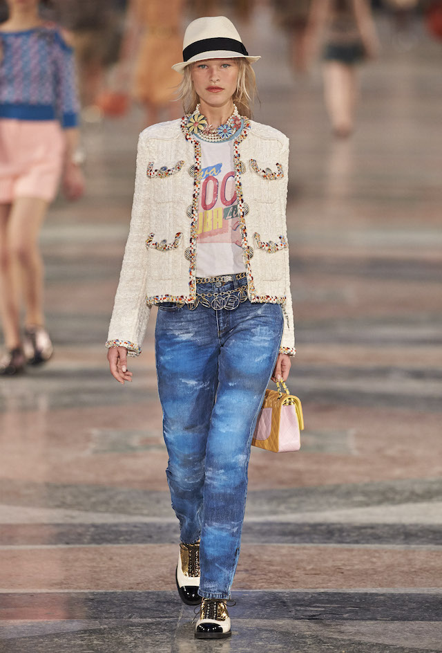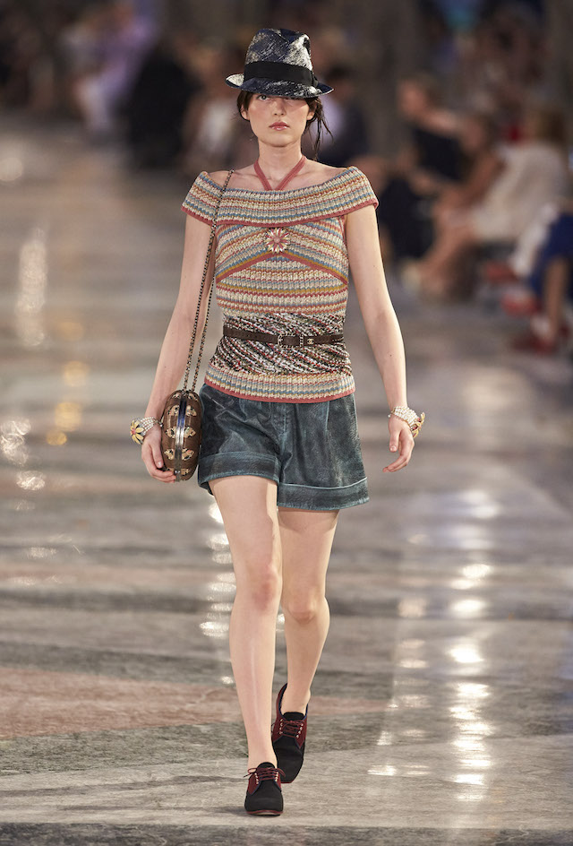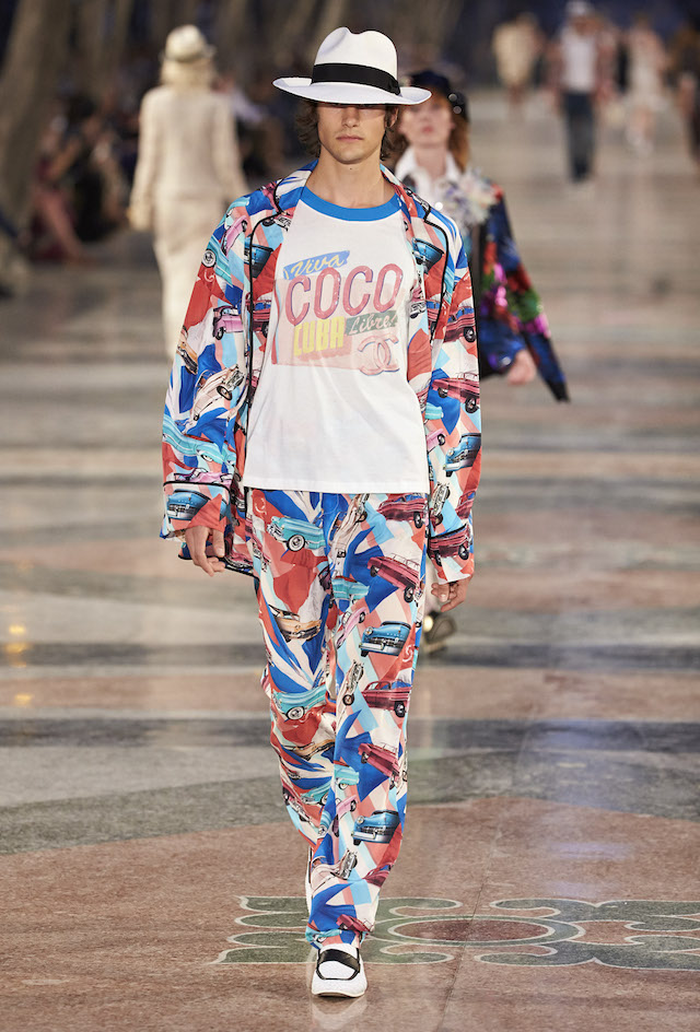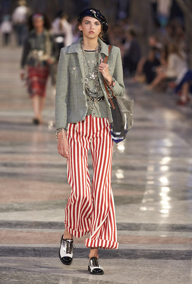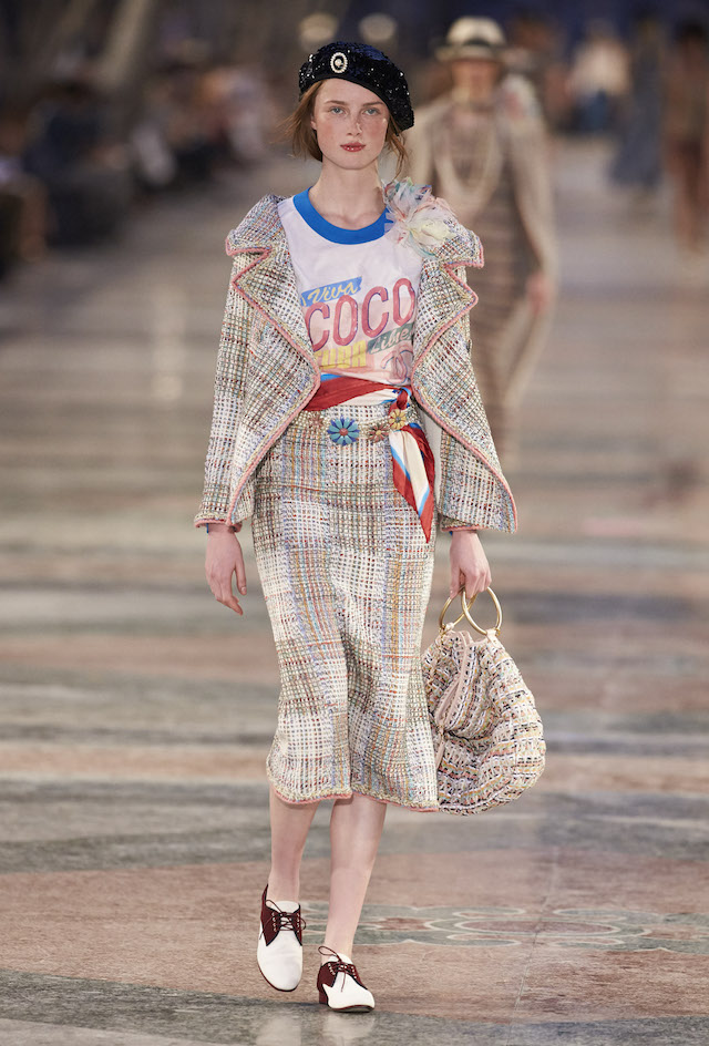 フィナーレで登場したのは、華やかなスパンコールのタキシードに身を包んだ Karl Lagerfeld と、Chanel の最年少モデルこと Hudson Kroenig (ハドソン・クローニング)、現地のラテンダンサーたち、そして陽気なリズムに軽やかなステップを刻むモデルたち。南国の楽園を熱狂の渦で包み込んだランウェイショーに、Vanessa Paradis (ヴァネッサ パラディ)、Gisele Bündchen (ジゼル ブンチェン)、Alice Dellal (アリス デラル)、Gaspard Ulliel (ギャスパー ウリエル) をはじめとするセレブリティたちも陶酔したことに違いない。