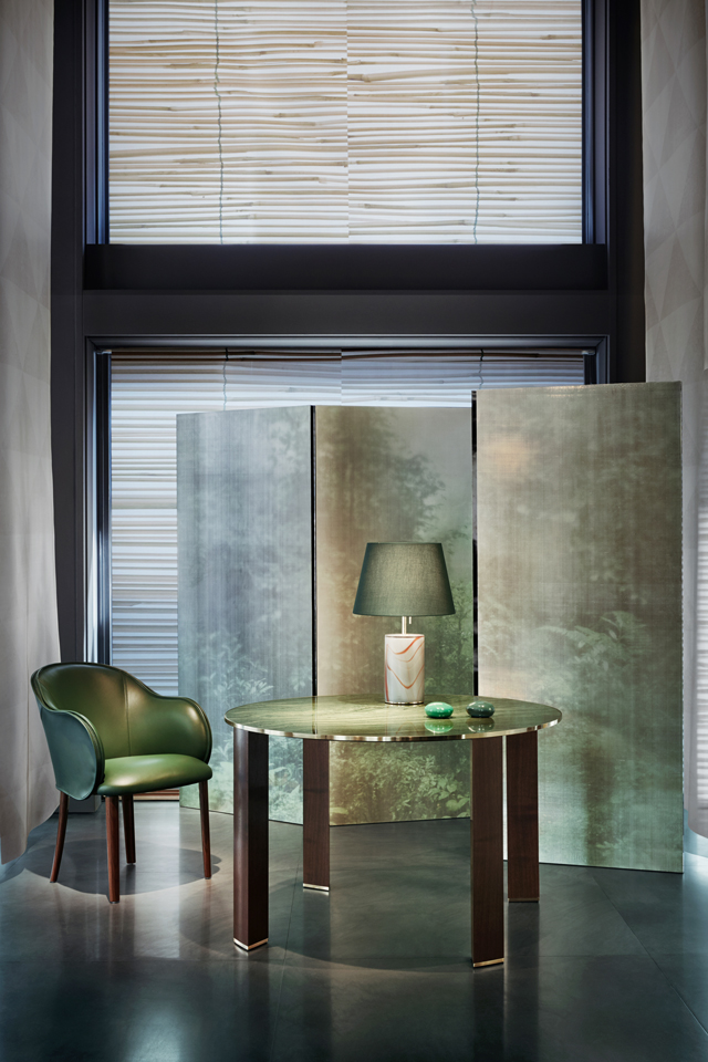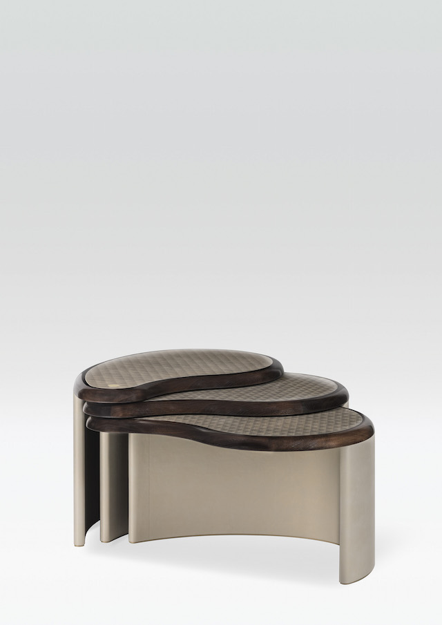 今回、4月12日からイタリア、ミラノにて開催された世界最大の家具の見本市「ミラノサローネ 2016 (Salone del Mobile Milano 2016)」にて発表された最新コレクション、テーマは「THE TIME OF LIGHTNESS」。都市と自然のランドスケープの交錯、そしてこれら2つの対極が作り出す無限の可能性を表現したコレクションでは、自然が生み出す雄大なグラデーションを映し出したような美しいテキスタイル、そしてヒマラヤシャイニーラッカー、木目が見えるシルバーリキッドメタルラッカー、ブラスカーブド (真鍮彫刻) リキッドメタルラッカー、そしてホワイトゴールドリキッドメタルラッカーなど、スリークな質感の素材を巧みに織り交ぜたファニチャー、ホームデコ、そしてテーブルウェアなどが揃った。