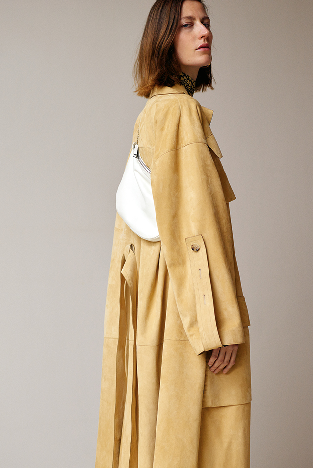 今季登場したバッグは、新作の「ショッパー」、そして「チェーンバッグ」、「トリフォールド」、そして「クロワッサン」の計4モデル。中でもキャンペーンビジュアルにも取り入れられた「トリフォールド」は、リュクスなカーフレザーの質感と、エブリデイバッグとしてもぴったりな機能美が融合したファン垂涎のネクストアイコニック・バッグだ。