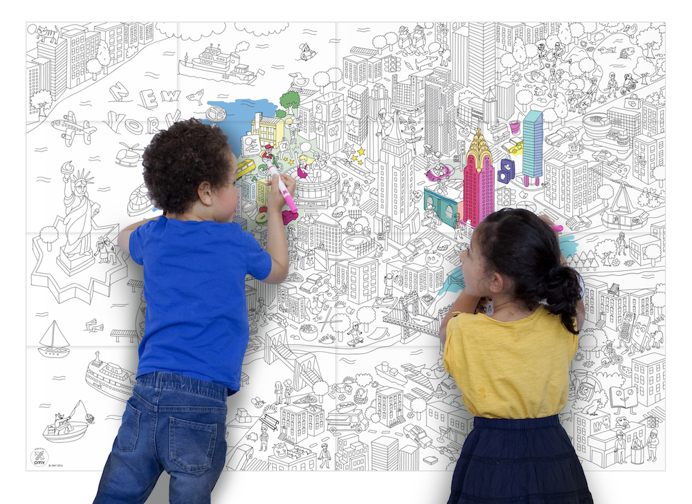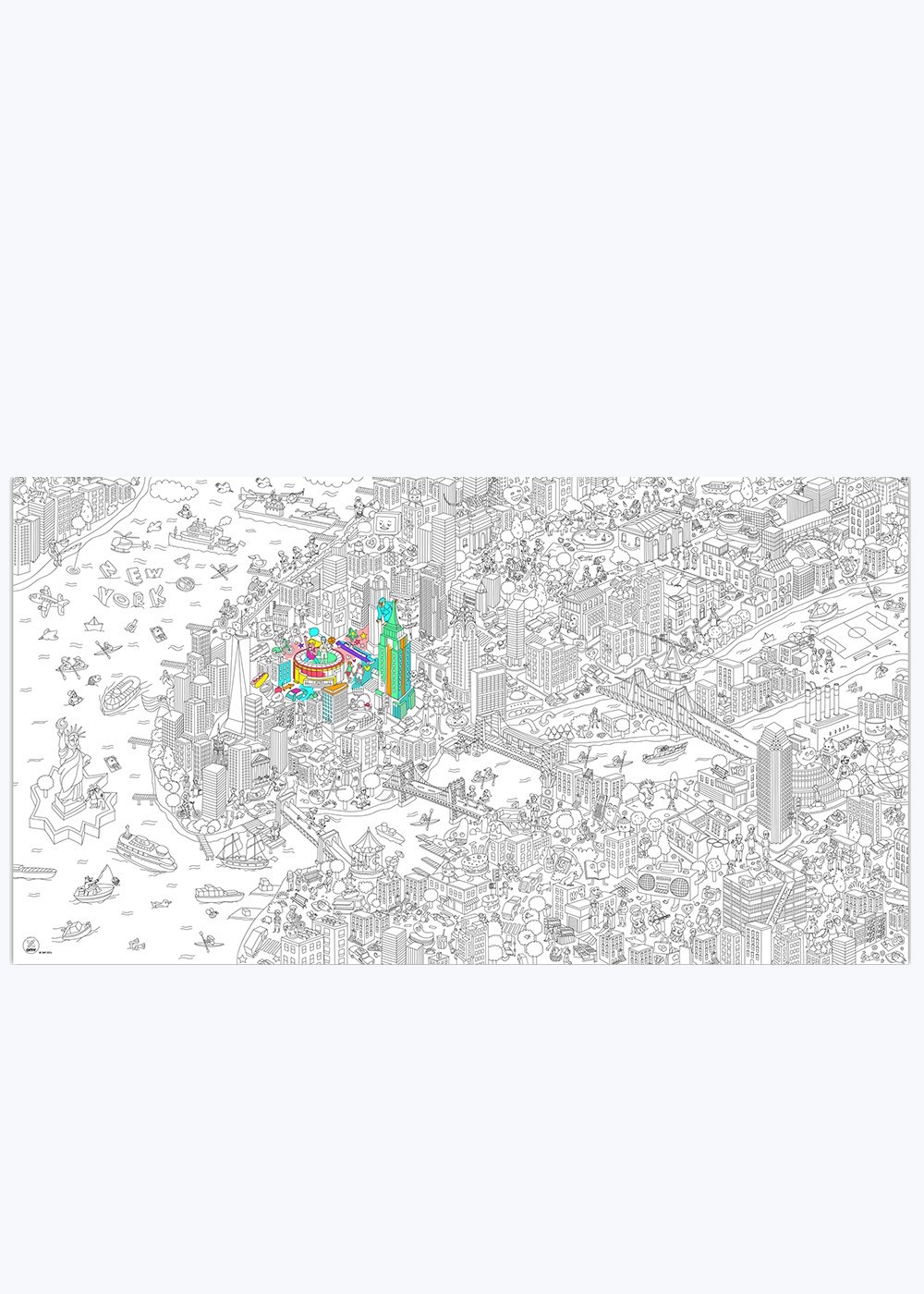 家族みんなで楽しめるデザインを提案する「OMY」から、ニューヨークの街がポップなイラストで描かれたビッグサイズの塗り絵ポスター。