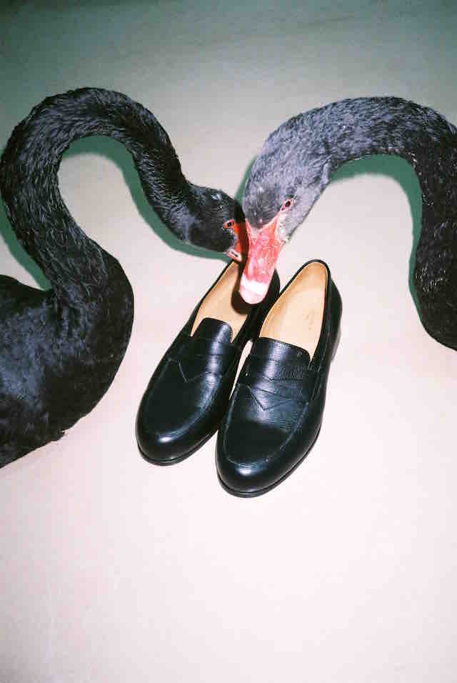 「シューズコレクションのローンチはブランドが成長していく中で自然な流れなんだ。ワードローブに不可欠なものとして、シックとリラックスだけでなく、マスキュリンとフェミニンな要素も提案したい。」と語る Loaëc と黒木。今年4月に発表されたカプセルコレクションに引き続き、中国人の機影フォトグラファー Ren Hang (レン・ハン) を起用したキャンペーンでは、孔雀の剥製などを使ったシュールなビジュアルを披露している。