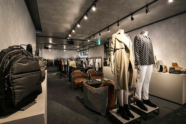 100%直営展開で商品、内装、音楽、ウェブサイトのコーディングまで、エンドユーザーとの接点となる場所は、すべて自社でイメージや制作などをコントロールすることにこだわりを持つ同ブランドが披露する店内は、グレーの色調、コンクリートのボックス什器、近代的な工業鉄のハンガーラックなど、至るところにそのこだわりが見え隠れする。