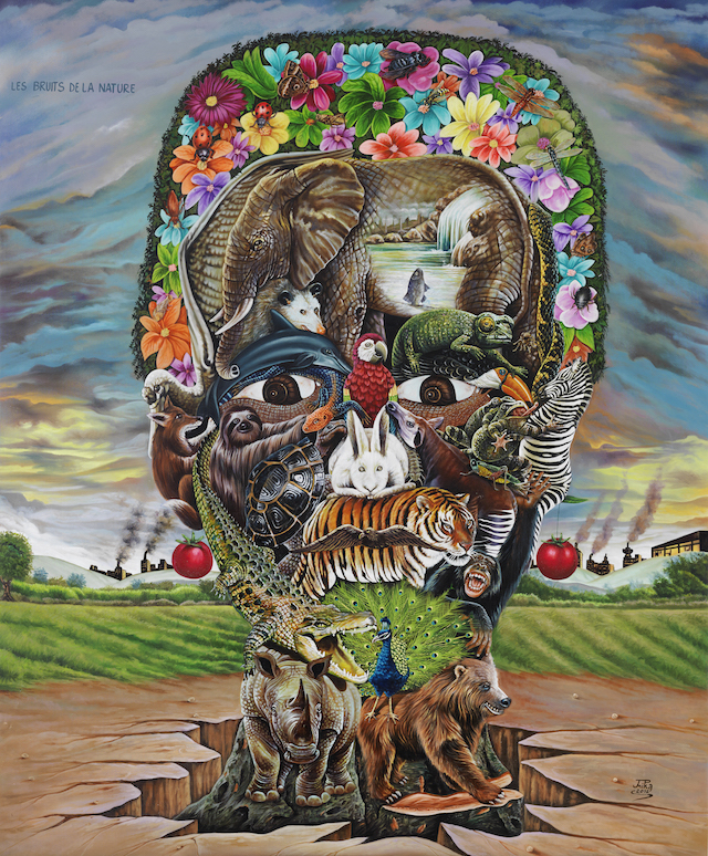 生きている動物を剥製のように捉えるのが宮崎の作品だとすれば、剥製に生き生きとした表情を見出すのは日本が誇る巨匠杉本博司だ。ジオラマとCGを用い作り出されたイメージは、浮世離れした幻想的な世界観が作り出されている。それらと対比するように、エネルギッシュな色彩で動物たちの生態を描き出すのは、ブラジルのアーティスト Adriana Varejão (アドリアーナ・ヴァレジャオ)、ベナンのアーティスト Cyprien Tokoudagba (シプリアン・トクダグバ)、コンゴの画家 Pierre Bodo (ピエール・ボド)、JP Mika (JP ミカ)、Moke (モケ) たちだ。
