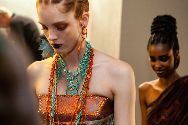 6日にパリにて開催された Jean Paul Gaultier (ジャン=ポール・ゴルチェ) の2016-17年秋冬オートクチュールコレクションから届いたバックステージ写真から、ディティールコンシャスなクチュールガウンにフォーカス。フォトグラファーは先シーズンに引き続き Rainer Torrado (レイナー・トラド)。顔をすっぽり覆い隠すファーのフード、こんな風にホールドしてたのか…