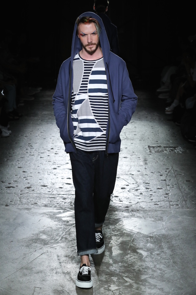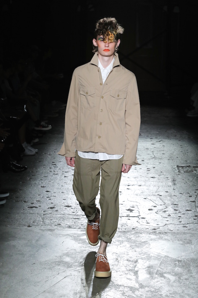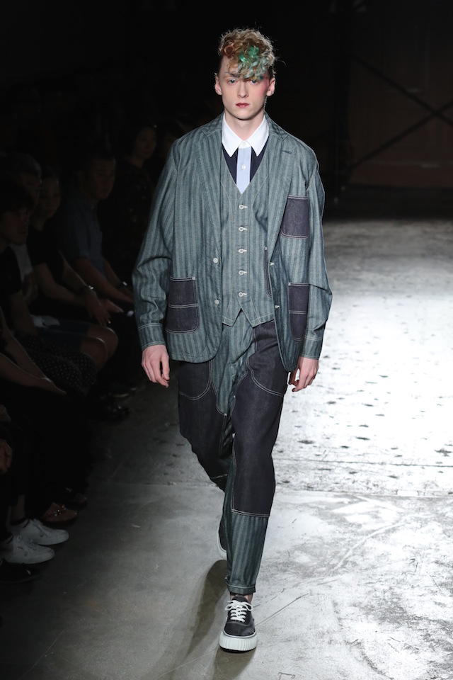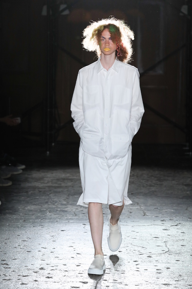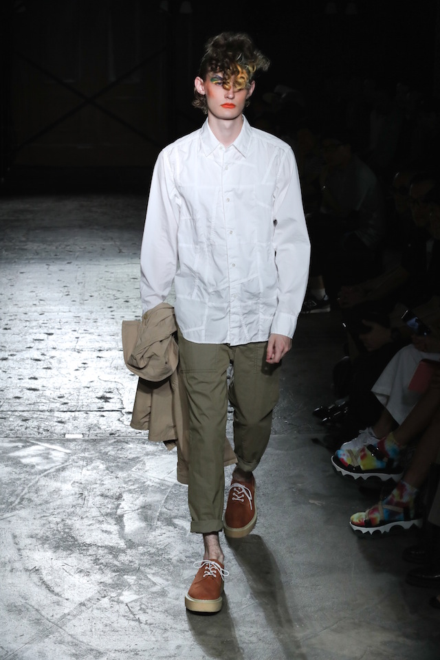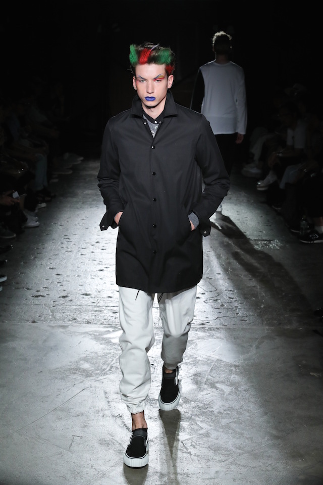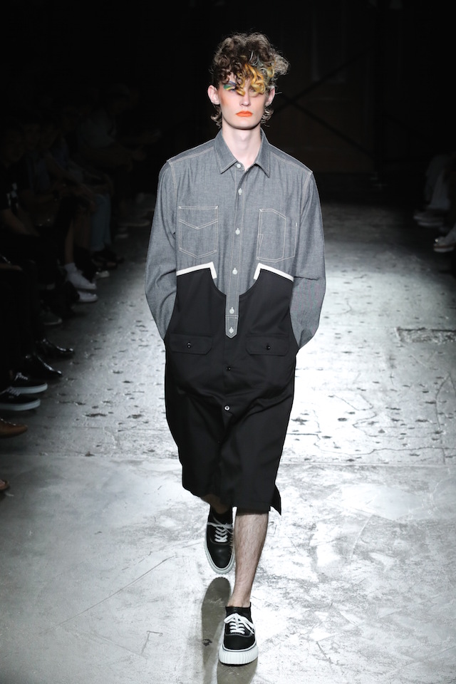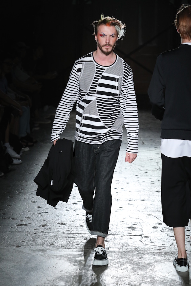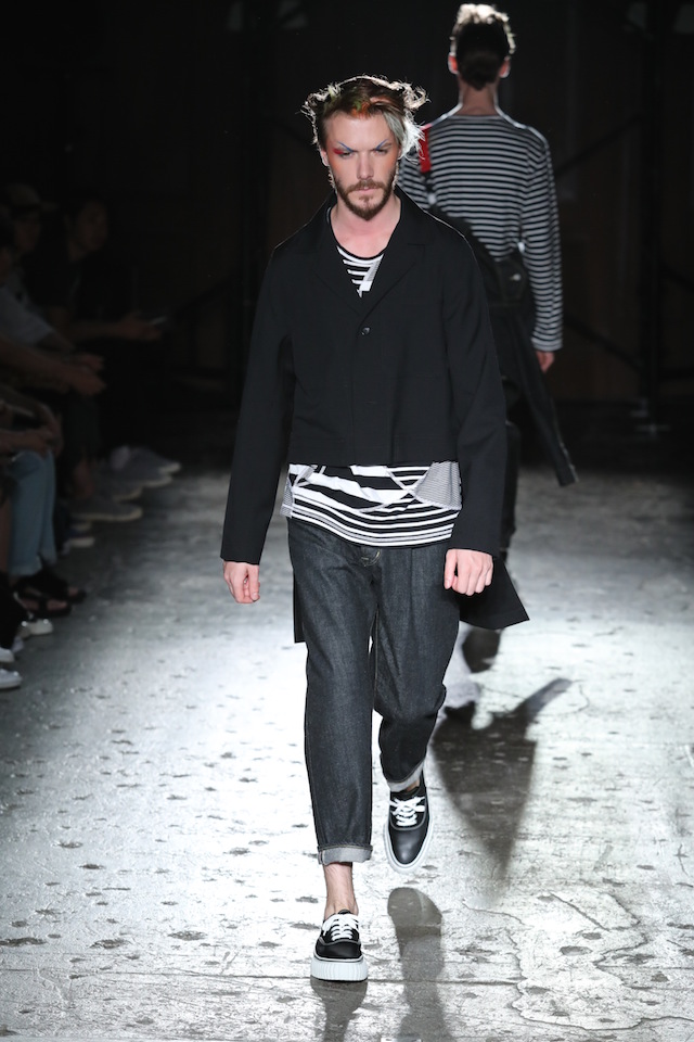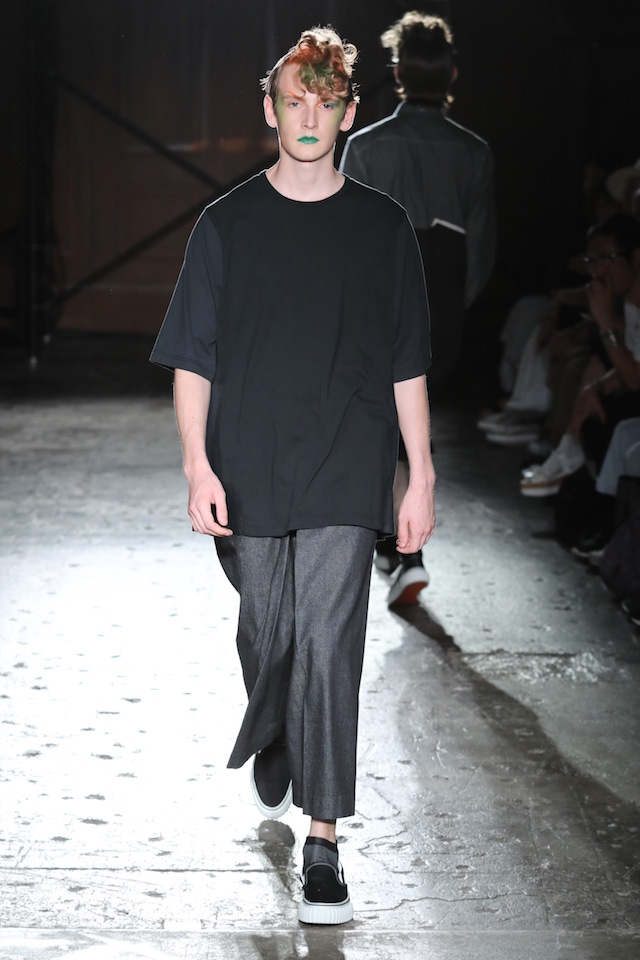 GANRYU (ガンリュウ) 2017年春夏コレクションが20日、南青山のイベントスペース IDOL (アイドル) にて開催された。2008年に COMME des GARÇONS (コム・デ・ギャルソン) 社から最年少のデザイナーとしてデビューした丸龍文人による同ブランドは、これまでベーシックなアイテムにひねりを効かせたデザイン、そしてストリートのリアルな気風を盛り込んだスタイリングで根強い人気を博してきた。