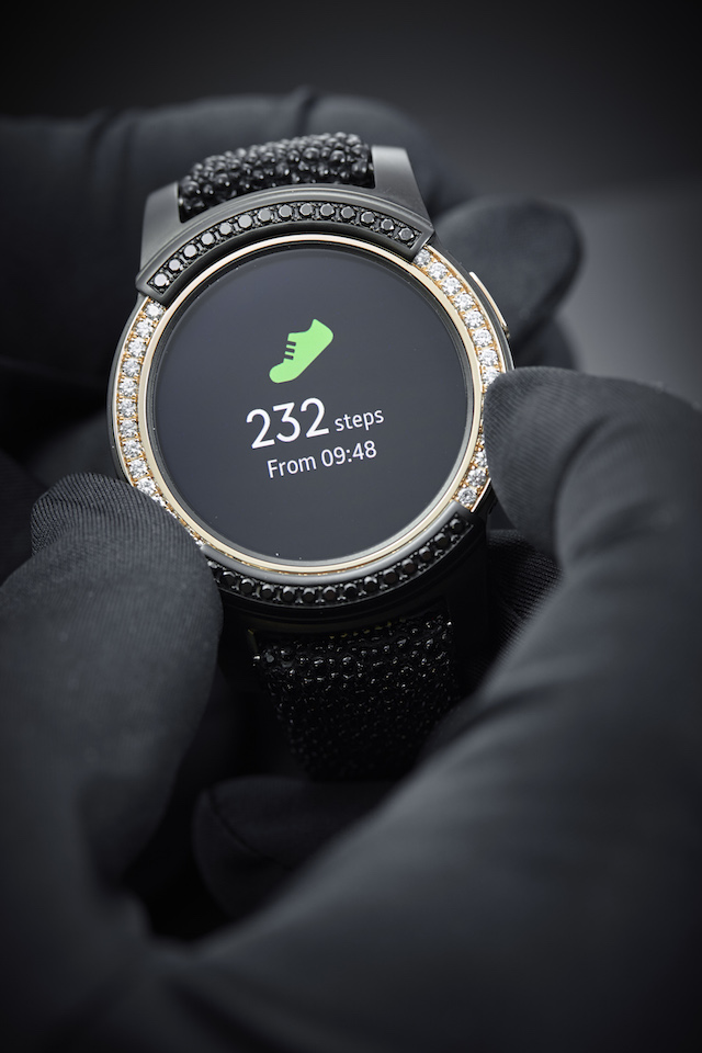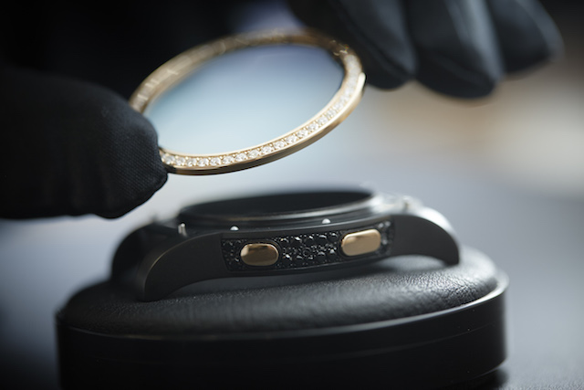 Samsung Gear S2 by de GRISOGONO (YG × SS ブラックDLCコーティング、ホワイトダイヤモンド 1.2ct、ブラックダイヤモンド 1.8ct) ¥ 1,730,000 ※2016年夏 発売予定