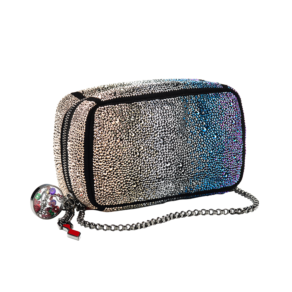 ロンサールピンクからナイトブルーの美しいグラデーションでミステリアスに輝く「Piloutin Strass (ピロタン ストラス)」は大海原をイメージ。ブラックスエードのカーフスキン全体に埋め尽くされたスワロフスキー・クリスタルが様々な角度によって魅惑のムードを醸し出し普段のスタイルをより一層引き立たせてくれる。