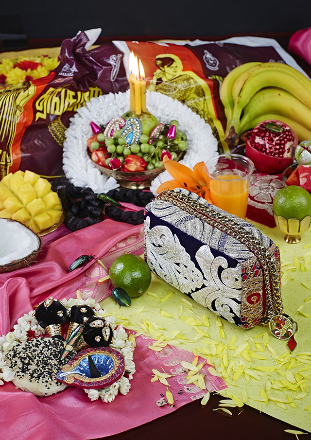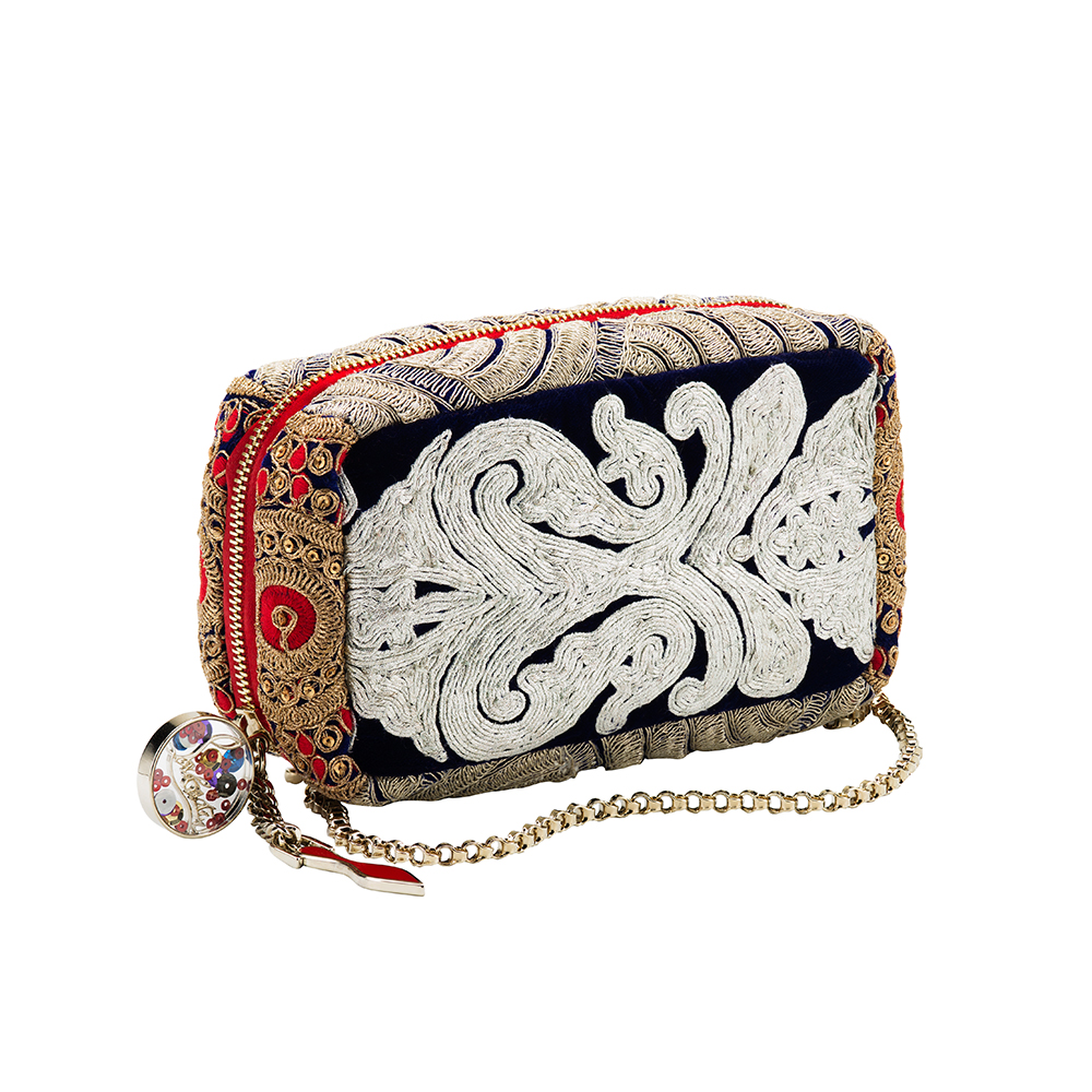 そして、「Piloutin Maharaja (ピロタン マハラジャ)」はインドのクラシック なクラフトマンシップのノーオーへのオマージュとなっており、インドへ訪れる度にリボンを集める Chistuian Louboutin 自身の宝物を連想させるデザイン。スパンコール、ビーズ、ミラーなどをふんだんに使い刺繍を施したこのバッグは全て1点ものというエクスクルーシブなアイテムとなっている。