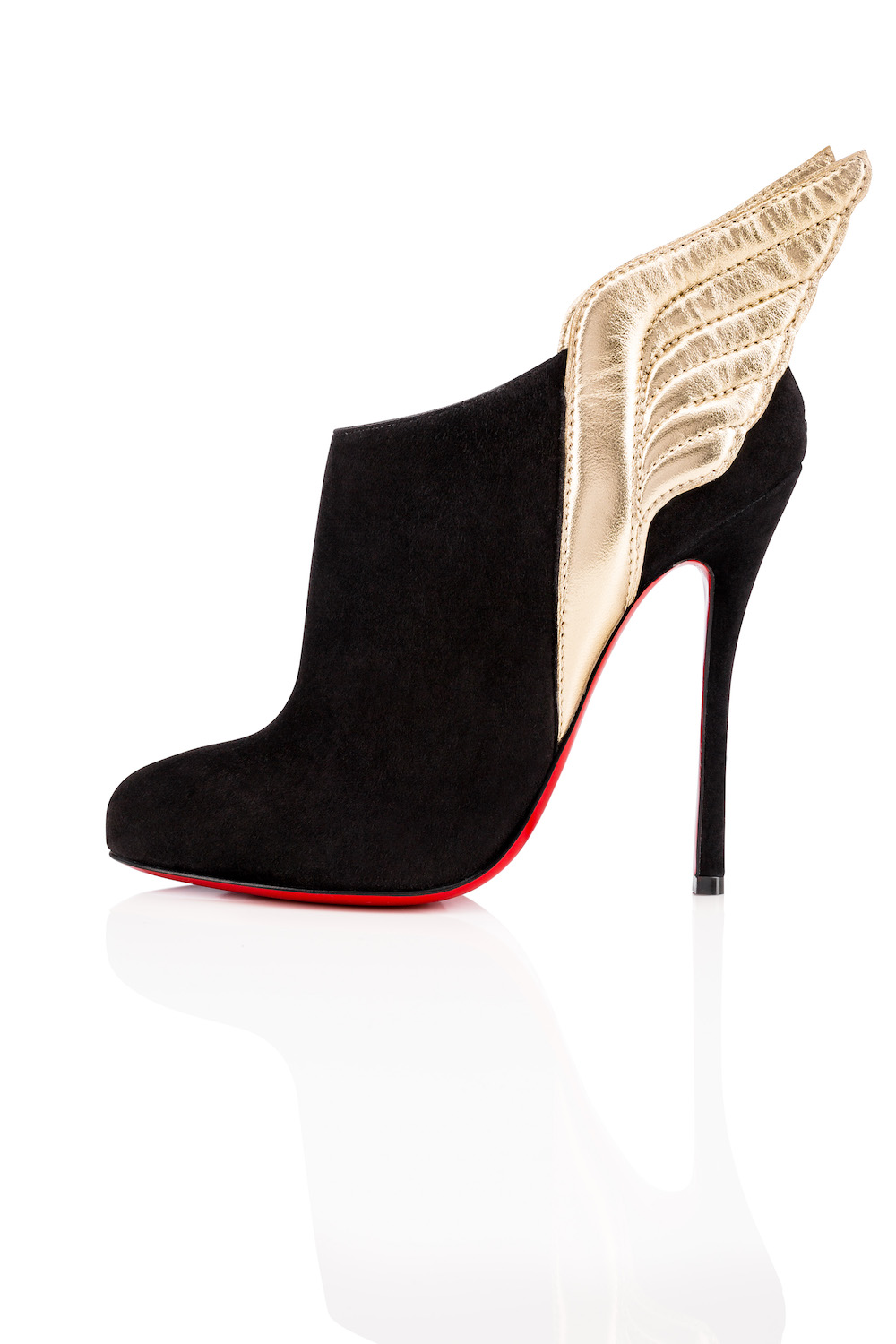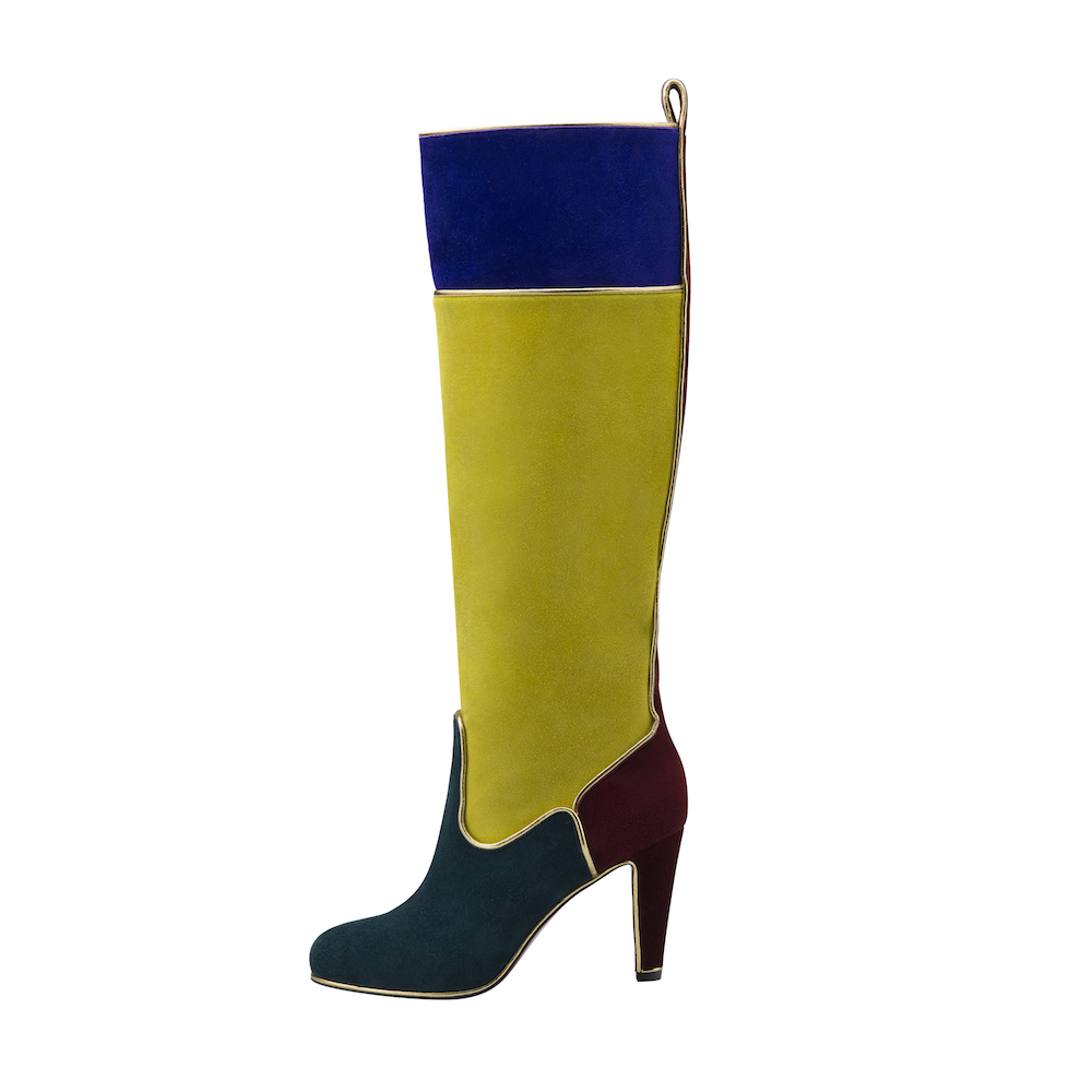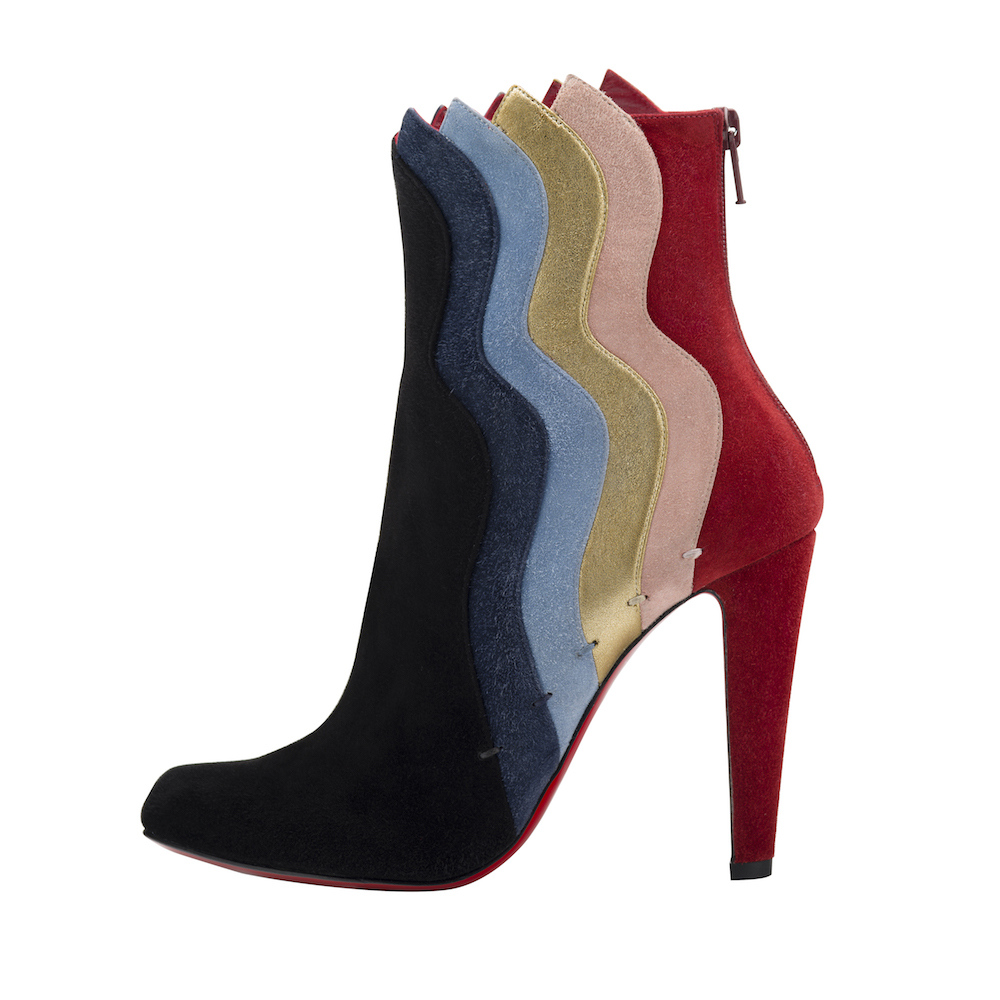 スエードのニーハイブーツ、「Louloubotta (ルブボッタ)」は、ゴールドのパイピングをアクセントに今季のキーカラーを大胆にカラーブロックで配置。「Olyabotta (オーリャボッタ)」は、今シーズンのカラーパレットのパッチワークとマルチカラーのミンクで構成されている。 「Wavy (ワーヴィ)」と「Mercura (メルキュラ)」はナイトクラブの女神と古代ギリシャの女神をイメージ。翼は、ルーヴル美術館に展示されているヘレニズムの彫刻『サモトラケのニケ』(勝利の女神、ニケの彫刻) からインスパイアされており、美しい曲線美を纏うアーティスティックな仕上がりとなっている。