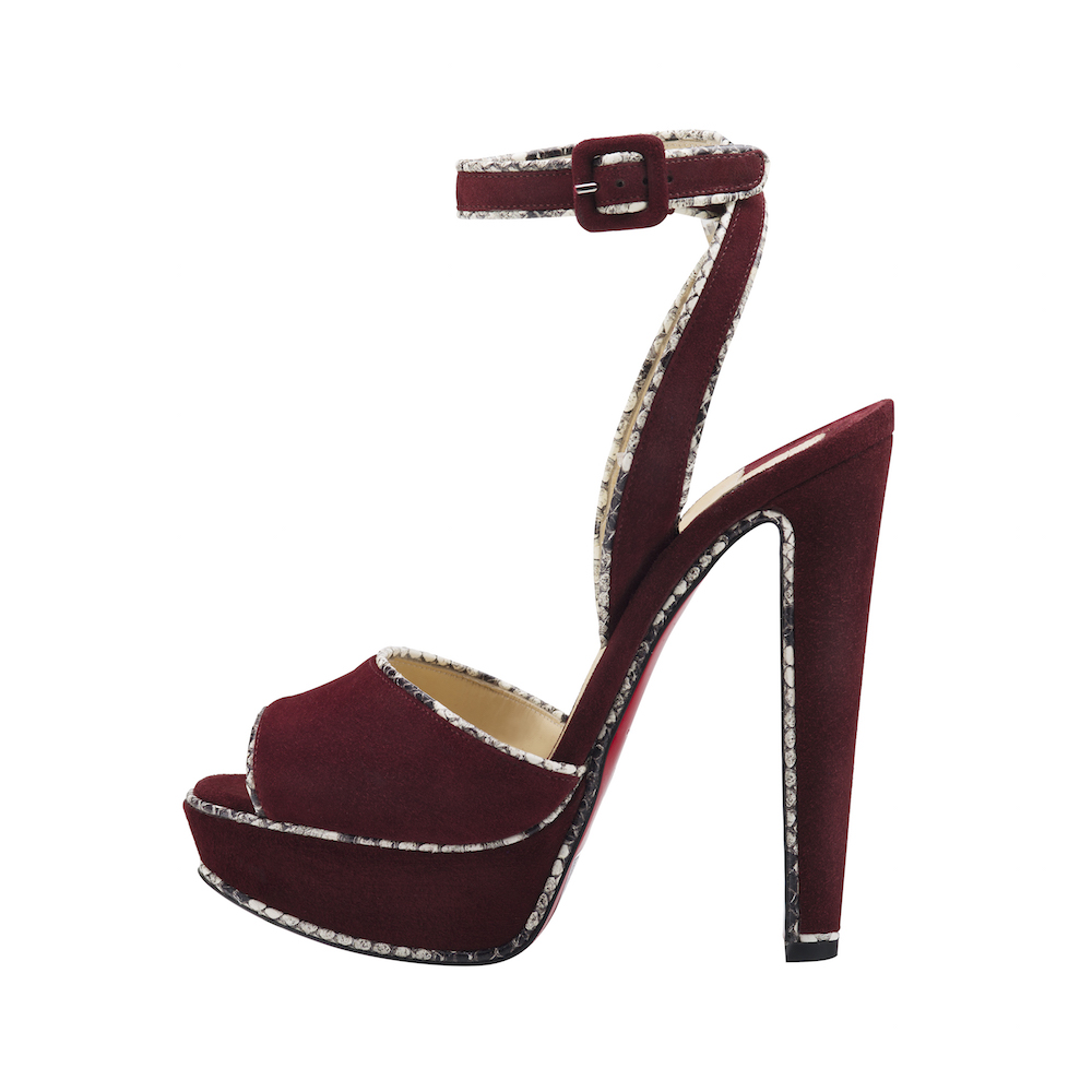 Chiristian Louboutin の定番とも言えるプラットフォームシューズタイプの「Louloudance (ルブダンス)」は、リッチなスエード素材とパープルポップカラーにウォータースネークか、ゴールドのパイピングが施されておりエレガンスなモデルとなっている。メリージェーンスタイルのシューズ、「Topstreet (トップストリート)」は、スポーティーな太いウエルトソールにマルチカラーのパイソンを使用することで、スクールガールのイメージを一新。「Topstreet Glitter Disco Ball (ストリート グリッター ディスコ ボール) 」は、パイピングとグリッターが施され、クラシックでガーリーなシルエットに、パンクなアティチュードが加わった。