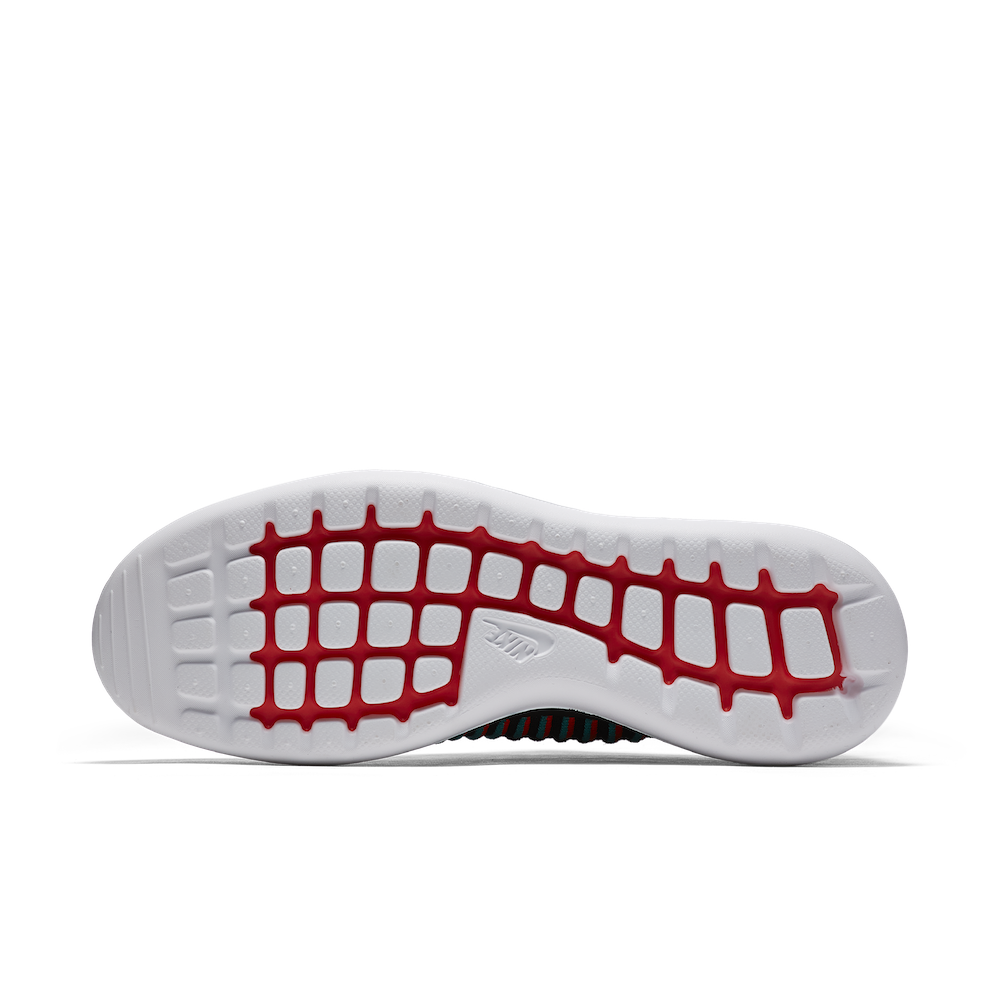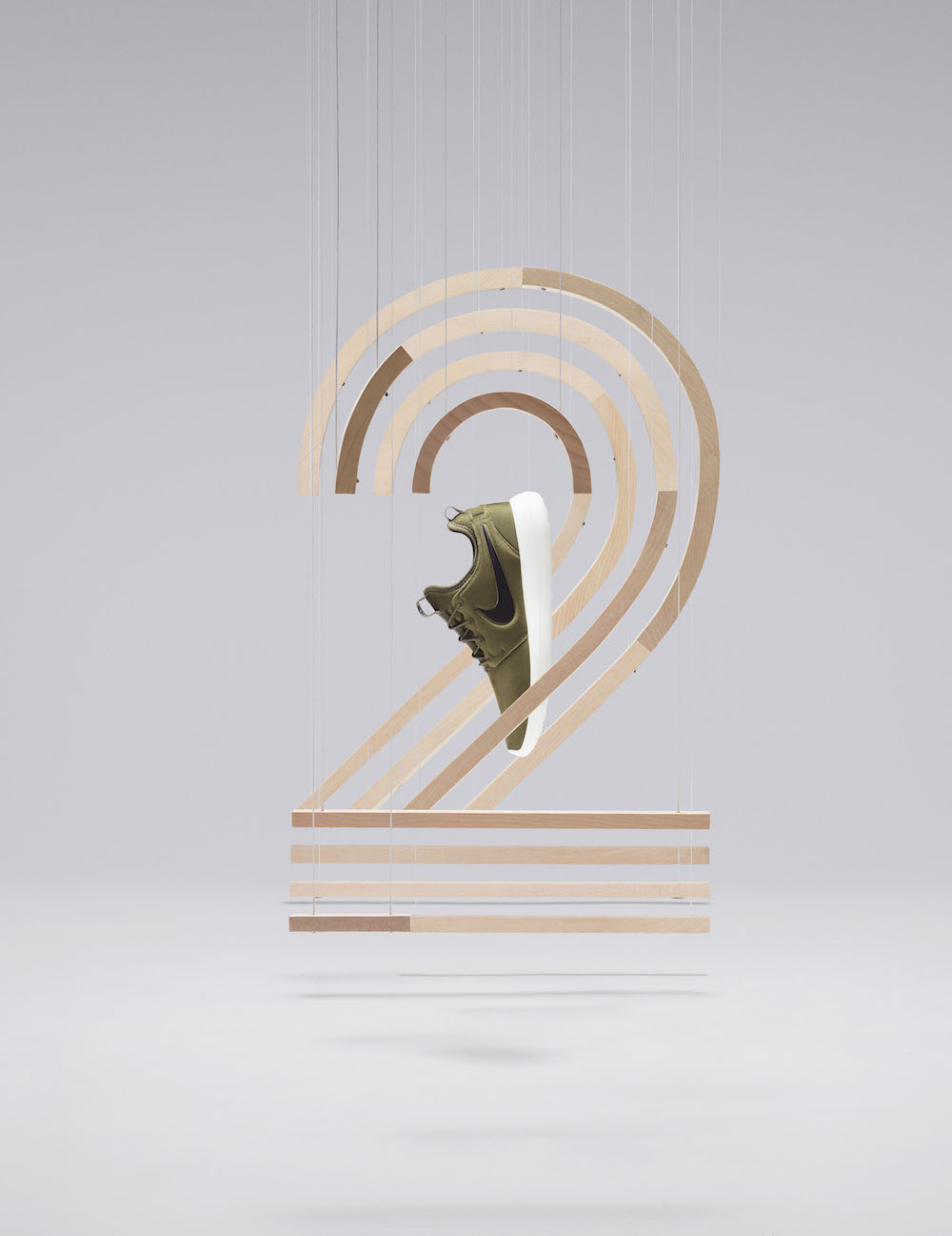 「Nike Roshe 2 」は究極の快適さを追求し、中敷、アッパー、ソールの3つの要素にこだわった最新モデルだ。まず、屈曲性を高めるために、2枚の密度の異なる形状記憶フォームを使った中敷と、それぞれの要素が独立して動く革新的なワッフルパターンのアウトソールを搭載。そして一日中快適に過ごせるように、3つの異なる密度の IU 素材を組み合わせ、部位ごとに適切な硬さと密度を提供する新しいミッドソールを採用した。アッパーはフィット感に重点をおき、履く人の足の形に馴染みやすいフライニットを採用。凹凸をつけた構造にすることで屈曲性を高めつつ、フォームを重ねることでフィット感を向上させた。ソールは反発性を重視し、それに伸縮性と通気性を加えたことで適切なサポートを実現させている。