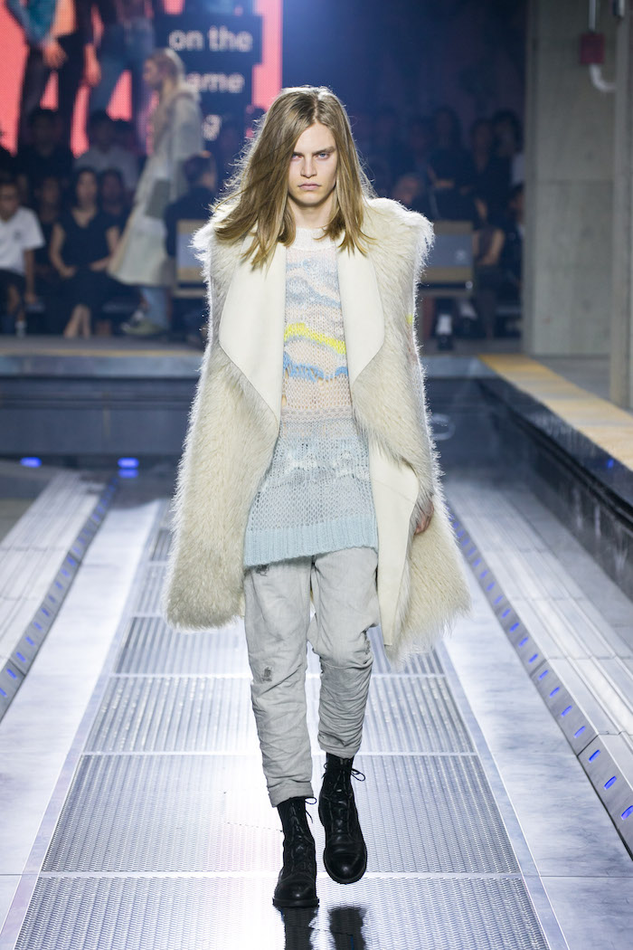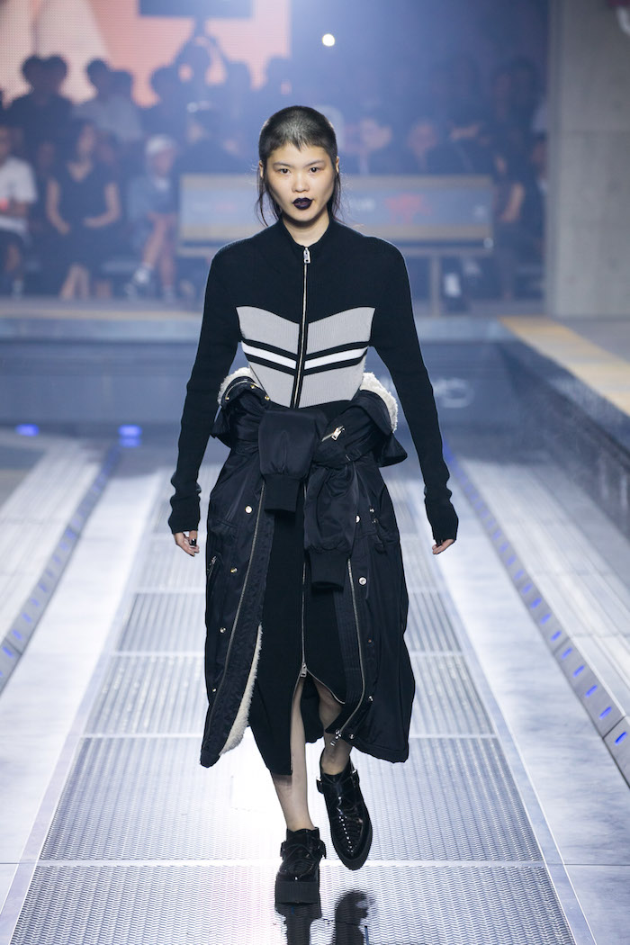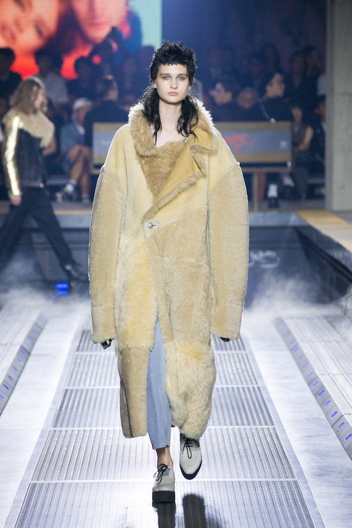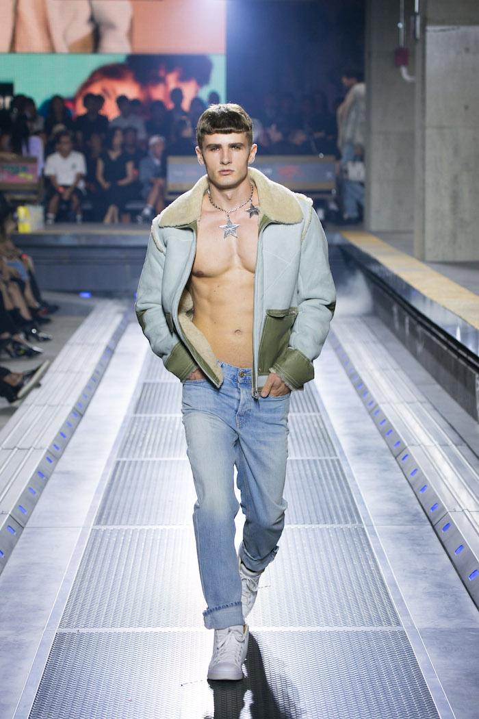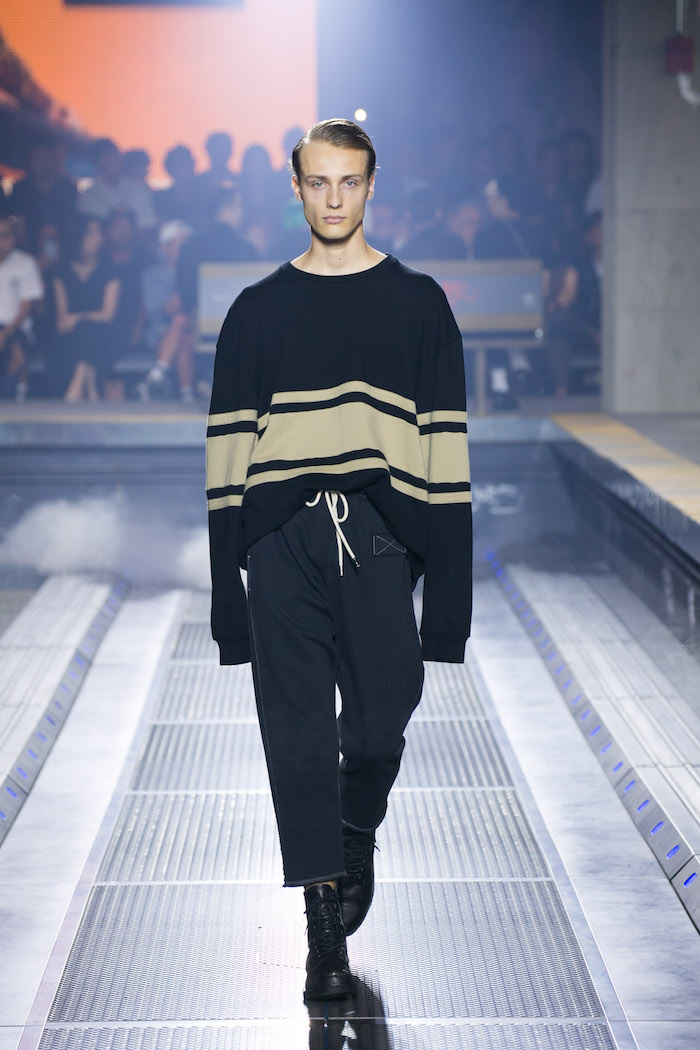 Nicola がディレクション、そして Shun Watanabe がスタイリングを手がけたとなればファーストルックは彼女以外考えられない。これまで Diesel のキャンペーンにも幾度となく登場してきた水原希子は、オープニングで90年代のスーパーモデルさながらの「ストラット」を披露した。その他に Sita Abellan (シタ・アベラン) や Sara Cummings (サラ・カミングス)、Kurumi Emond (エモンド・クルミ)、Manami Kinoshita (キノシタ・マナミ) など旬のイット・ガールがランウェイを闊歩する中、フィナーレでは Rola (ローラ) がスリークなポニーテールで登場。ミックスファーのデカダンなコートを纏ったキャットウォークは、往年の Thierry Mugler (ティエリー・ミュグレー) のショーのような堂々たる存在感を放っていた。