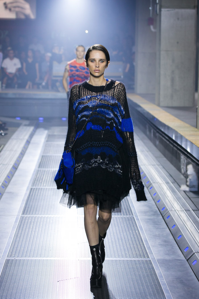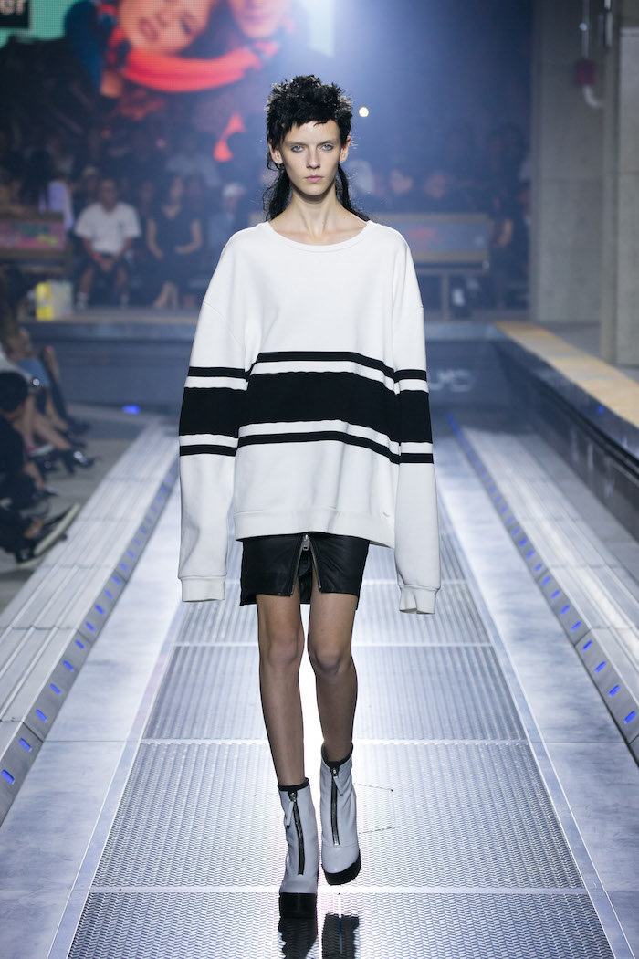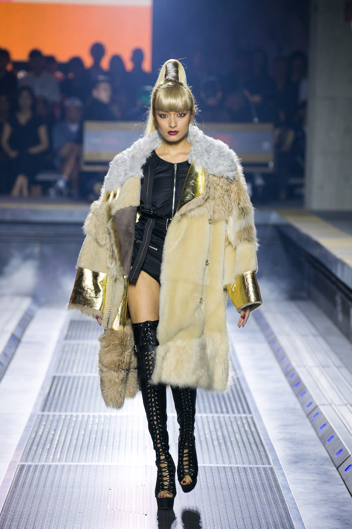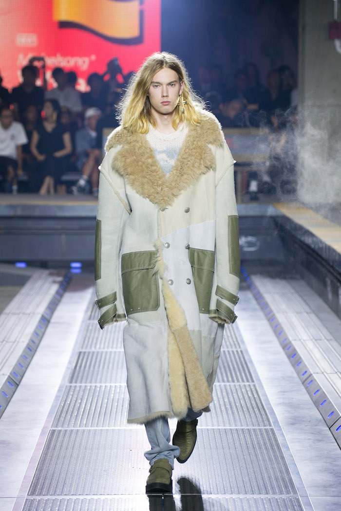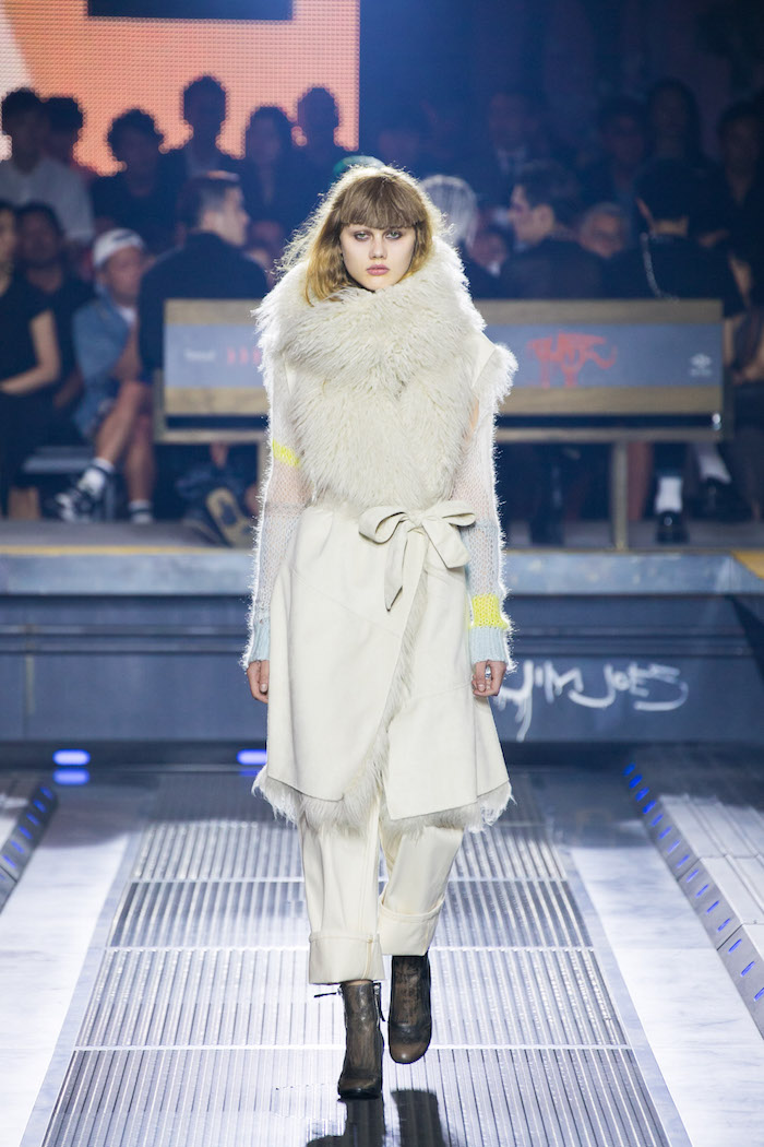 Nicola がディレクション、そして Shun Watanabe がスタイリングを手がけたとなればファーストルックは彼女以外考えられない。これまで Diesel のキャンペーンにも幾度となく登場してきた水原希子は、オープニングで90年代のスーパーモデルさながらの「ストラット」を披露した。その他に Sita Abellan (シタ・アベラン) や Sara Cummings (サラ・カミングス)、Kurumi Emond (エモンド・クルミ)、Manami Kinoshita (キノシタ・マナミ) など旬のイット・ガールがランウェイを闊歩する中、フィナーレでは Rola (ローラ) がスリークなポニーテールで登場。ミックスファーのデカダンなコートを纏ったキャットウォークは、往年の Thierry Mugler (ティエリー・ミュグレー) のショーのような堂々たる存在感を放っていた。
