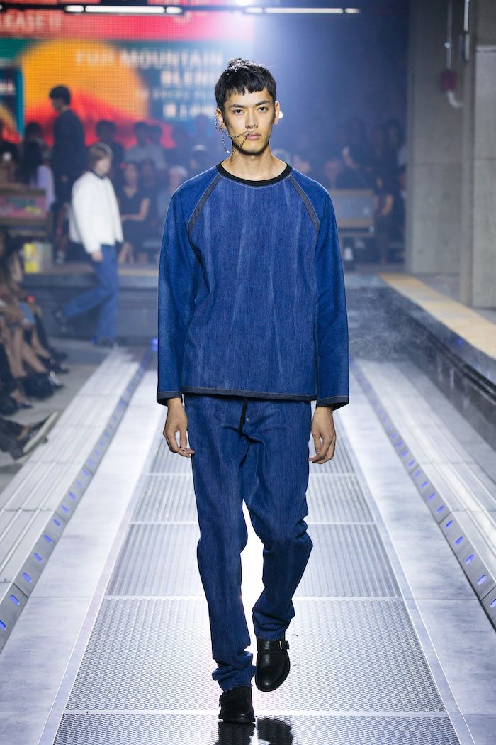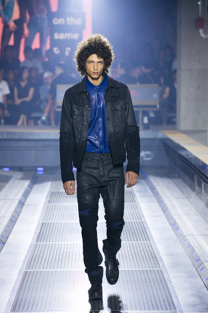 ジャパンメイドにこだわった今回のコレクションでは、N.HOOLYWOOD (N.ハリウッド) をはじめ日本人デザイナーやブランドとのコラボが披露された。中でも注目は、若手デザイナー支援プロジェクト「ITS」の OTB AWARD を受賞したことで注目を集める小池優子が監修した限定コレクション。着物や藍染など、日本の伝統的な技術を取り入れたアイテムは、Diesel のアイコニックなデニムにノスタルジックなアレンジを加えている。