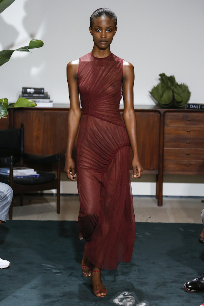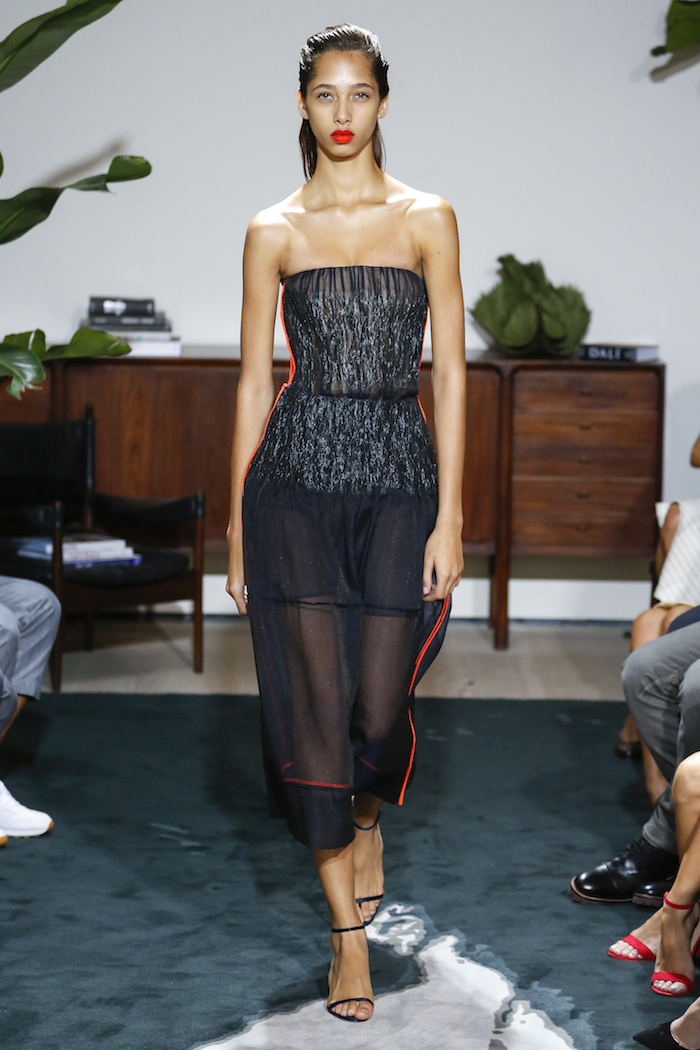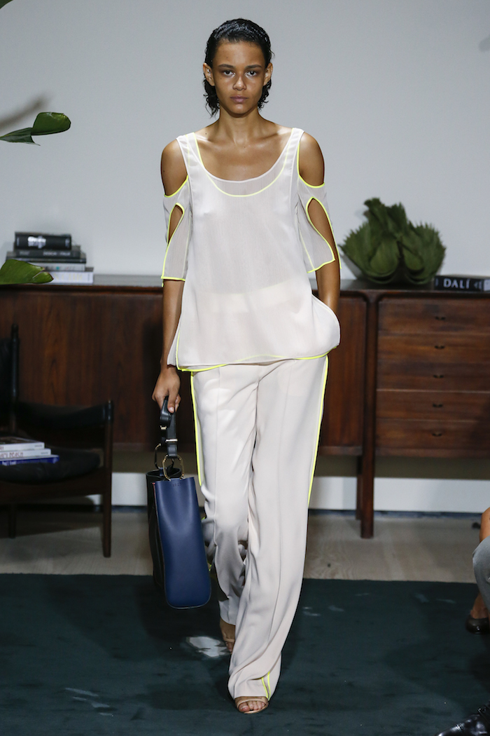 Jason Wu (ジェイソン・ウー) による2017年春夏コレクションが9日、NY にて発表された。スイスの現代アーティスト、Ugo Rondinone (ウーゴ・ロンディノーネ) のアートワークにインスピレーションを受けた今季、デザイナーが得意とするリュクスなデイリーワードローブには、鮮やかなアシッドカラーが取り入れられ、フリュイッドなシルエットに力強いアクセントを加えている。中でも注目は、ネオンカラーのパイピングが施されたシアーなドレスやアウター類。都会的な女性像とヌード感のある素材使い、そしてスポーティーなコントラストは、リアリティのあるスタイリングにエッジーな一面を添えている。