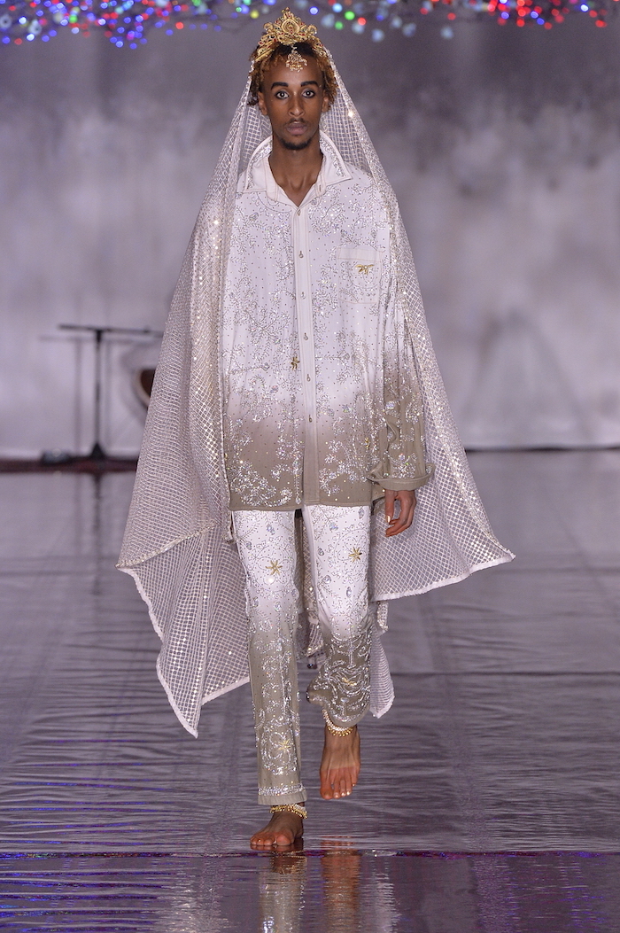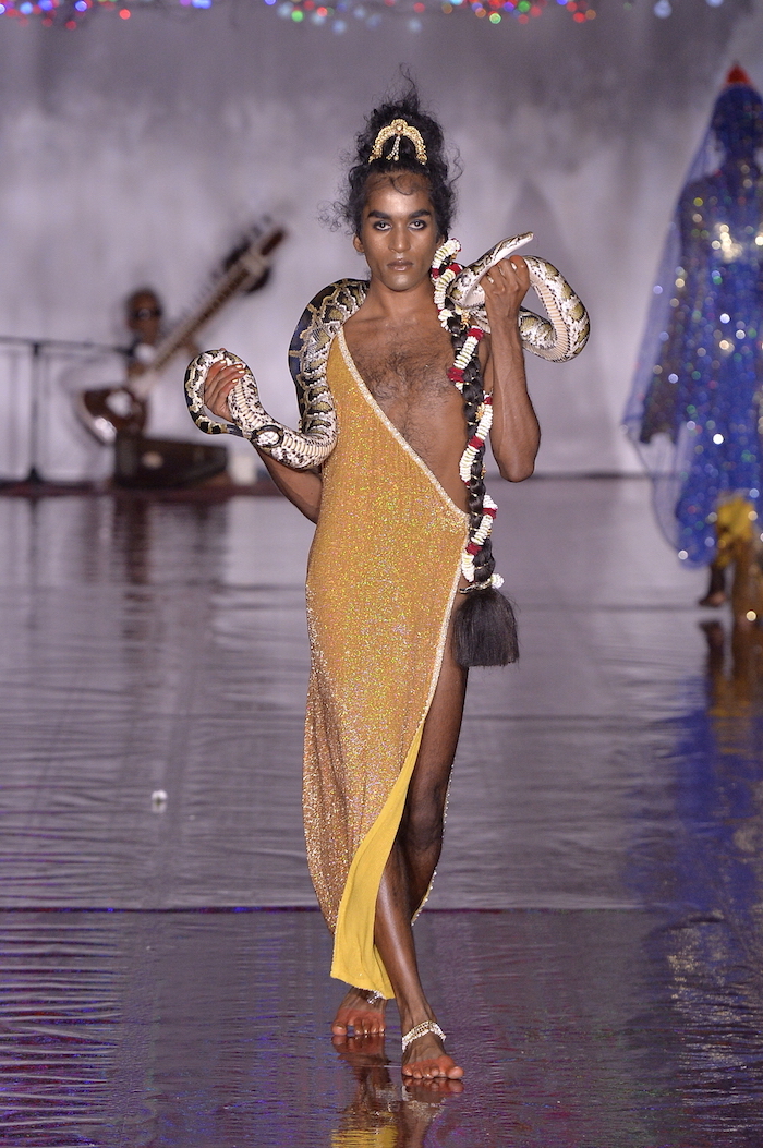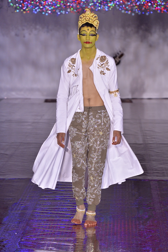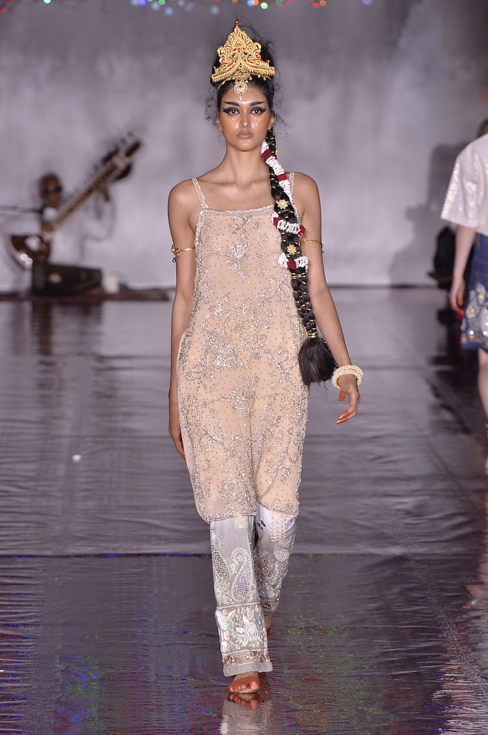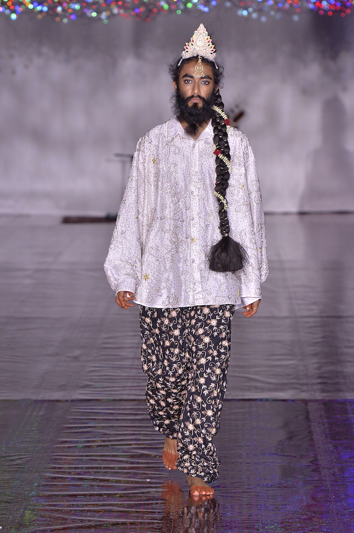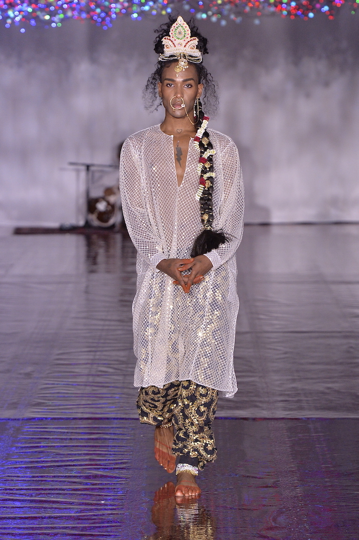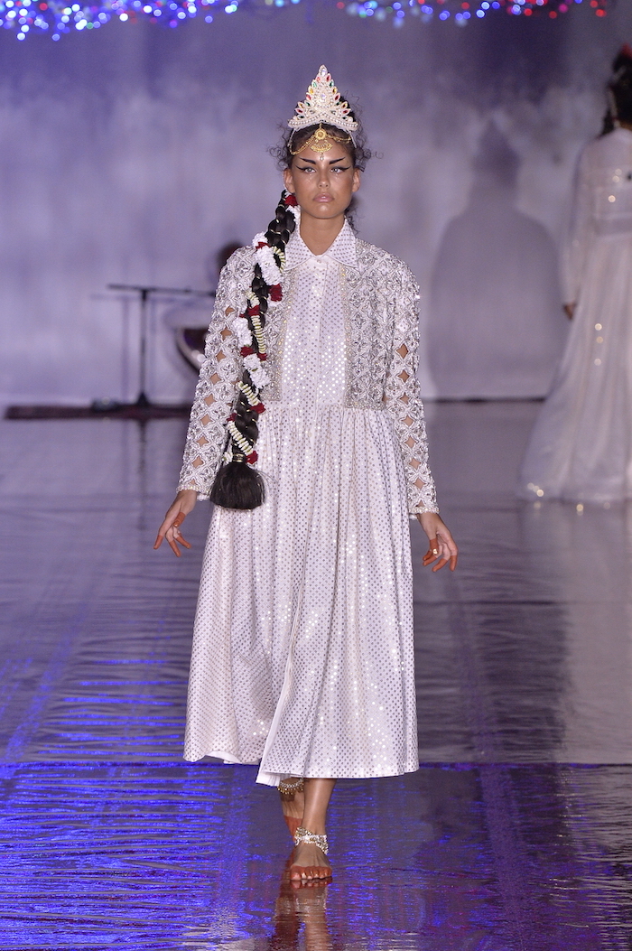 Ashish Gupta (アシシュ・グプタ) によるロンドンブランド、Ashish (アシシュ) 2017年春夏コレクションが発表された。今季コレクションのテーマとなったのは、イスラーム教の神秘主義哲学にあたるスーフィズム。デリー出身の彼ならではのクロス・エスニックなコレクションは、Anna Trevelyan (アンナ・トレヴェリヤン) のエキセントリックなスタイリングとアイコニックなスパンコール装飾、そしてシヴァ神を想起させるブルーフェイスのメイクで彩られた。