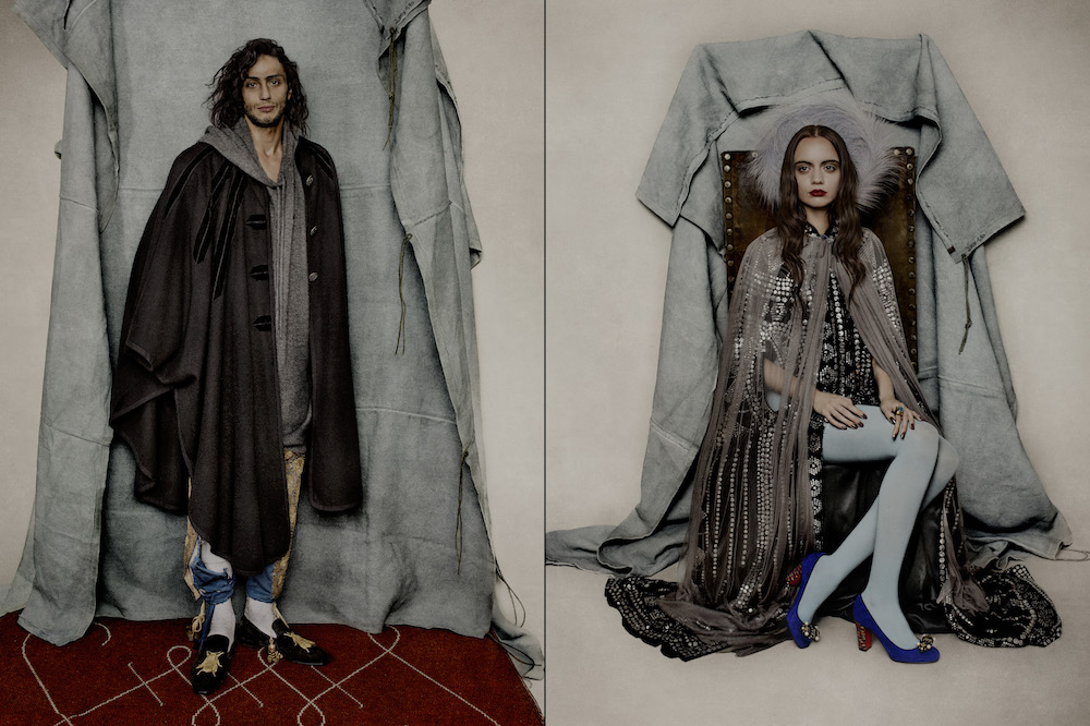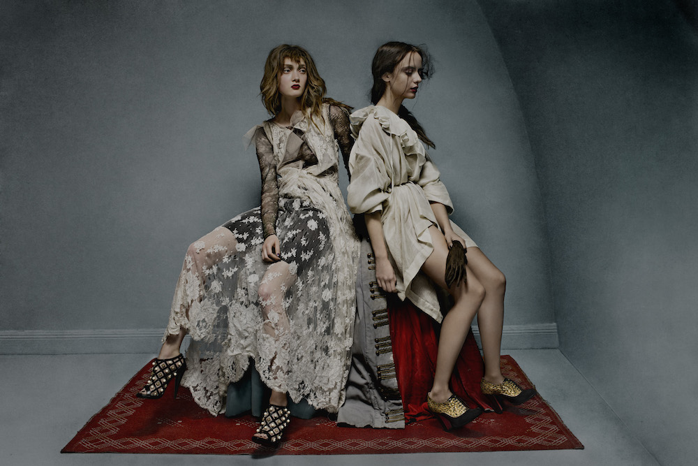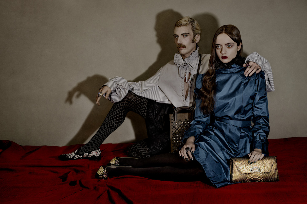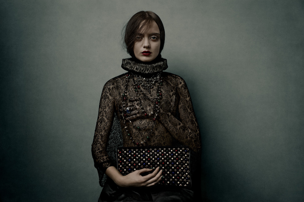 2016年秋冬コレクションから、16世紀の英国チューダー朝にインスパイアされたシリーズを展開している同ブランド。ロイヤルファミリーの中でも最も煌びやかで、絶対王政全盛期の女王が統治していた時代に感銘を受け、今回の「THE GOLDEN AGE」もその意味する通り、贅沢なスピリットをふんだんに取り入れた。薄いベルベットを3層に重ねたファブリックやモアレなど豪華なマテリアルや、靴を彩る装飾にはデザイナー Christian Louboutin 自身が一点一点選んだカボションカットのカラースタッズ、模様を施したピラミッドスタッズ、スクエアスタッズやパールなど、豪華な装飾たちを使用しパワフルさとエレガントさを兼ね備えたコレクションとなっている。
