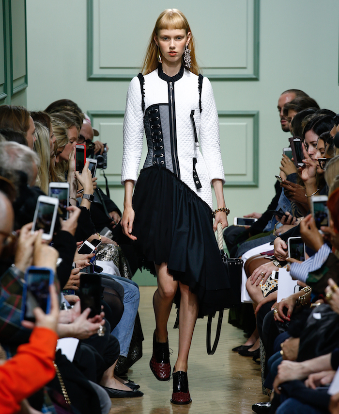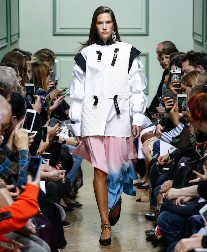ファッションウィークの風は既にパリまで届いているが、少し時間を戻して J.W.Anderson (J.W.アンダーソン) の2017年春夏ウィメンズコレクションをスローバック。ロンドンファッションウィーク期間中にあたる17日に発表された。ショーのベニューには今最も旬な Jonathan Anderson (ジョナサン・アンダーソン) による最新コレクションを一目見ようと世界屈指のジャーナリストが集結した。今季ファーストルックで登場したのは、スポーティーなキルティング素材で仕立てらたボマージャケット。スリーブ部分には、ルネサンス期の宮廷衣装を思わせるラッフル装飾が取り入れられている。