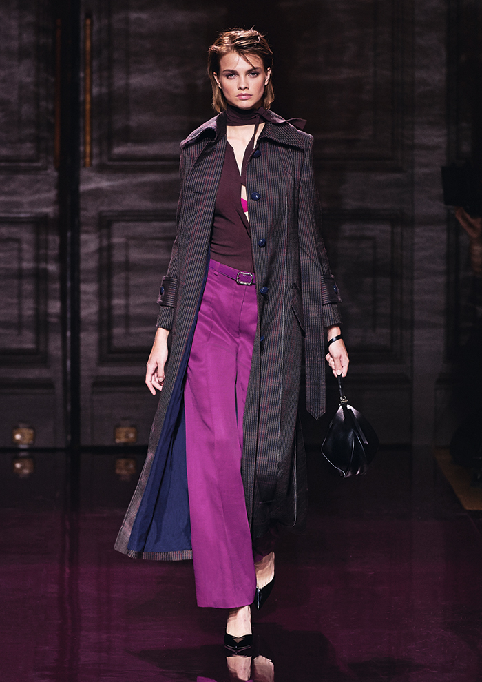 NINA RICCI (ニナ リッチ) による2017年春夏コレクションが1日、パリにて発表された。フランス屈指の歴史あるクチュリエであり、2014年に新たにクリエイティブ・ディレクターに就任した Guillaume Henry (ギョーム・アンリ) の手腕のもとモダンラグジュアリーを体現する NINA RICCI。今季コレクションでは、リッチなパープルシェードに統一されたランウェイを舞台に、トラディショナルなワードローブにスポーツウェアのアクセントを加えたスタイリングが提案された。