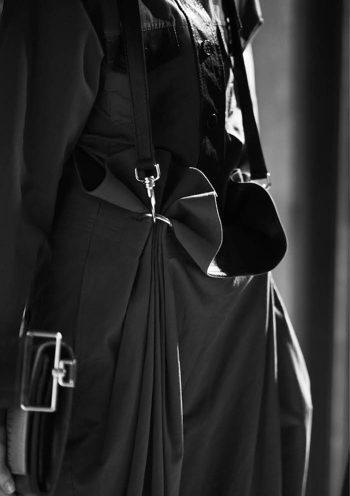 同コレクションでは、2007年から続く、Damir Domaの最もアイコニックなシルエットのアイテムがアップデートして登場。インフィニティ記号のような形の Infinity コートや、光沢と透け感のある 素材のボンバージャケットにアフガンスカーフをあしらった Scarf ジャケット、そして 「Bag」スカート等が復刻。Damir Doma らしいジェンダーレスであり、そしてタイムレスなアイテムが豊富にラインナップする。