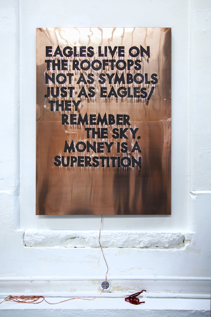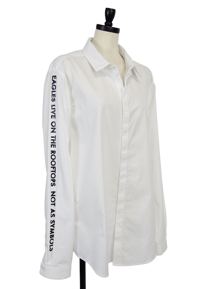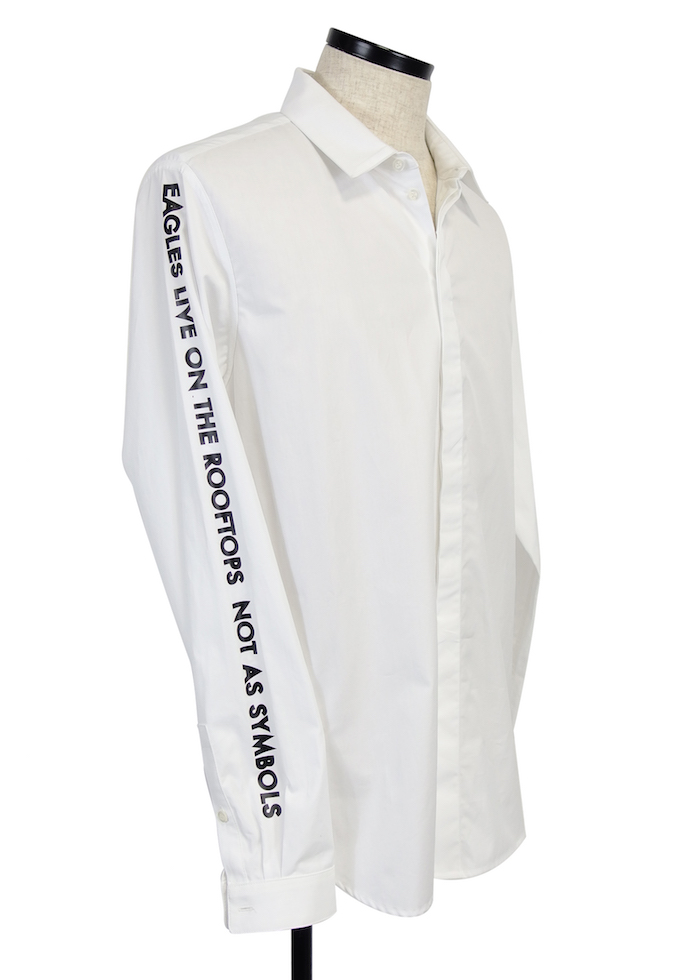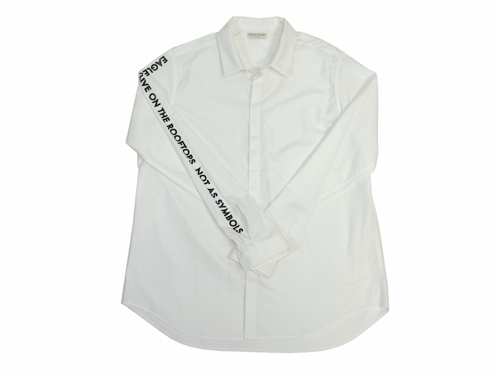 アイテムは、EACH x OTHER 16年秋冬コレクションの他、同店舗限定のシャツがラインナップ。右袖部分には Robert Montgomery の詩『EAGLES LIVE ON THE ROOFTOPS NOT AS SYMBOLS』がプリントされている。また、店頭にて¥50,000 (税抜) 以上購入すると同エクスクルーシブシャツをプレゼント。さらに、Robert Montgomery 以外のアーティストとしてカナダ人アーティスト Blair Chivers (ブレア・シバース)、80 年代のニューヨークのアートシーンの立役者 Maripol (マリポル)の作品も展示、販売される。