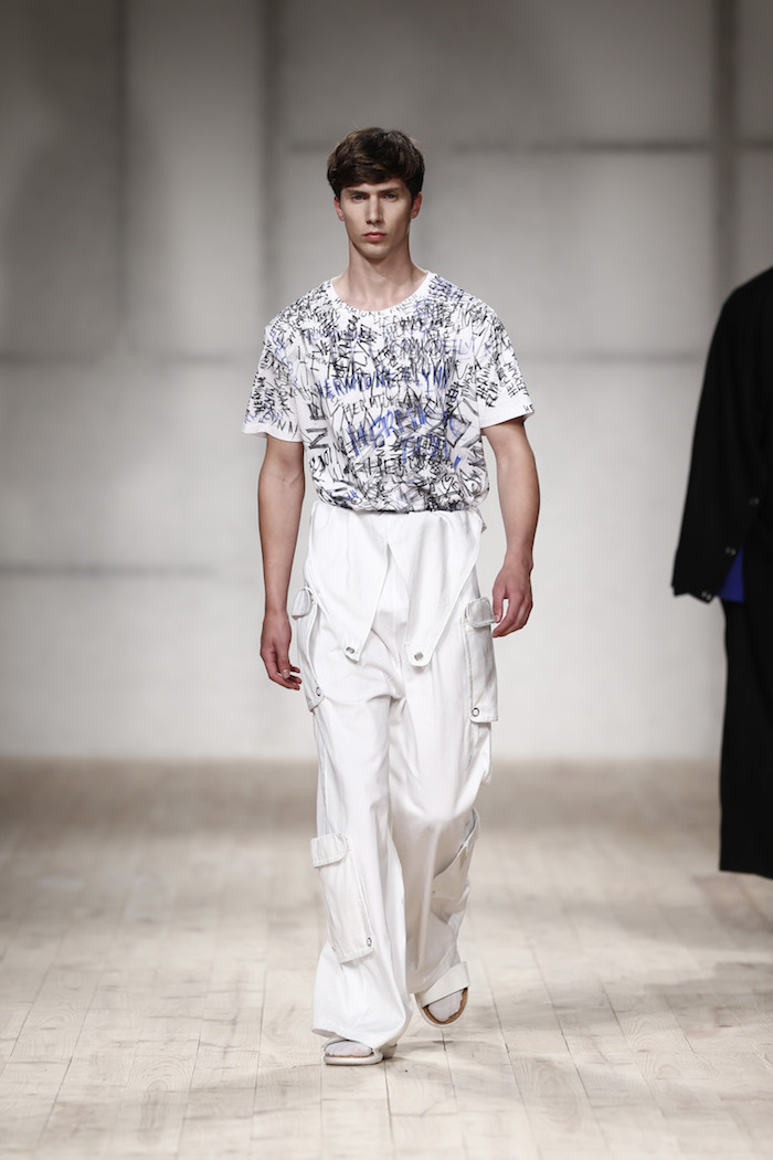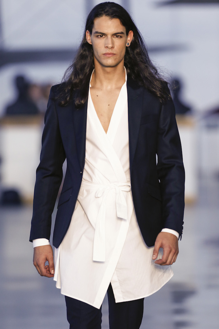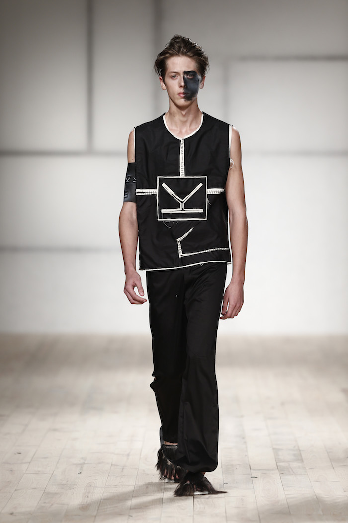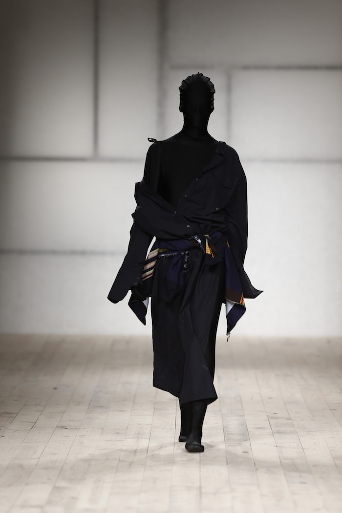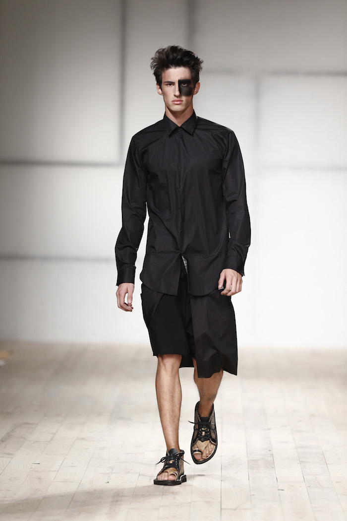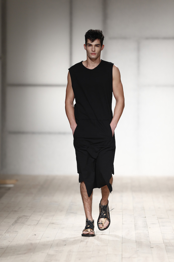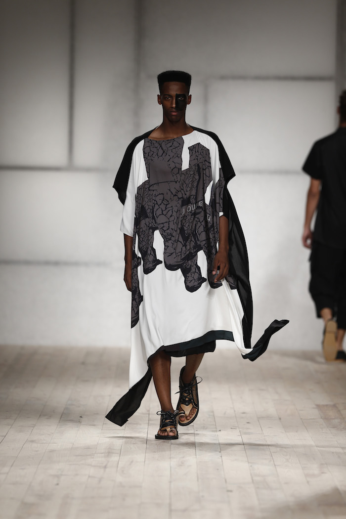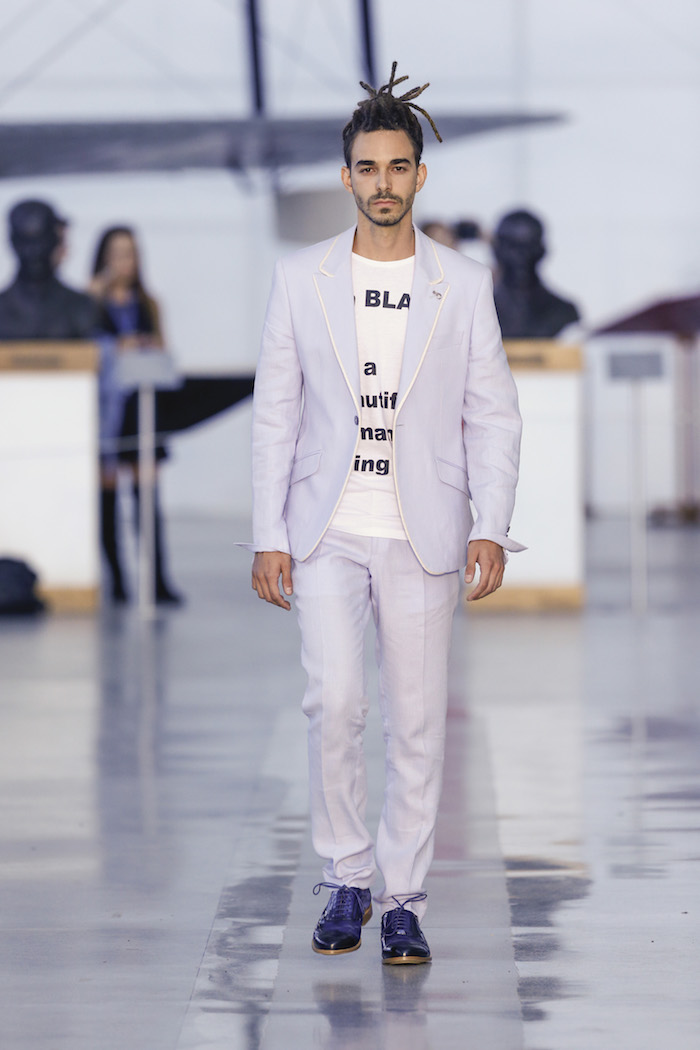 どの国にもローカルセレブリティというものは存在する。しまいには隣の美女が熱烈なフォトコールを受けるのを見ながら「この人は誰なんだろう」と考える始末。しかしポルトガルにもインターナショナルセレブリティはいる。その中の一人が、メンズモデルの Luis Borges (ルイズ・ボルジェス)。個性的なアフロヘアと彫刻のような端正な顔立ちで、世界中のランウェイに引っ張りだこのイットボーイは、ポルトガルファッションシーンのスーパースターだ。彼がランウェイで歩いたブランドのひとつ Kolovrat (コロヴラット) は、今季スケジュールの中でも印象に残ったメンズブランド。テーラリングをモダンに解釈したミニマルスタイルには、オリエンタルなキモノシルエットやパンクテイストのディティールなどが取り入れられ、そのまま東京のストリートキッズにも似合うのではないかと想像を膨らませられた。