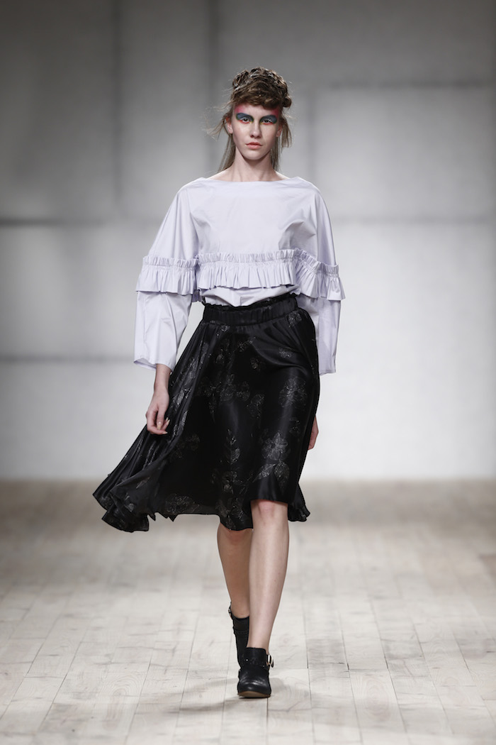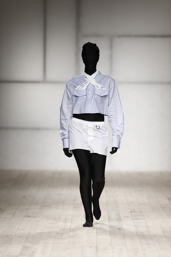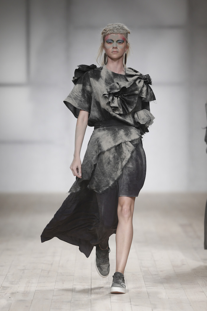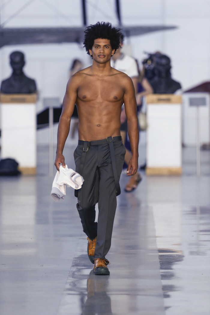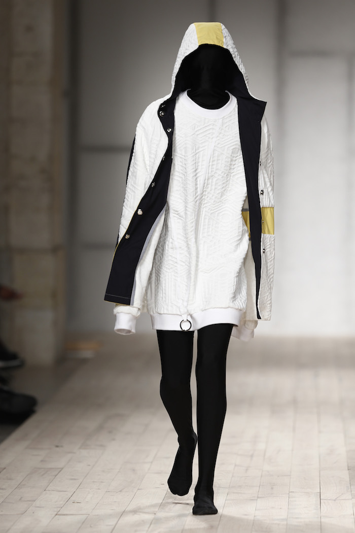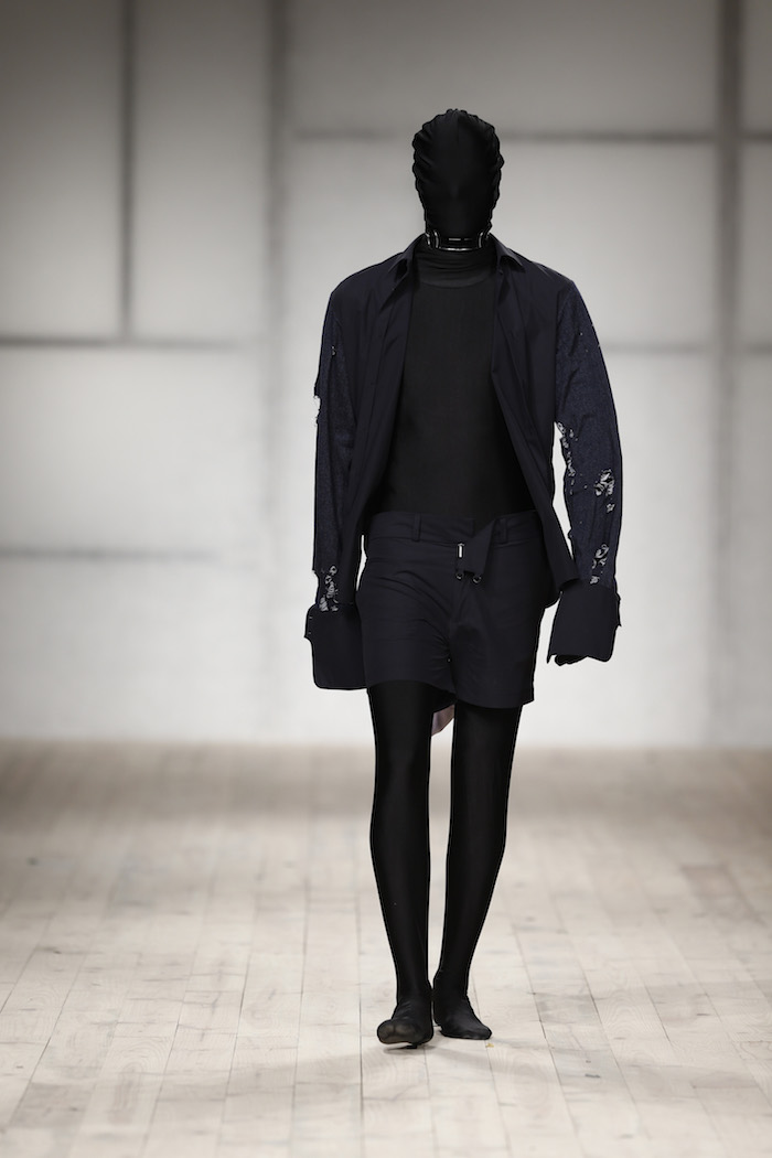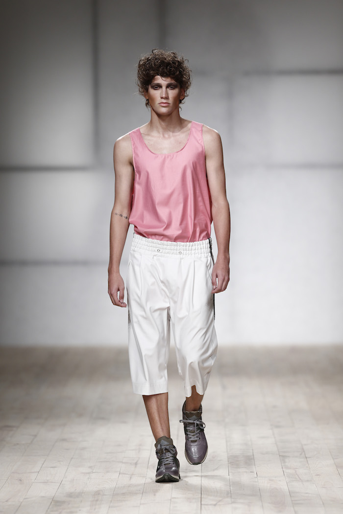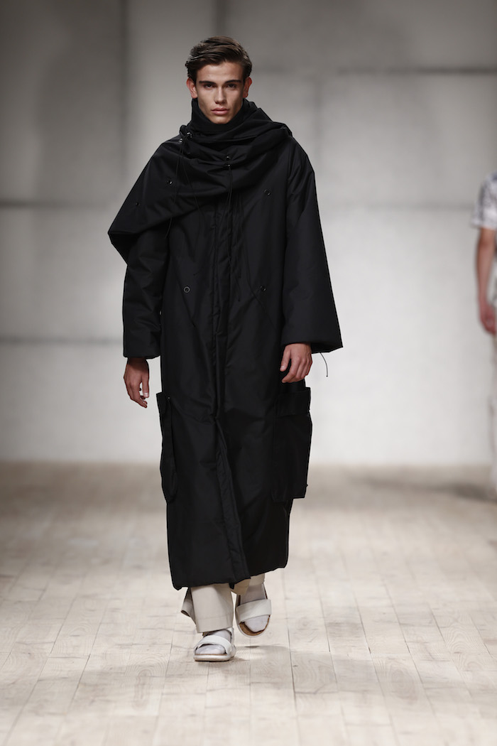 どの国にもローカルセレブリティというものは存在する。しまいには隣の美女が熱烈なフォトコールを受けるのを見ながら「この人は誰なんだろう」と考える始末。しかしポルトガルにもインターナショナルセレブリティはいる。その中の一人が、メンズモデルの Luis Borges (ルイズ・ボルジェス)。個性的なアフロヘアと彫刻のような端正な顔立ちで、世界中のランウェイに引っ張りだこのイットボーイは、ポルトガルファッションシーンのスーパースターだ。彼がランウェイで歩いたブランドのひとつ Kolovrat (コロヴラット) は、今季スケジュールの中でも印象に残ったメンズブランド。テーラリングをモダンに解釈したミニマルスタイルには、オリエンタルなキモノシルエットやパンクテイストのディティールなどが取り入れられ、そのまま東京のストリートキッズにも似合うのではないかと想像を膨らませられた。