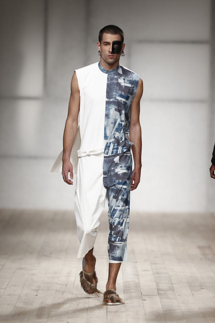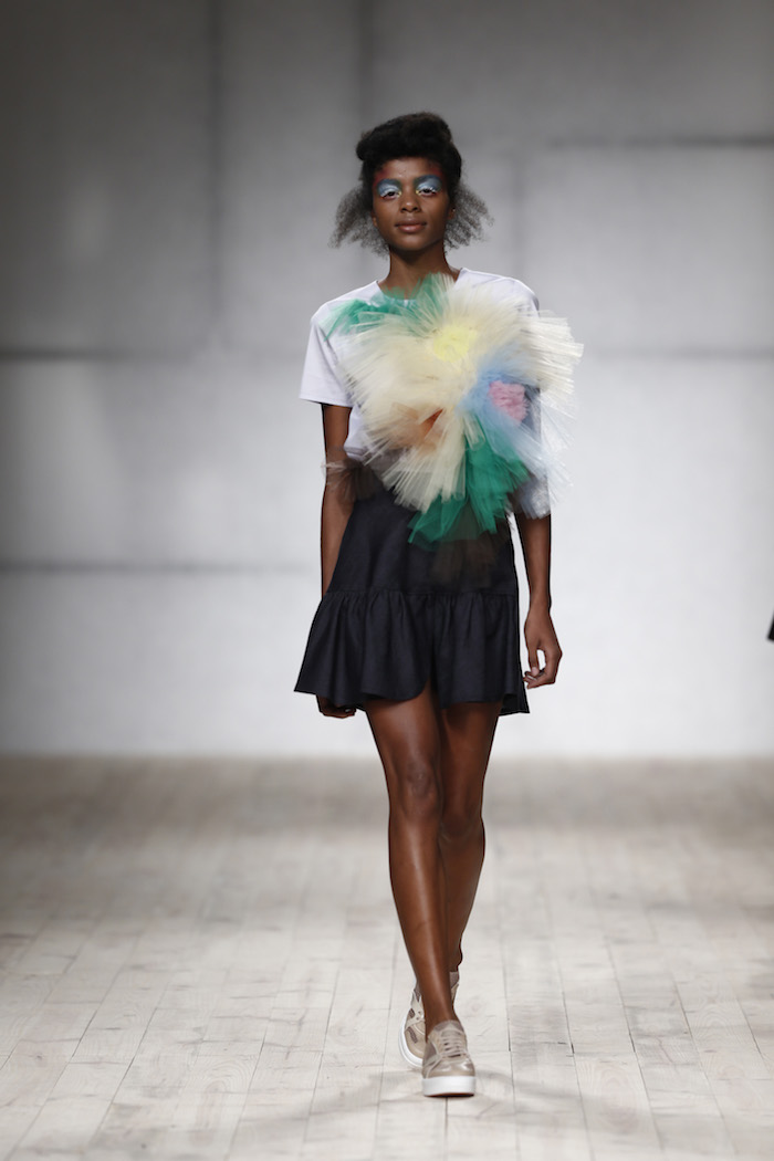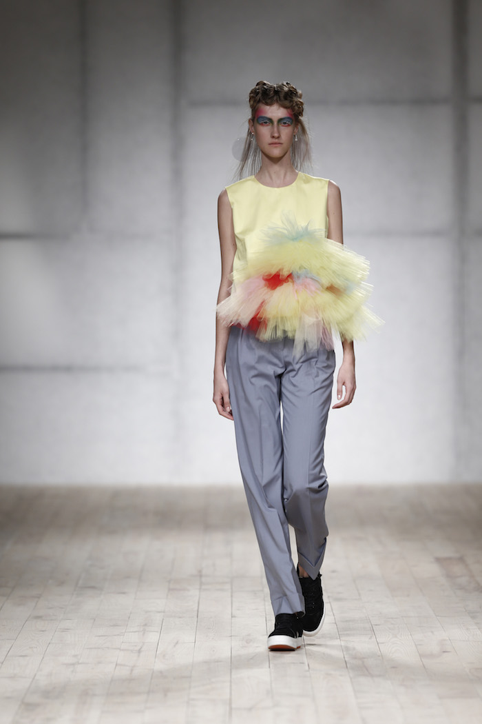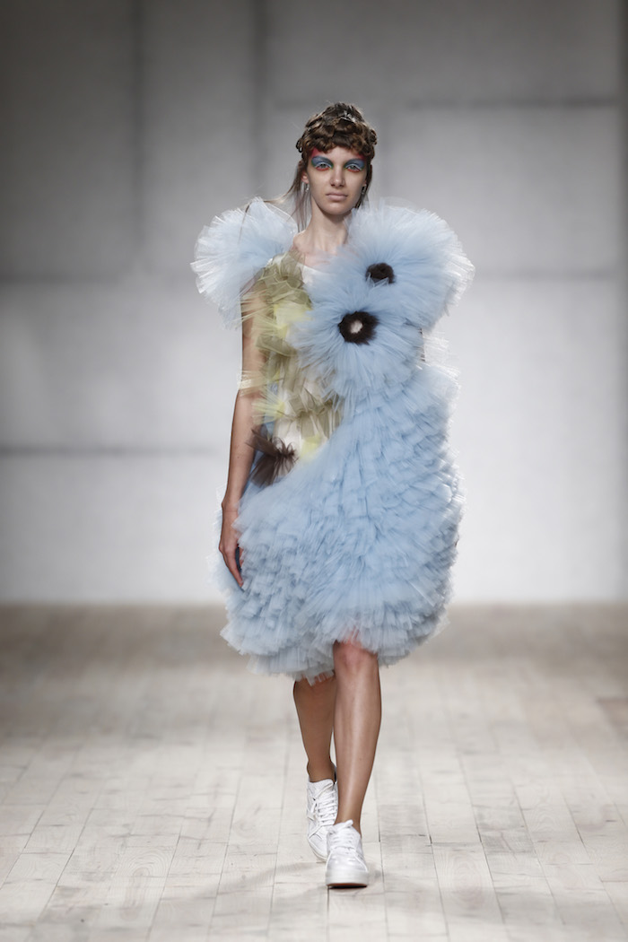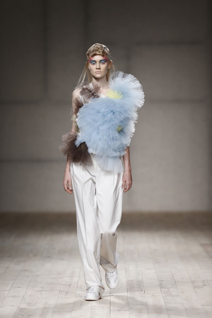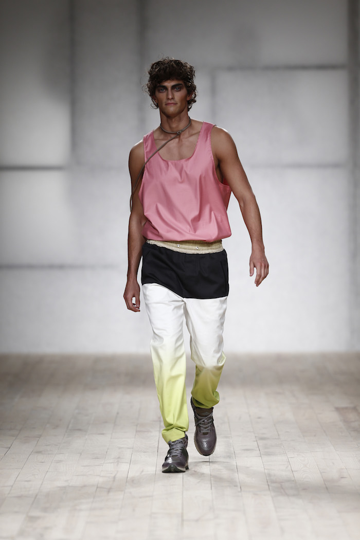 東コレに同じく、ポルトガルのファッションウィークはメンズが強い。ウィメンズウェアといえば「誰が着るの?」と聞きたくなるようなコスチュームや、「これランウェイショーで見せる必要ある?」と疑問に思うような退屈なリアルクローズばかりが目につく一方で、メンズウェアは比較的リアリティがありながらクリエイティブとの両立で成功しているケースが多く見受けられた。その代表的な例が、Dino Alves (ディーノ・アルヴェス)。ポルトガルの漁村、アナディアに生を受けた Dino Alves (ディーノ・アルヴェス) は「リスボン・ファッションウィーク」でもよく知られた中堅デザイナーだ。今季2017年春夏コレクションでは、チュールを幾多にも重ねたコンセプチュアルなウィメンズウェア、そしてポップな色使いとオーバーシルエットが印象的なメンズウェアを発表。フィナーレでは砂をかぶったモデルが登場し、異国情緒溢れるストーリーを完成させた。