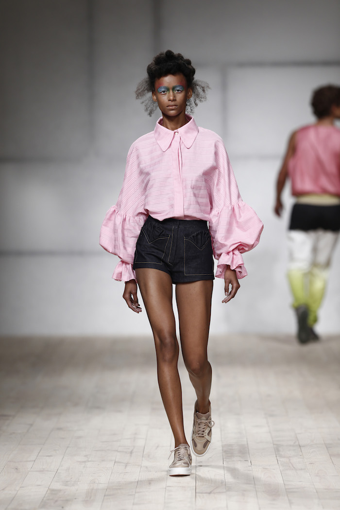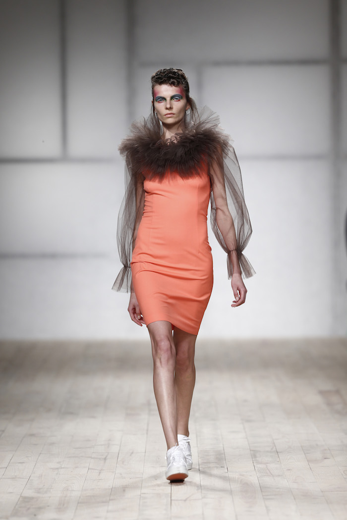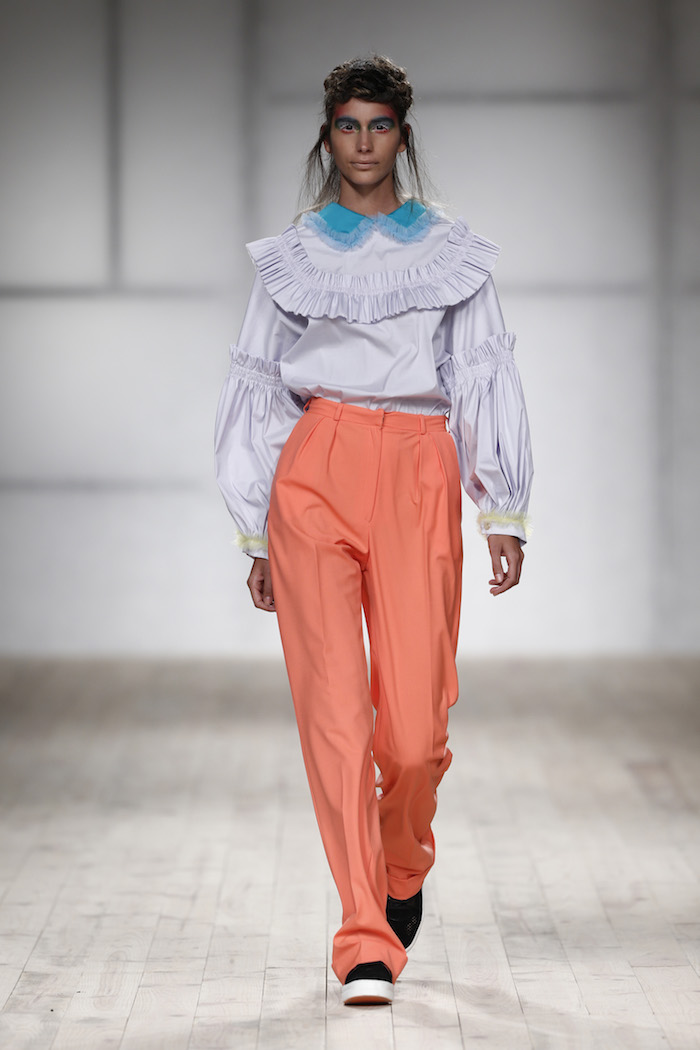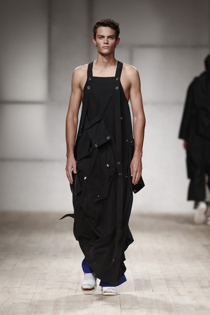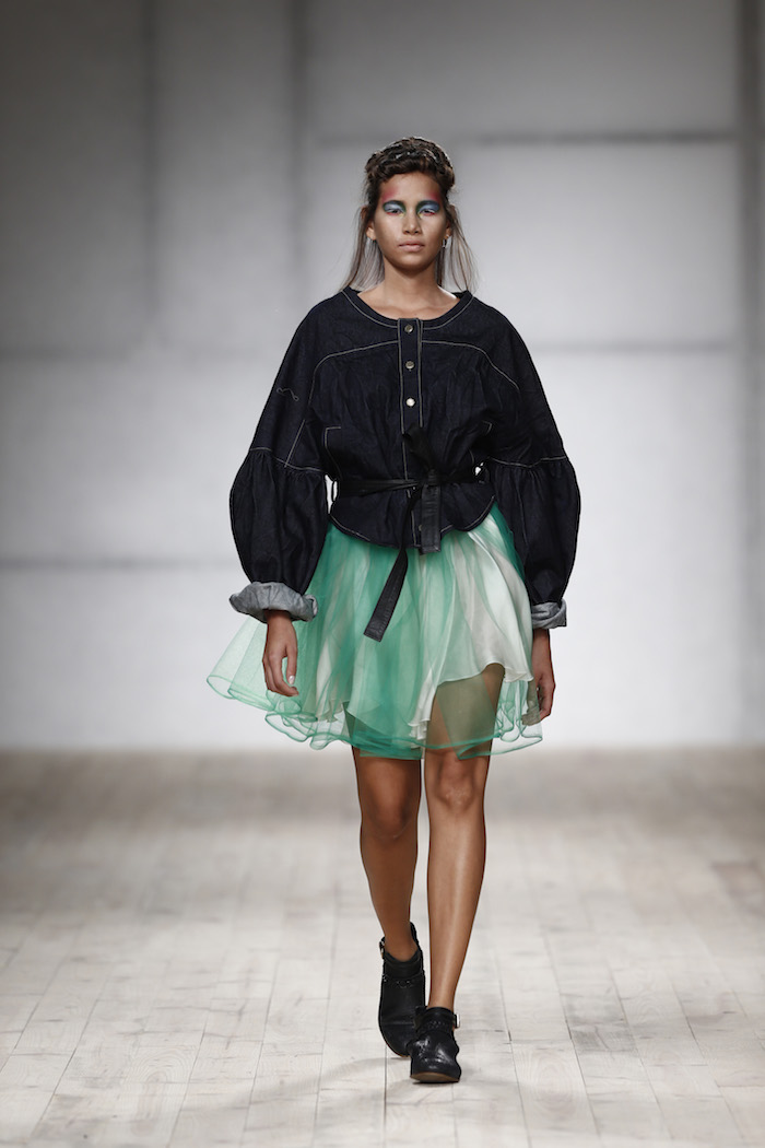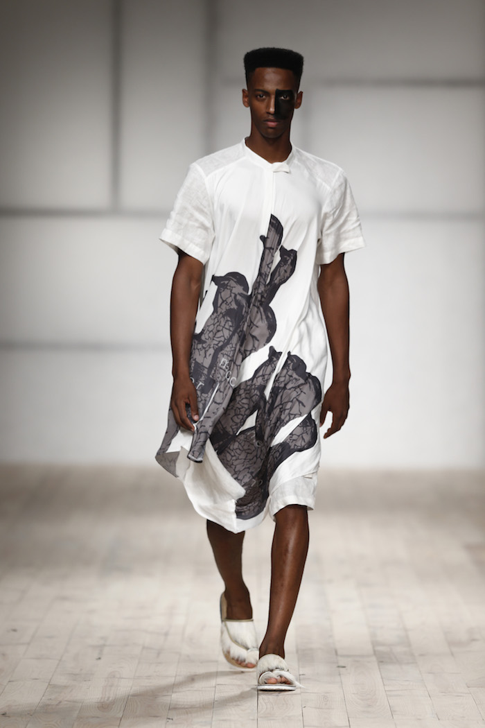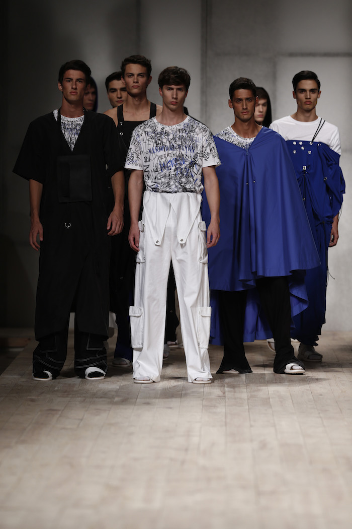 東コレに同じく、ポルトガルのファッションウィークはメンズが強い。ウィメンズウェアといえば「誰が着るの?」と聞きたくなるようなコスチュームや、「これランウェイショーで見せる必要ある?」と疑問に思うような退屈なリアルクローズばかりが目につく一方で、メンズウェアは比較的リアリティがありながらクリエイティブとの両立で成功しているケースが多く見受けられた。その代表的な例が、Dino Alves (ディーノ・アルヴェス)。ポルトガルの漁村、アナディアに生を受けた Dino Alves (ディーノ・アルヴェス) は「リスボン・ファッションウィーク」でもよく知られた中堅デザイナーだ。今季2017年春夏コレクションでは、チュールを幾多にも重ねたコンセプチュアルなウィメンズウェア、そしてポップな色使いとオーバーシルエットが印象的なメンズウェアを発表。フィナーレでは砂をかぶったモデルが登場し、異国情緒溢れるストーリーを完成させた。