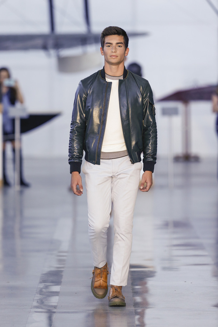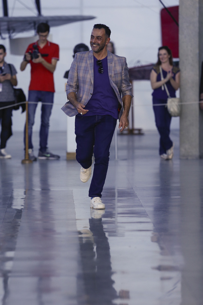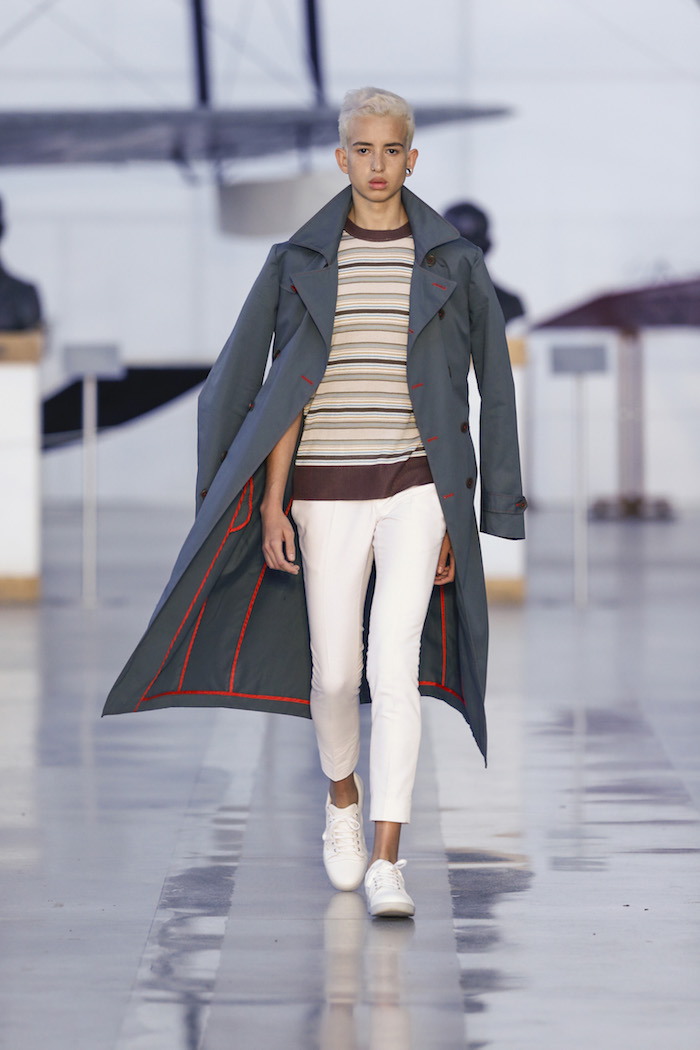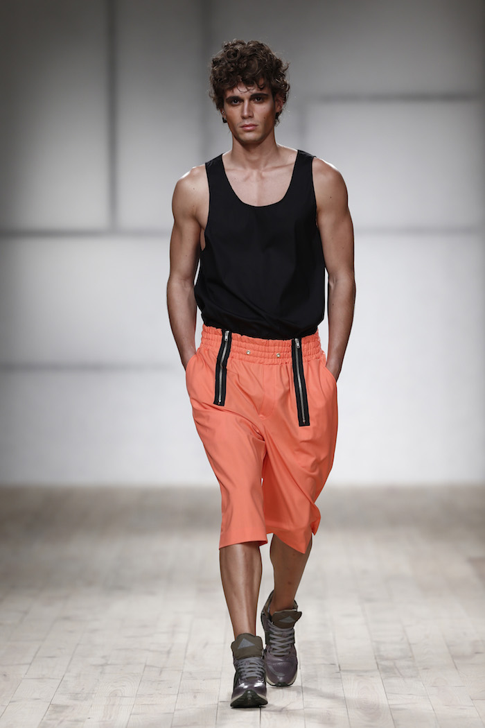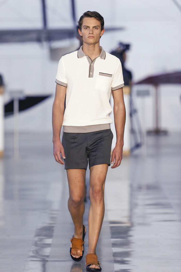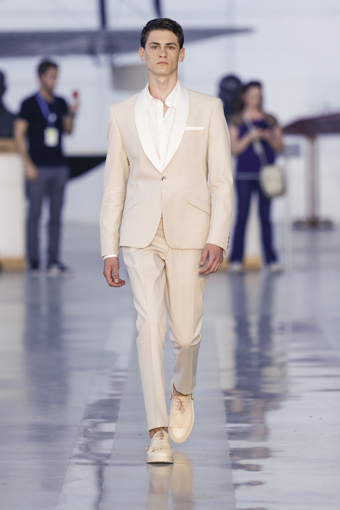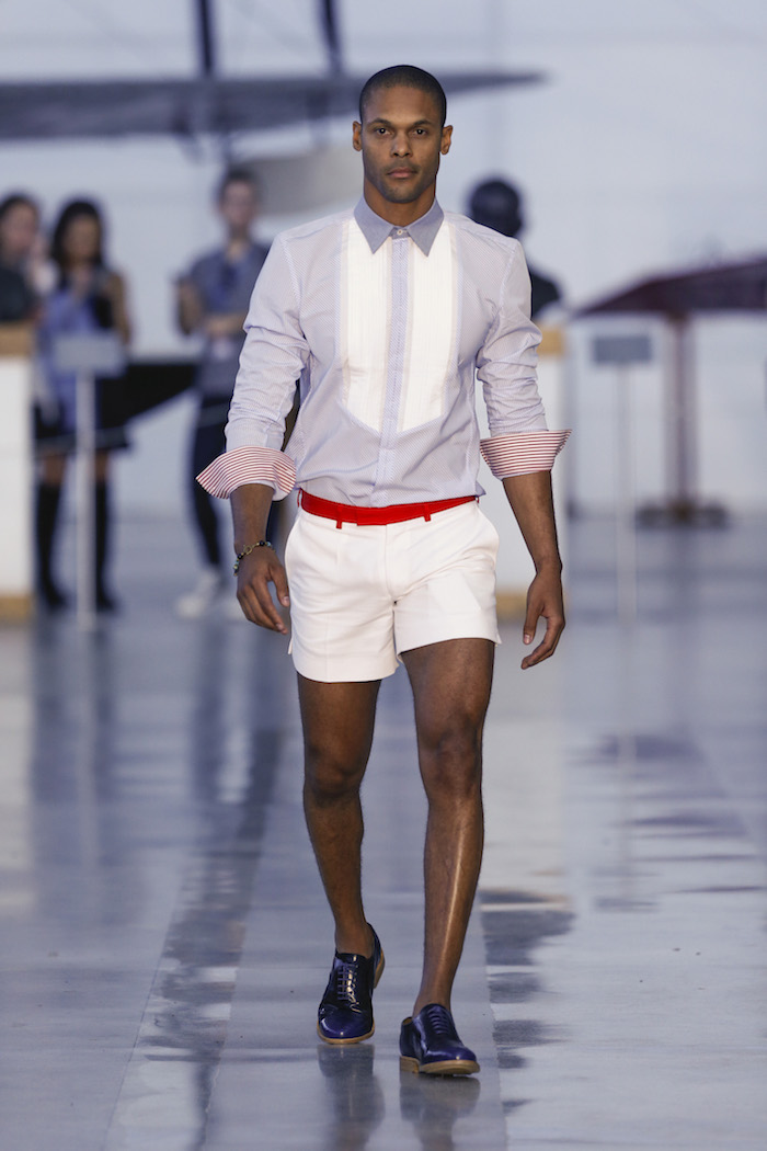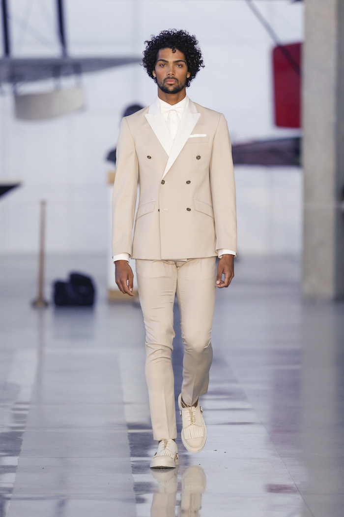 聞くところによると、ポルトガルのファッションシーンきっての実力派メンズウェアデザイナーだという。デザイナーの名前は Nuno Gama (ヌノ・ガマ)。今季コレクションの会場には、リスボン中心地に構える国営施設 Museu de Marinha (海洋博物館) が選ばれた。ルネサンスの古き良き時代を思わせる船舶がところ狭しと陳列されたランウェイで登場したのは、テーラリングをベースにしたマリンルック。中には「南蛮渡来」の趣を感じさせるオリエンタルな意匠が取りれられたルックも登場し、古くから貿易産業で栄えたポルトガルの文化的背景が垣間見えるラインナップとなった。ポルトガルらしいこんがり焼けたテラコッタスキンに隆々しい筋肉質のモデル。それをさらに際立たせるようなタイトなサイジングとマイクロミニのショーツ。日本ではなかなか見られないような、蛍光色にも見えるほど真っ白なシャツに強烈なタンジェリンオレンジのコントラスト。プレス向けの室内のショーに次いで、外の庭園で行われた一般の観客向けのショーが終わるころには、あまりの熱気に軽く目眩がするほどだった。これは気候によるものか、はたまたお色気モデルによるものか。