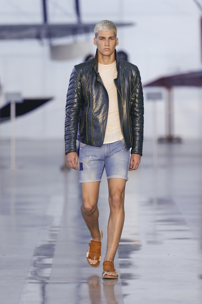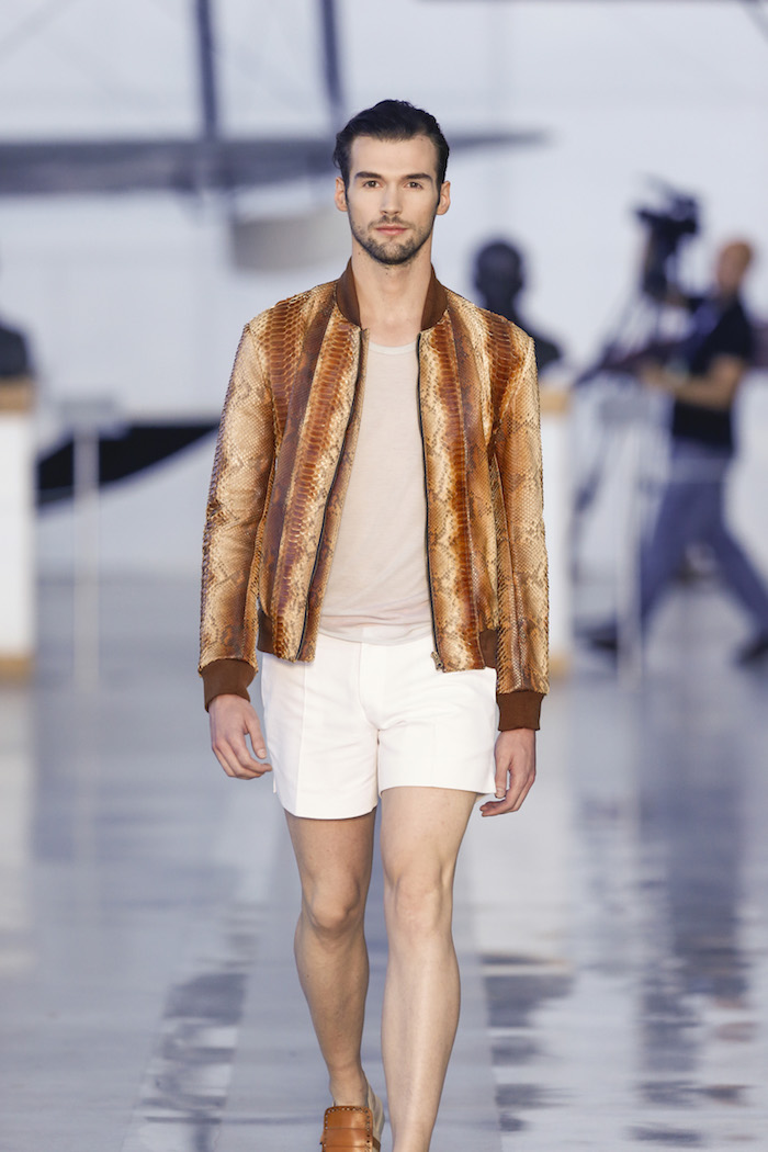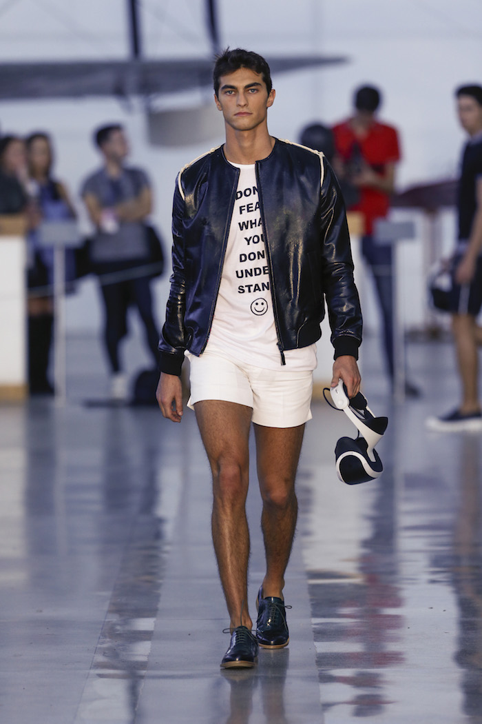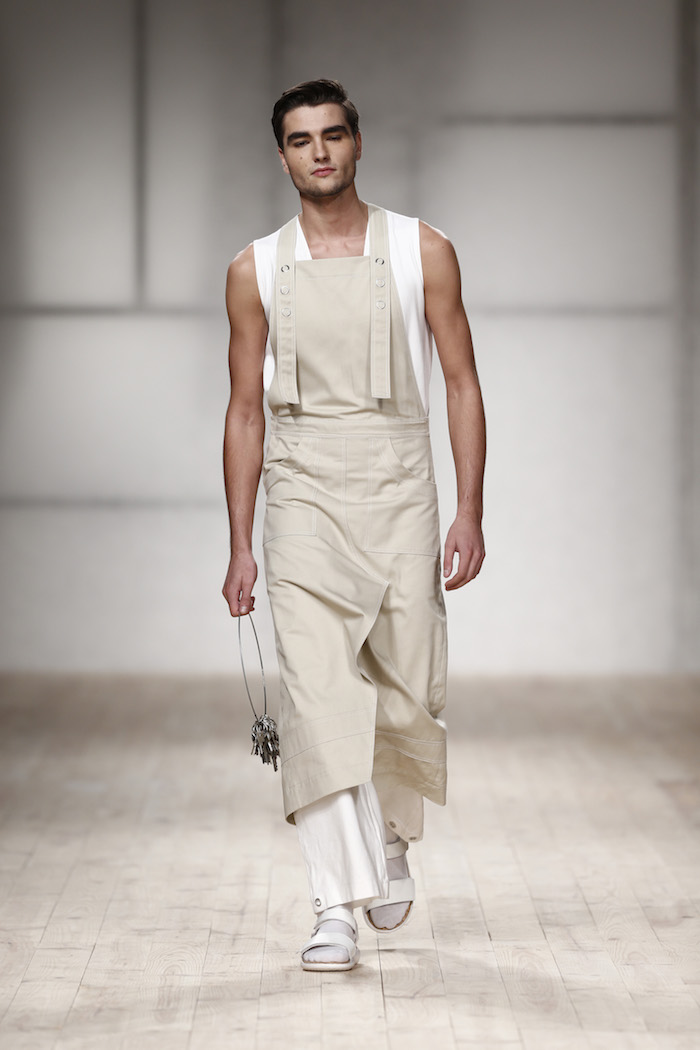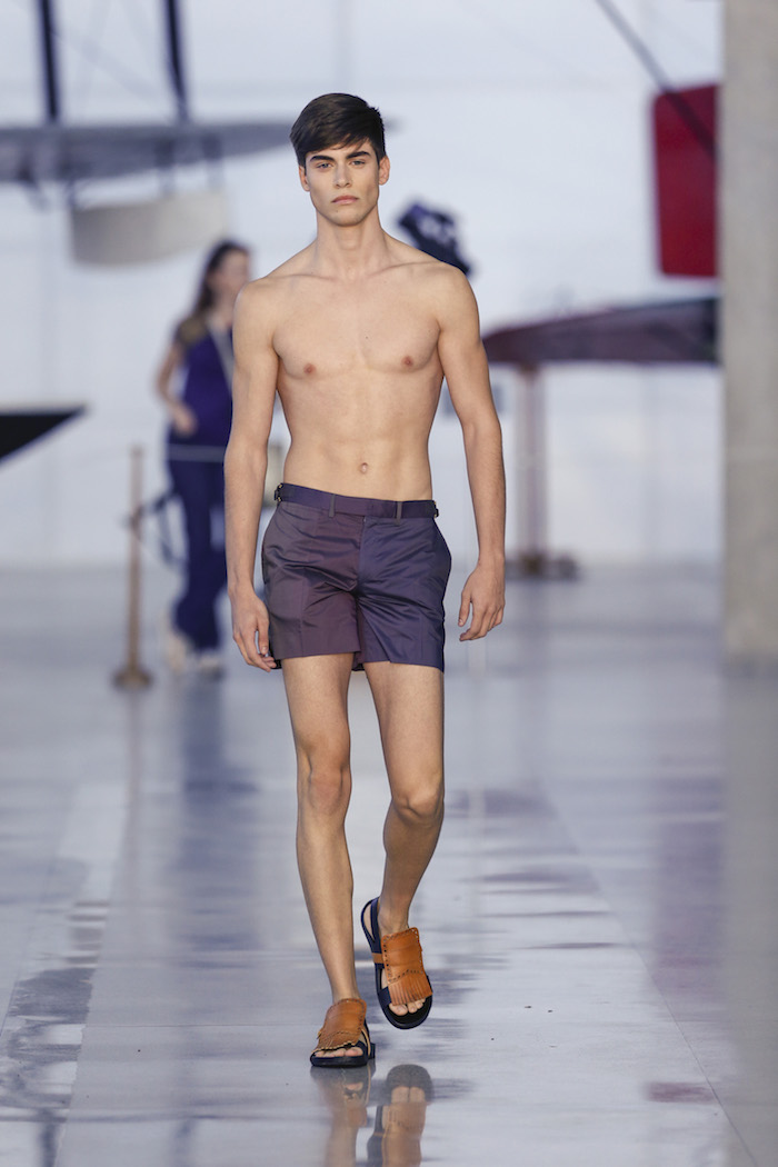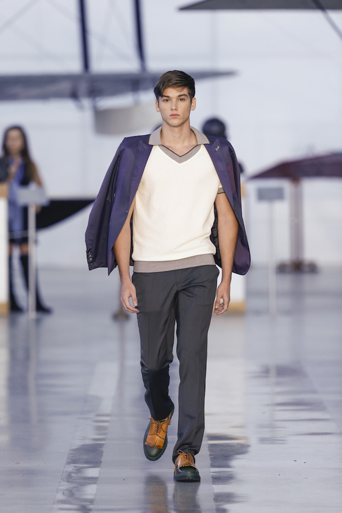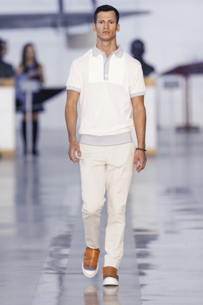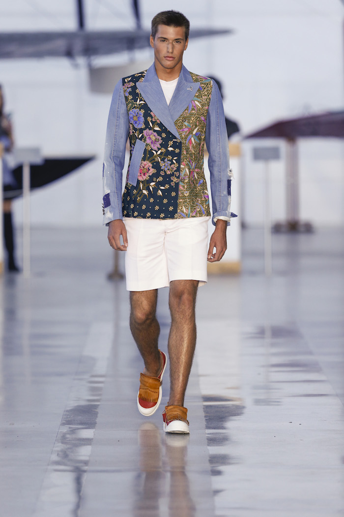 聞くところによると、ポルトガルのファッションシーンきっての実力派メンズウェアデザイナーだという。デザイナーの名前は Nuno Gama (ヌノ・ガマ)。今季コレクションの会場には、リスボン中心地に構える国営施設 Museu de Marinha (海洋博物館) が選ばれた。ルネサンスの古き良き時代を思わせる船舶がところ狭しと陳列されたランウェイで登場したのは、テーラリングをベースにしたマリンルック。中には「南蛮渡来」の趣を感じさせるオリエンタルな意匠が取りれられたルックも登場し、古くから貿易産業で栄えたポルトガルの文化的背景が垣間見えるラインナップとなった。ポルトガルらしいこんがり焼けたテラコッタスキンに隆々しい筋肉質のモデル。それをさらに際立たせるようなタイトなサイジングとマイクロミニのショーツ。日本ではなかなか見られないような、蛍光色にも見えるほど真っ白なシャツに強烈なタンジェリンオレンジのコントラスト。プレス向けの室内のショーに次いで、外の庭園で行われた一般の観客向けのショーが終わるころには、あまりの熱気に軽く目眩がするほどだった。これは気候によるものか、はたまたお色気モデルによるものか。