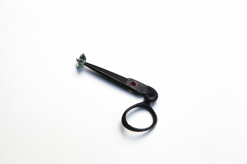 参加アーティストの一人、スイスのジュエリー作家 Bernhard Schobinger (ベルンハルト・ショービンガー) が用いるのは、割れたガラスをはじめとするファウンド・オブジェを使ったジュエリー作品。愛と権力、そして欲望の対象であるジュエリーが、”身体” の不在によってその有用性を謳歌するのではないか、という考察のもと、作品と身体の主従関係を問いかけている。