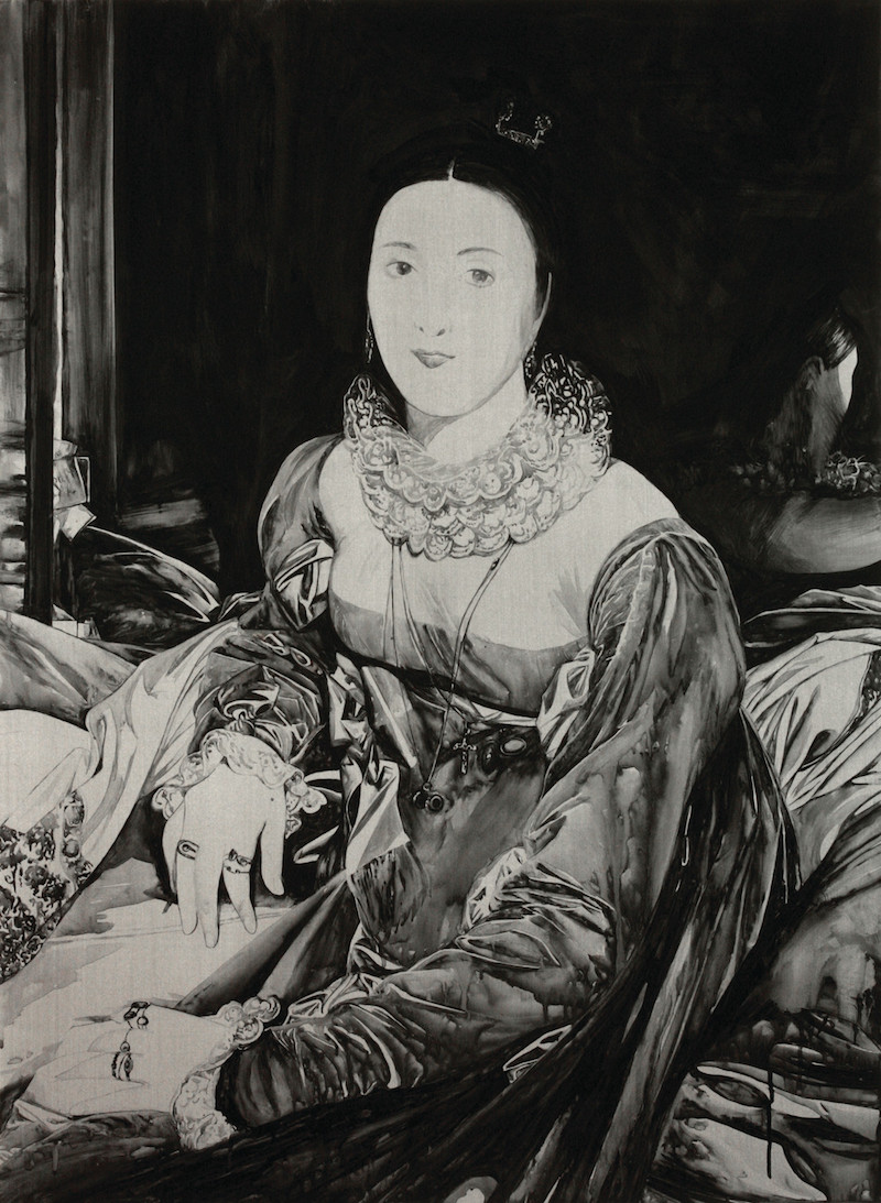 二人目の作者、Anne Laure Sacriste (アンヌ・ロール・サクリスト) が用いるのは絵画。ルネッサンス以降、絵画の基礎技法として広く知られてきた遠近法と、その中で生まれた消失点という曖昧な場所に着目し、いかに臨場感のある絵画作品が観客を別の世界へと引き込み、また同時に室内と外や、部分と全体の移ろいやすく相対的な関係を浮き彫りにしている。