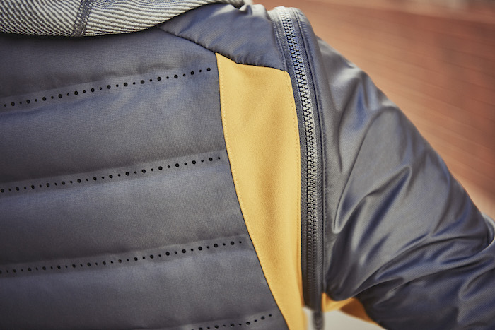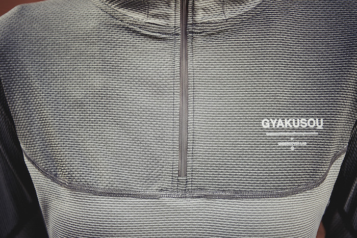 今回のコレクションは、冬の寒い季節にもランナーが走り続けられるように様々なテクノロジーを搭載した10型のアイテムがラインナップ。暖かさと同時に体温調節機能も備えたエアロリアクトや、エアロロフト機能を搭載したアイテムや、「NikeLab GYAKUSOU ジップオフ エアロロフト ジャケット」にはナイキアパレルとしては初めての Quickburst® ジッパーをスリーブに採用、ランナーが簡単にスリーブを外しベストとして着られるようにデザインされるなど、ランニングの初めから最中、最後まで快適に過ごせるように考えし尽くされたデザインとなっている。カラーパレットにはニュートラルカラーが多い同コレクションだが、今回は対照の色味をあえてアクセントとしているのも特徴的だ。