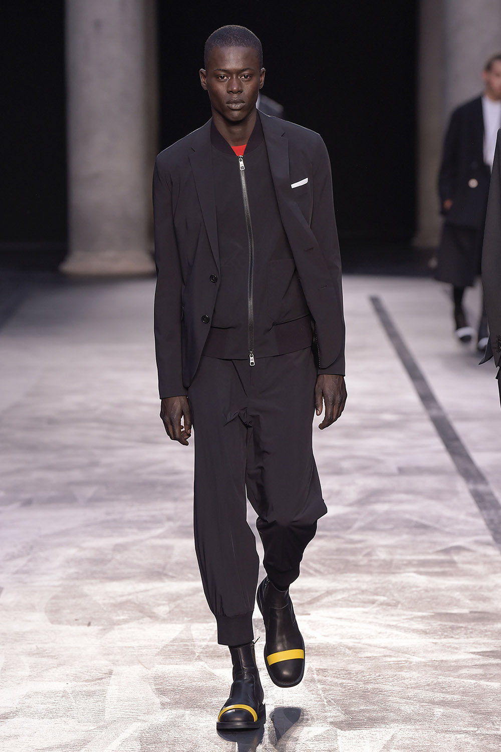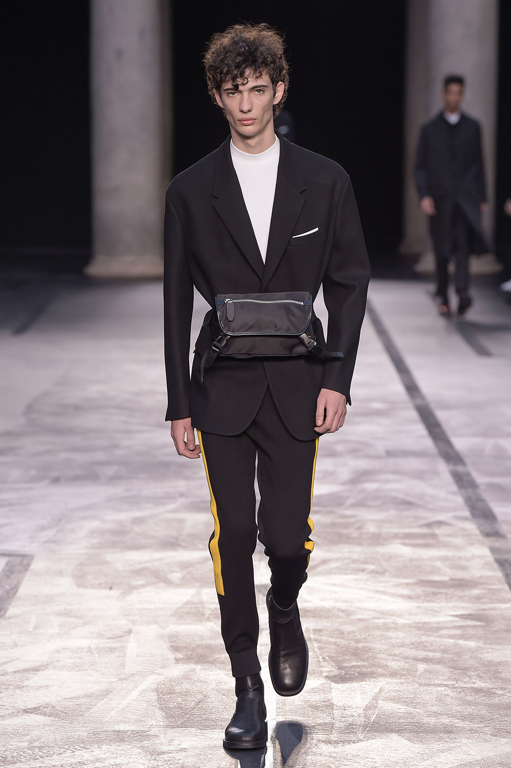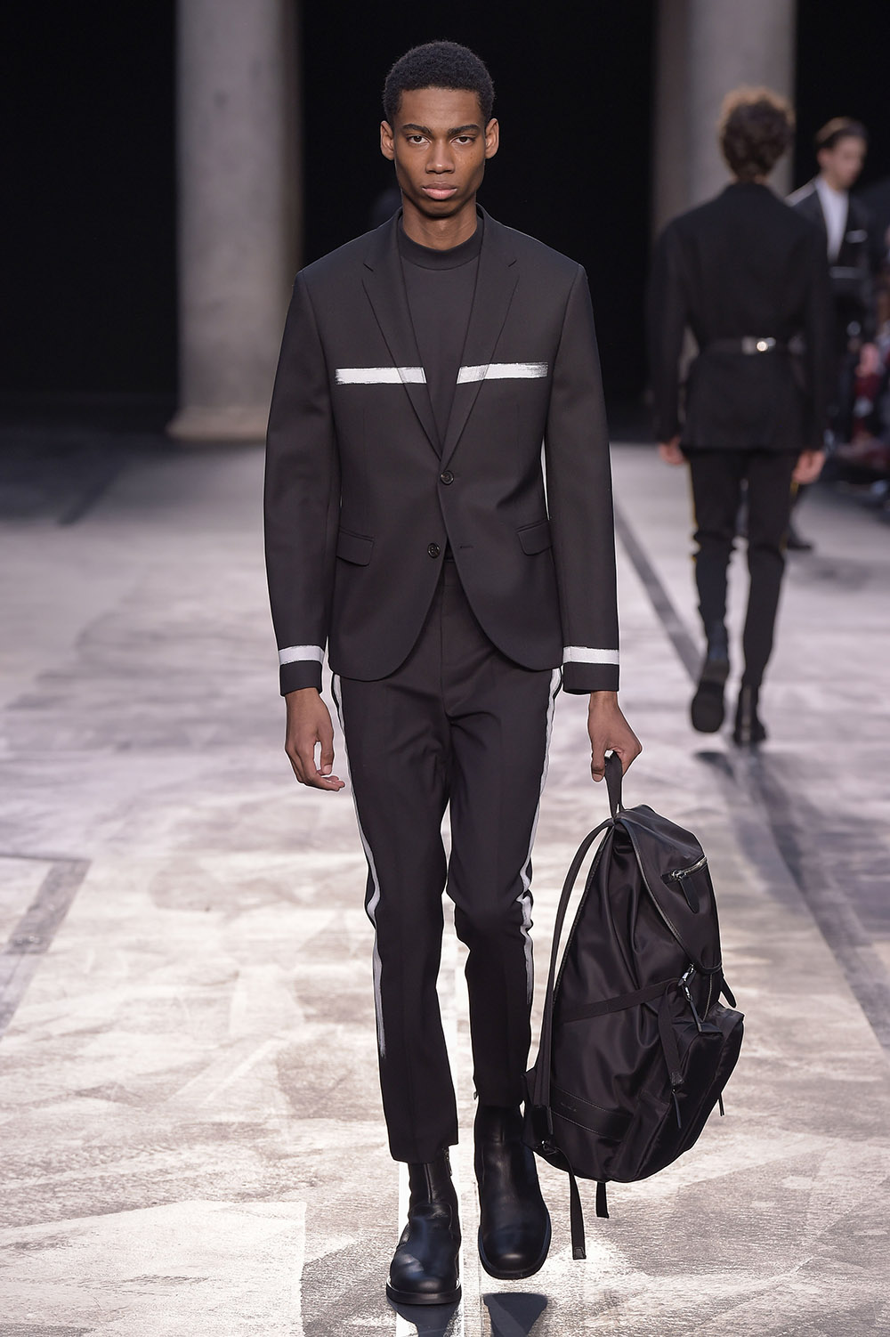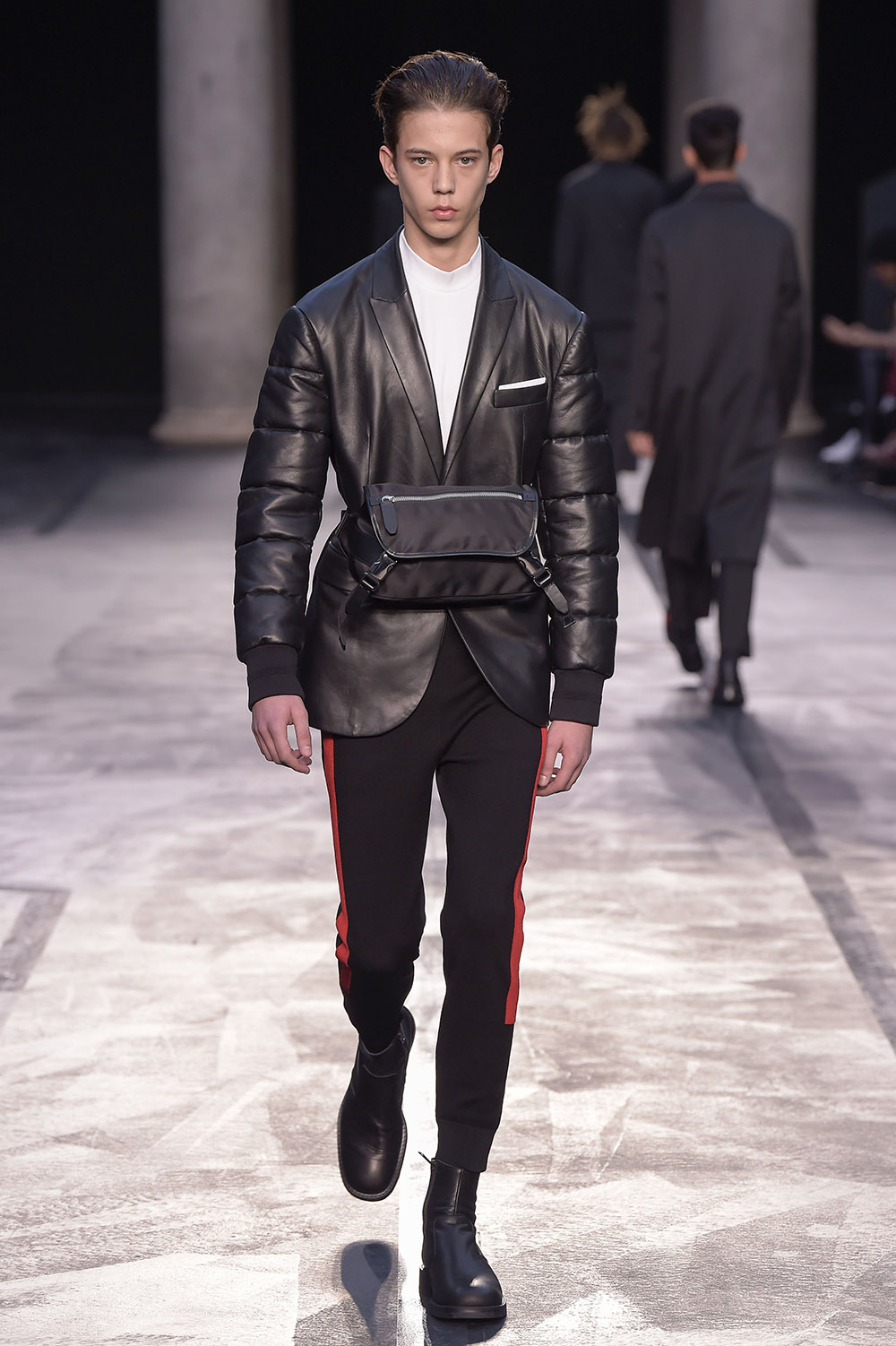 14日にミラノで発表された、Neil Barrett (ニール バレット) 2017-18年秋冬 コレクション。今季初となるメンズ、ウィメンズ統合のランウェイショーでは、得意のテーラリング、スポーツウェアとのハイブリッドミックスはそのままに、ソリッドなアクセサリー使いや、Siouxsie & The Banshees (スージー・アンド・ザ・バンシーズ) をはじめ80年代のロックスターたちから着想を得たアイコニックなモチーフ使いで、これまでにないエッジの効いたスタイリングを全面に押し出している。