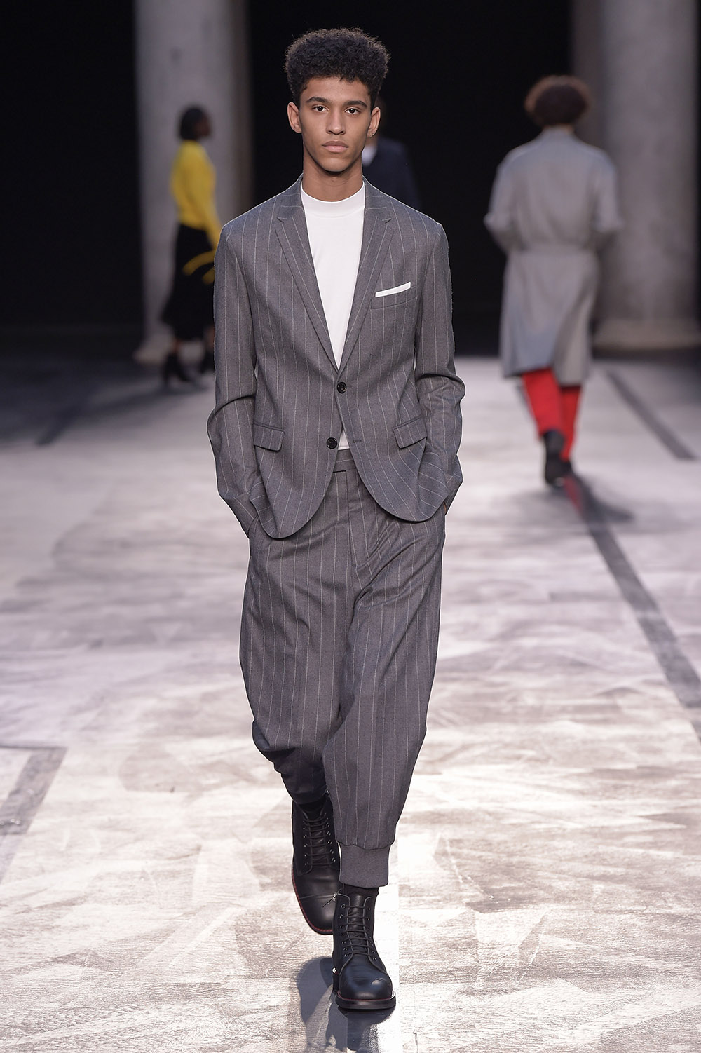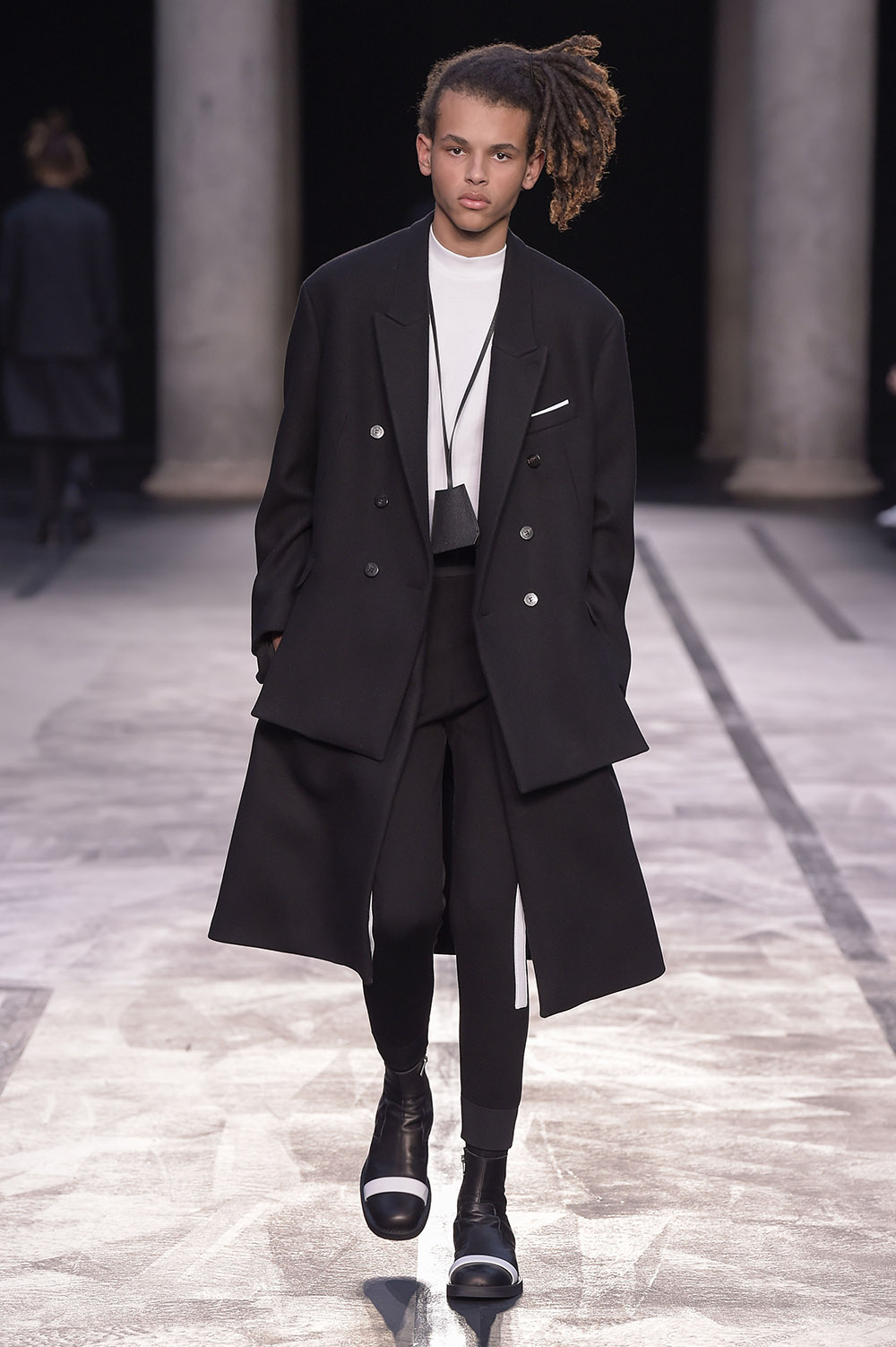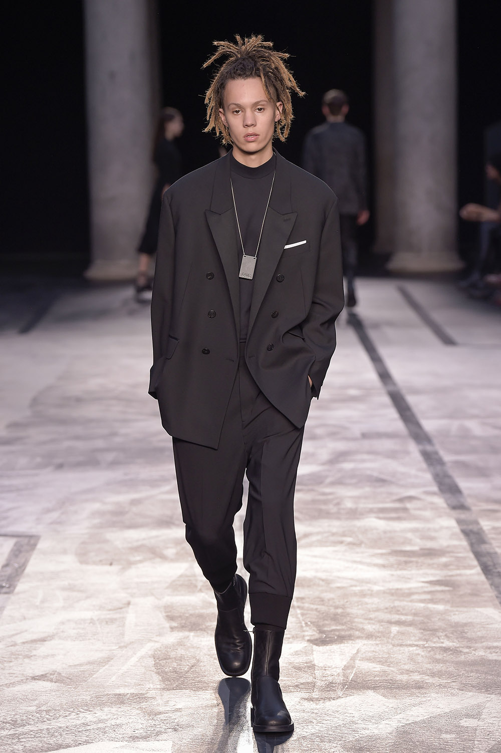 14日にミラノで発表された、Neil Barrett (ニール バレット) 2017-18年秋冬 コレクション。今季初となるメンズ、ウィメンズ統合のランウェイショーでは、得意のテーラリング、スポーツウェアとのハイブリッドミックスはそのままに、ソリッドなアクセサリー使いや、Siouxsie & The Banshees (スージー・アンド・ザ・バンシーズ) をはじめ80年代のロックスターたちから着想を得たアイコニックなモチーフ使いで、これまでにないエッジの効いたスタイリングを全面に押し出している。