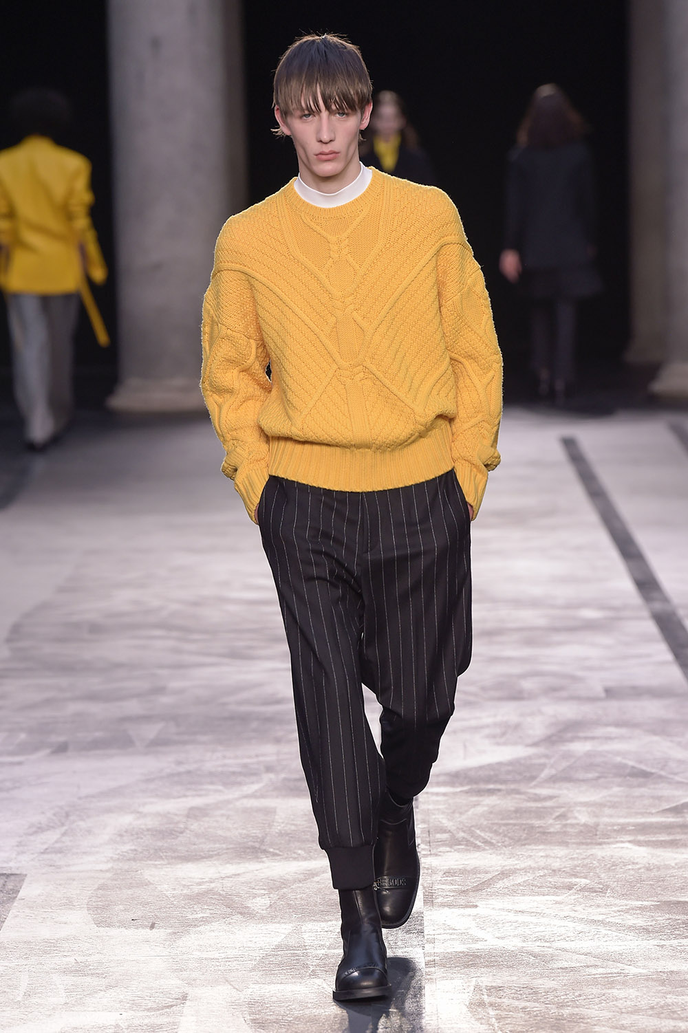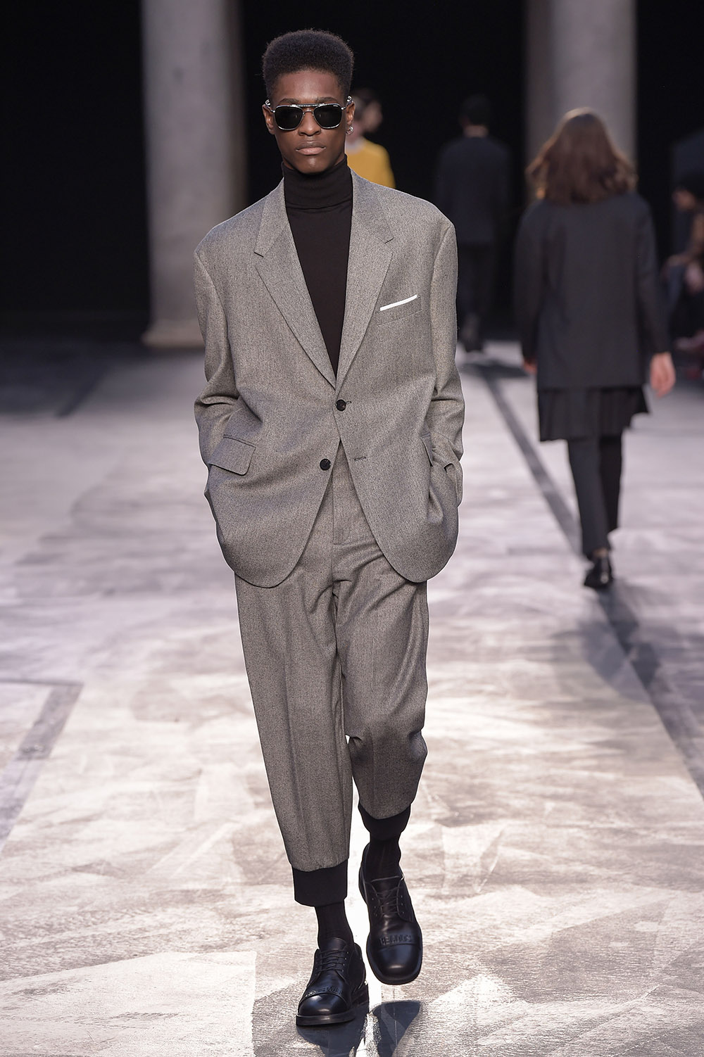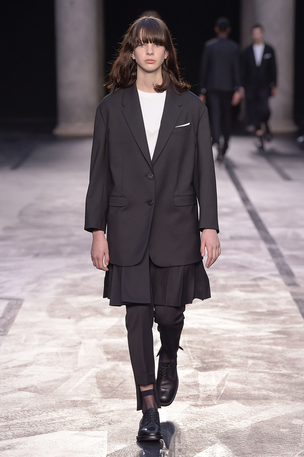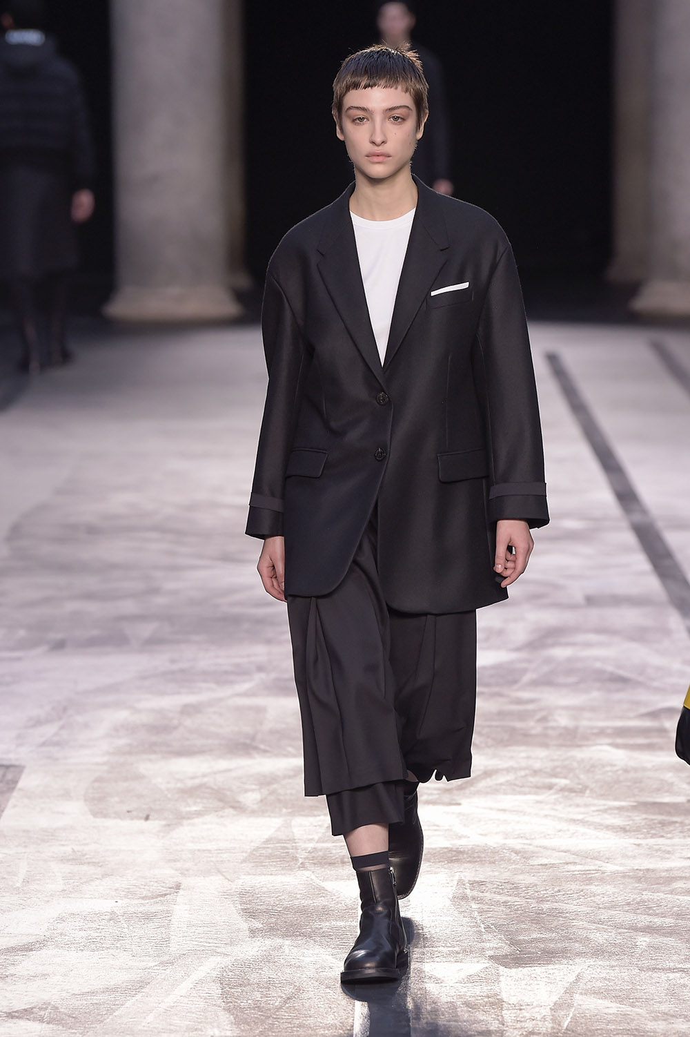 14日にミラノで発表された、Neil Barrett (ニール バレット) 2017-18年秋冬 コレクション。今季初となるメンズ、ウィメンズ統合のランウェイショーでは、得意のテーラリング、スポーツウェアとのハイブリッドミックスはそのままに、ソリッドなアクセサリー使いや、Siouxsie & The Banshees (スージー・アンド・ザ・バンシーズ) をはじめ80年代のロックスターたちから着想を得たアイコニックなモチーフ使いで、これまでにないエッジの効いたスタイリングを全面に押し出している。