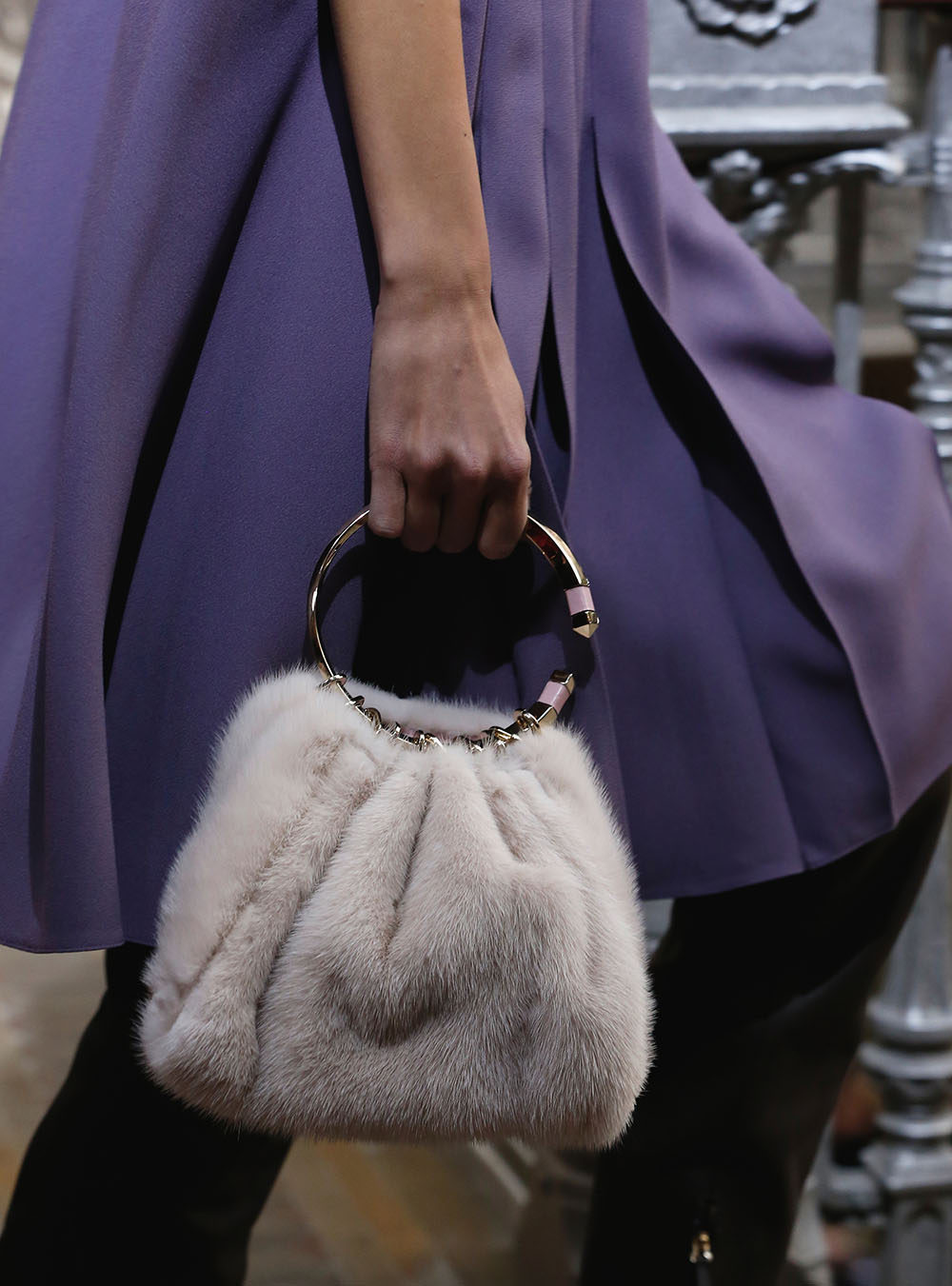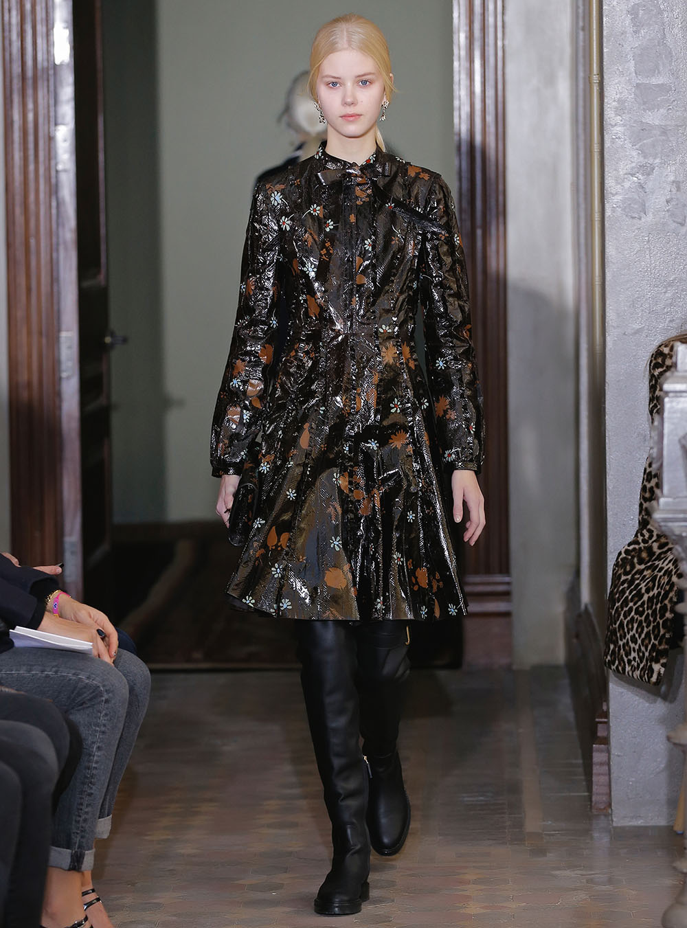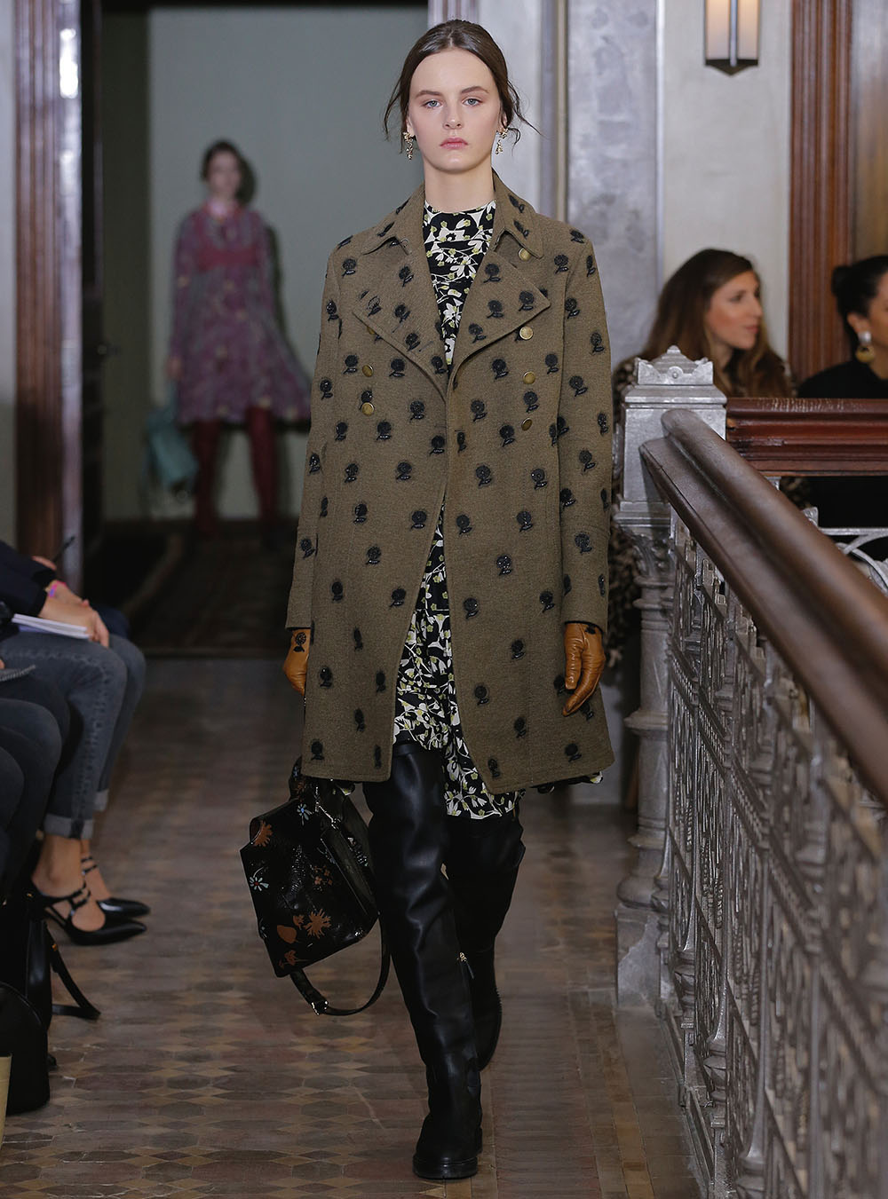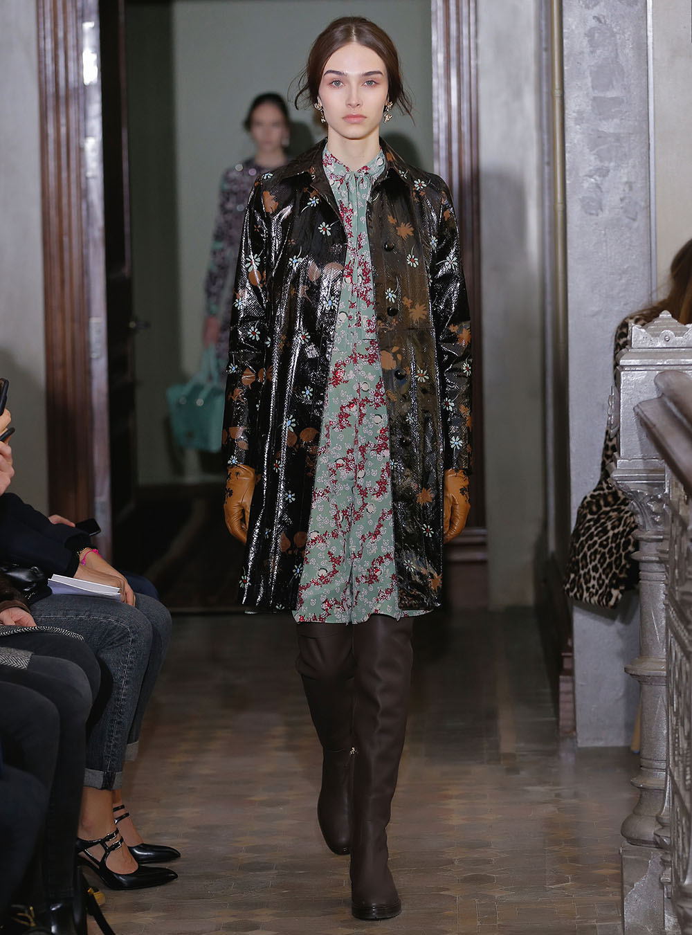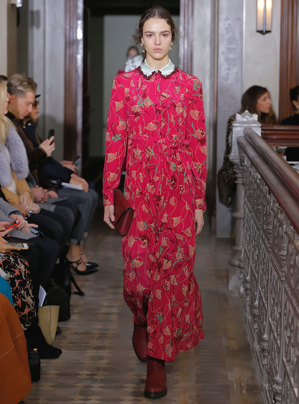 Pierpaolo Piccioli (ピエールパオロ・ピッチョーリ) が今回発表したのは、ノスタルジックなフラワーモチーフをプリントやレース、繊細なエンブロイダリーワークで表現したワードローブ。高い位置でマークされたウエストが至極フェミニンな印象の洋服には、対照的にワイルドなライディングブーツやアイコニックな「ロックスタッズ」のバッグ、アクセサリー、そしてフラットのスリッポンが合わせられた。