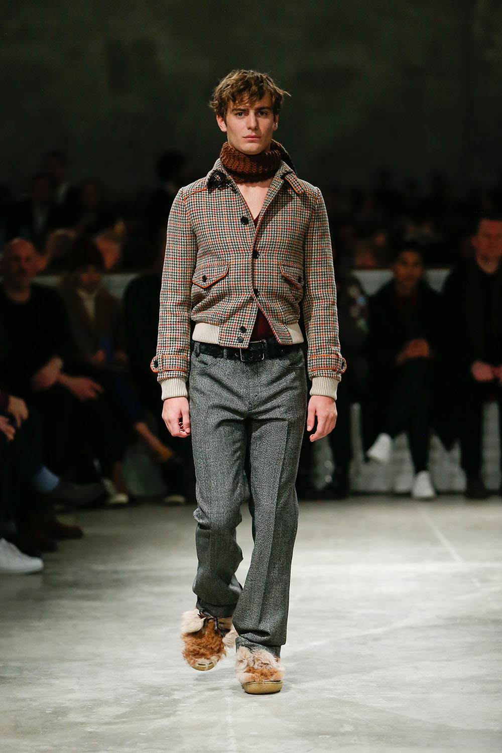 Prada (プラダ) 2017-18年秋冬 メンズウェア コレクション、そして2017年フォール ウィメンズコレクションがミラノにて発表。Rem Koolhaas (レム・コールハース) 率いる OMA が手がけた会場では、リラックス感溢れるシルエットとプリミティブなオールド・アメリカンモチーフを端正なテーラリングで表現したメンズルック、そしてグレンチェックやハンズトゥースなどクラシカルなプリントにポップなカラーリングのミックス、そしてリュクスな素材使いのアウターでアップデートさせたウィメンズルックが出揃った。
