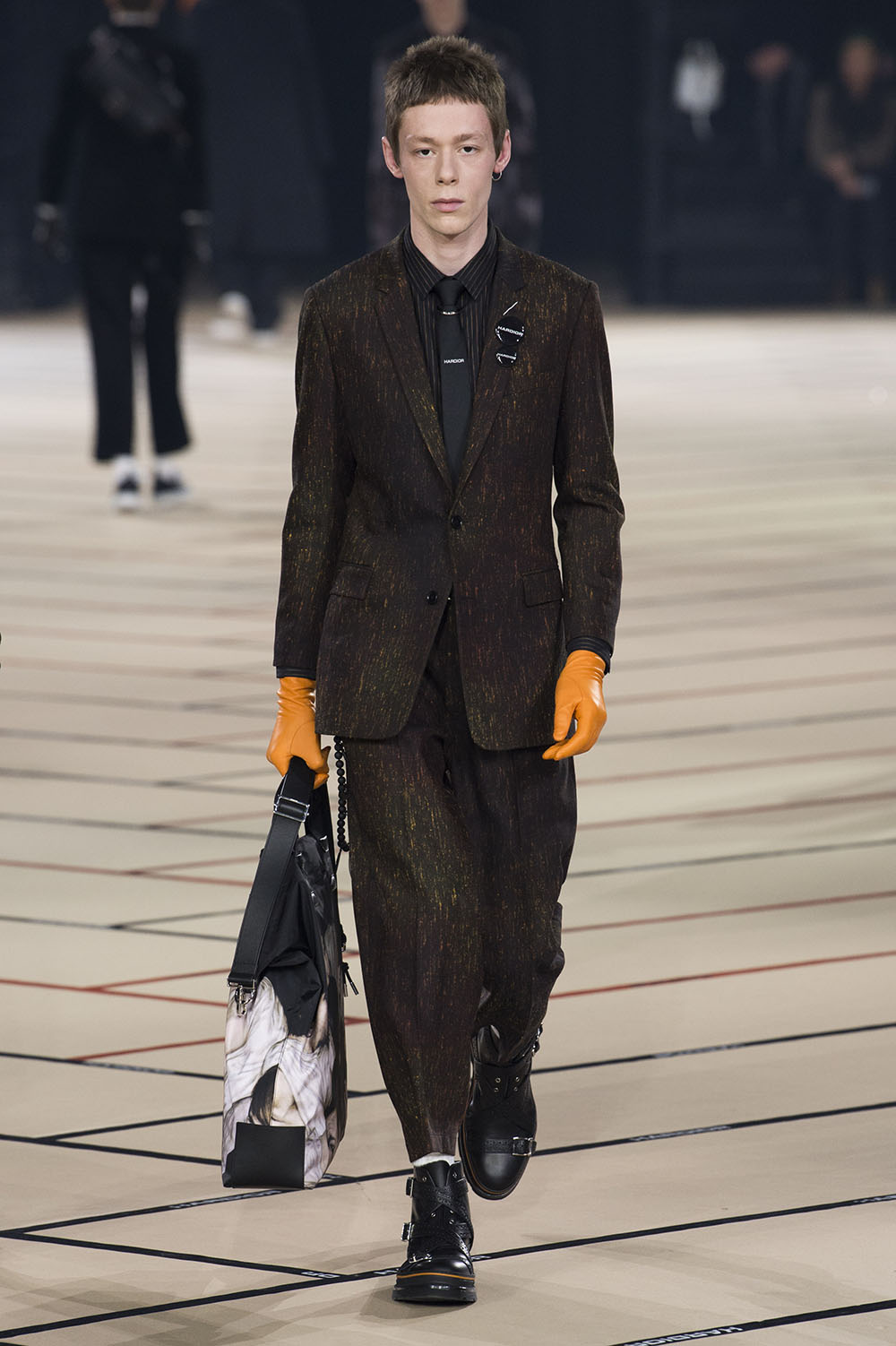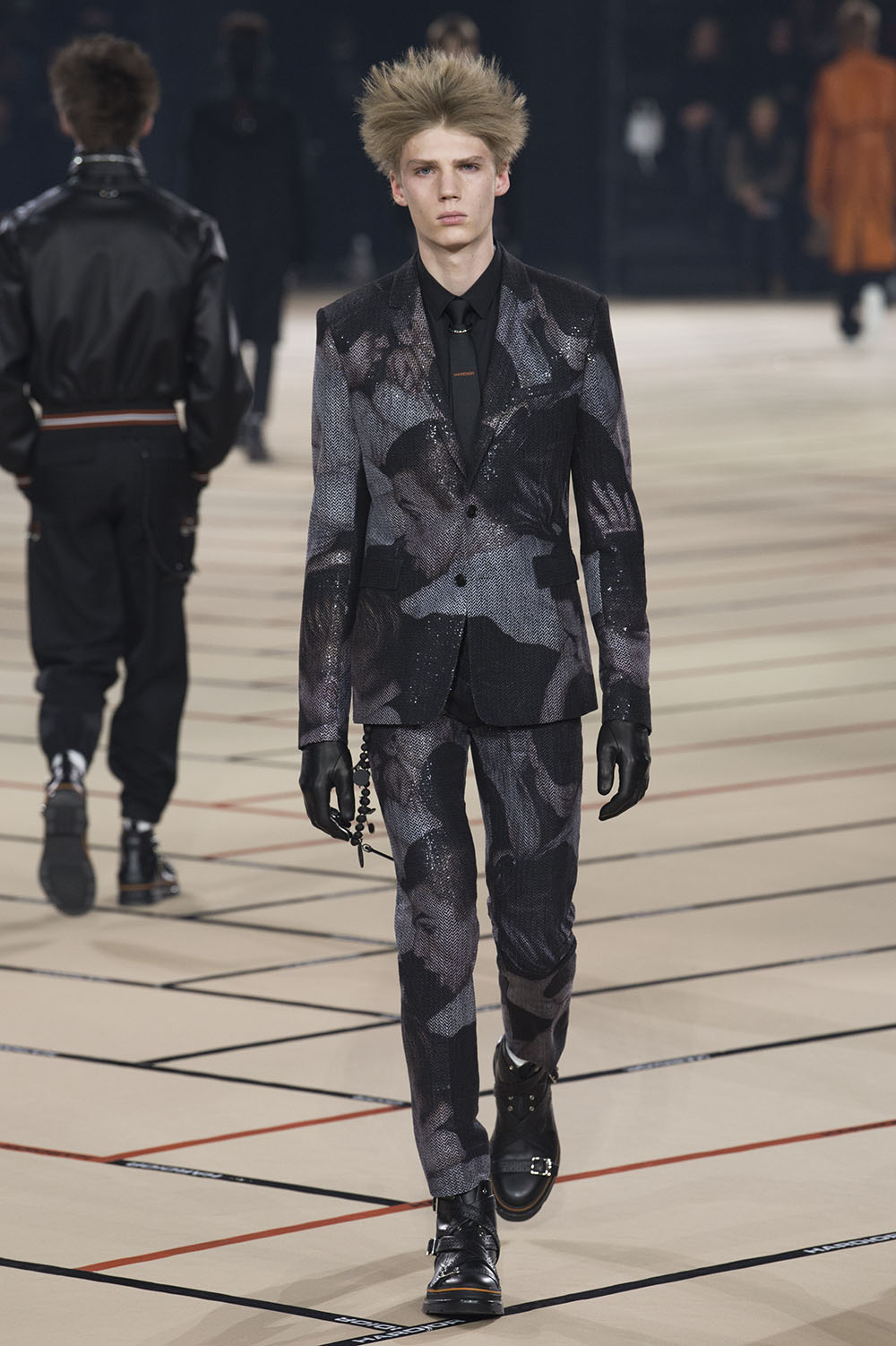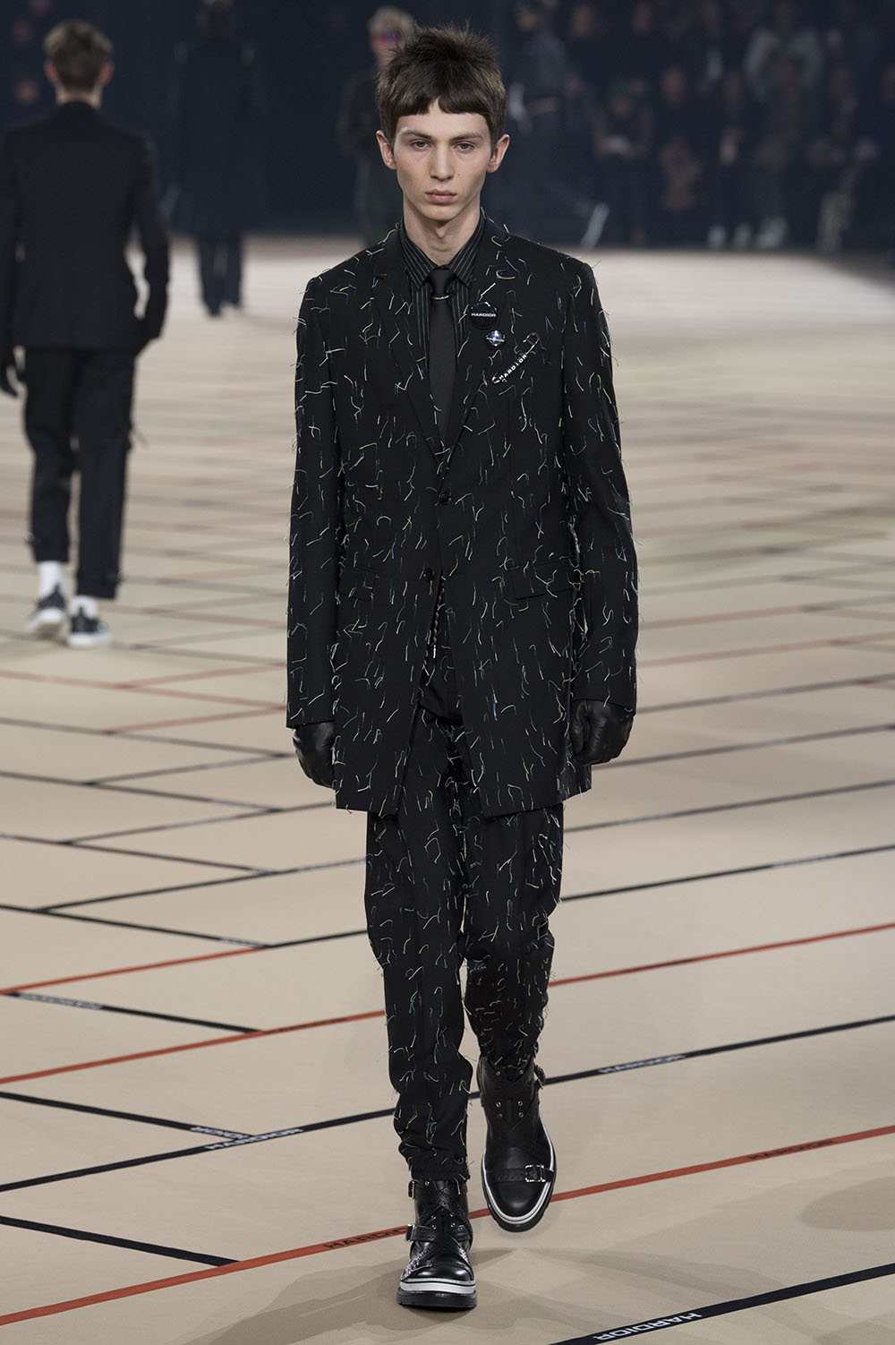 Kris Van Assche (クリス・ヴァン・アッシュ) による DIOR HOMME (ディオール オム) 2017-18年秋冬コレクションが21日、パリ・グランパレにて発表された。ニューウェーブや、「ガバ」と呼ばれるハードコアテクノなど、80~90年代に興隆した音楽シーンやレイヴカルチャー、そしてティーンエイジャーの爆発的なエネルギーをインスピレーションにした今季。得意のサルトリアリスティックなアプローチは、ハードコアなアンダーグラウンドカルチャーに着想を得た極度にエッジを効かせたスタイリングでアップデートされている。
