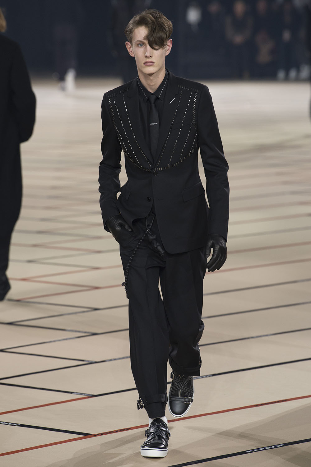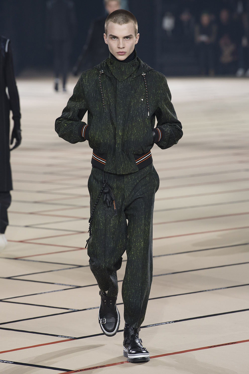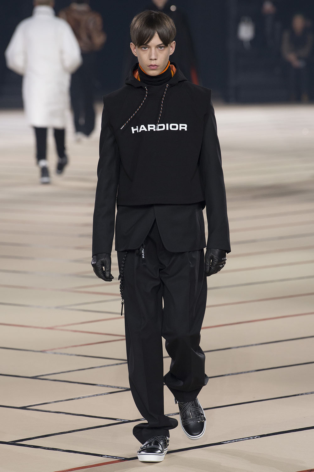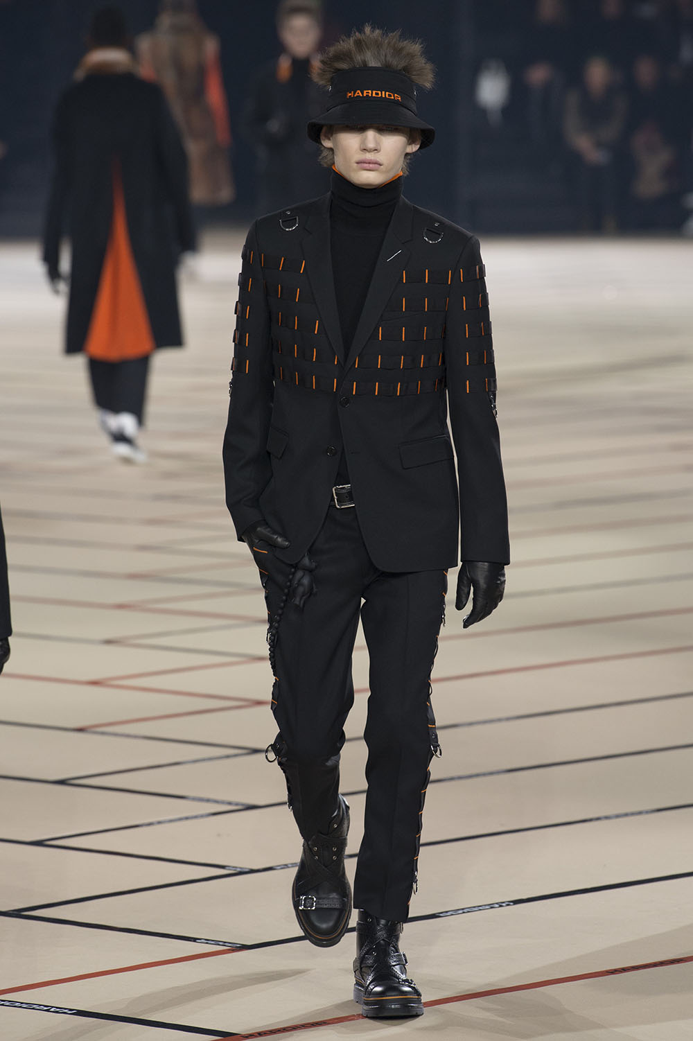 Kris Van Assche (クリス・ヴァン・アッシュ) による DIOR HOMME (ディオール オム) 2017-18年秋冬コレクションが21日、パリ・グランパレにて発表された。ニューウェーブや、「ガバ」と呼ばれるハードコアテクノなど、80~90年代に興隆した音楽シーンやレイヴカルチャー、そしてティーンエイジャーの爆発的なエネルギーをインスピレーションにした今季。得意のサルトリアリスティックなアプローチは、ハードコアなアンダーグラウンドカルチャーに着想を得た極度にエッジを効かせたスタイリングでアップデートされている。