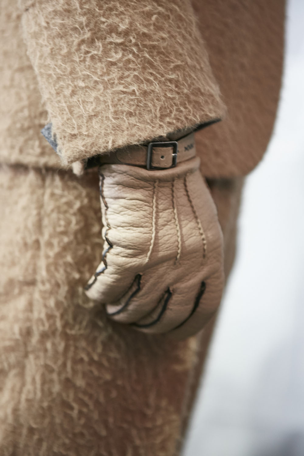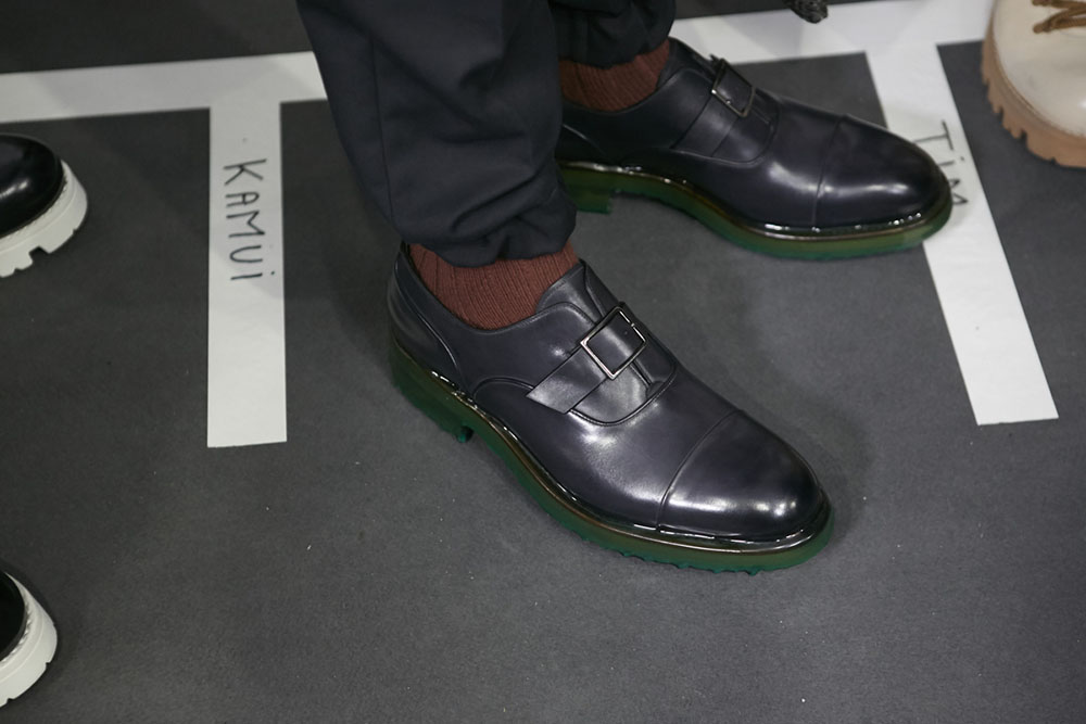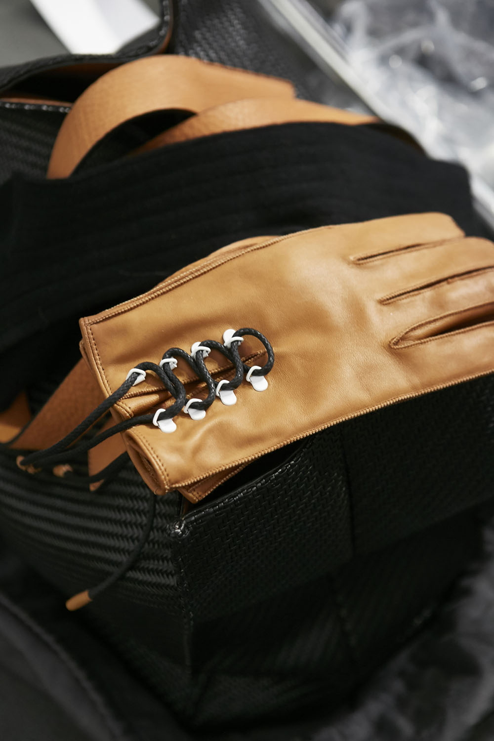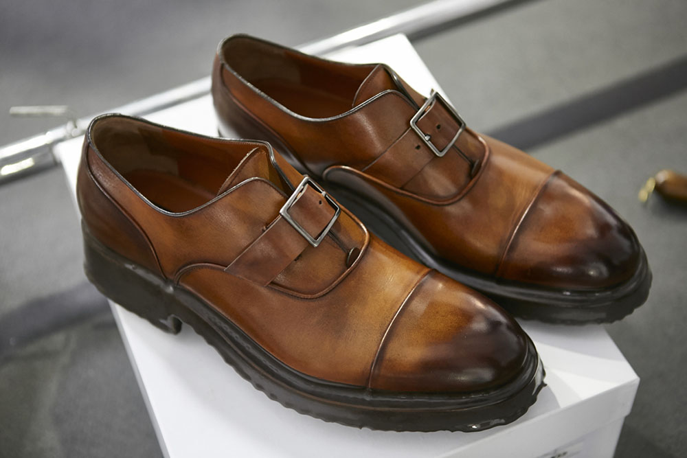 Anselm Kiefer (アンゼルム・キーファー) の空間作品「Seven Heavenly Palaces」を用いた会場では、軽やかなウィンターホワイトやライトグレーをはじめ、ディープなオックスブラッドやピーコックグリーン、ジャーナル ブルーなど力強いカラーコントラストが効いたワードローブが彩りを演出。最高級のメンズウェアとして名高い同ブランドらしく、キャメルやビキューナ、そしてナッパレザーを驚くほど細い糸状にカットして織機で織り上げた「ペッレ テスータ」と呼ばれる独自のファブリックなど、贅を尽くした素材使いが印象的だ。