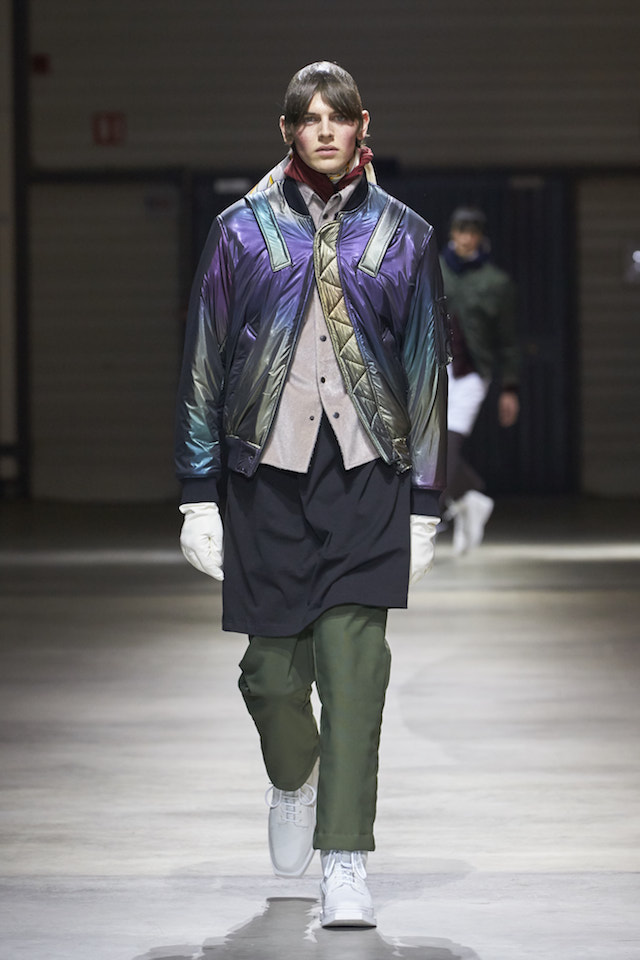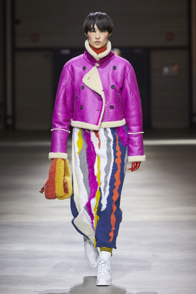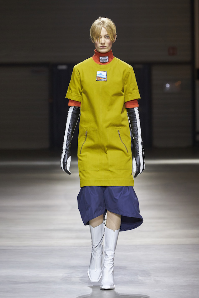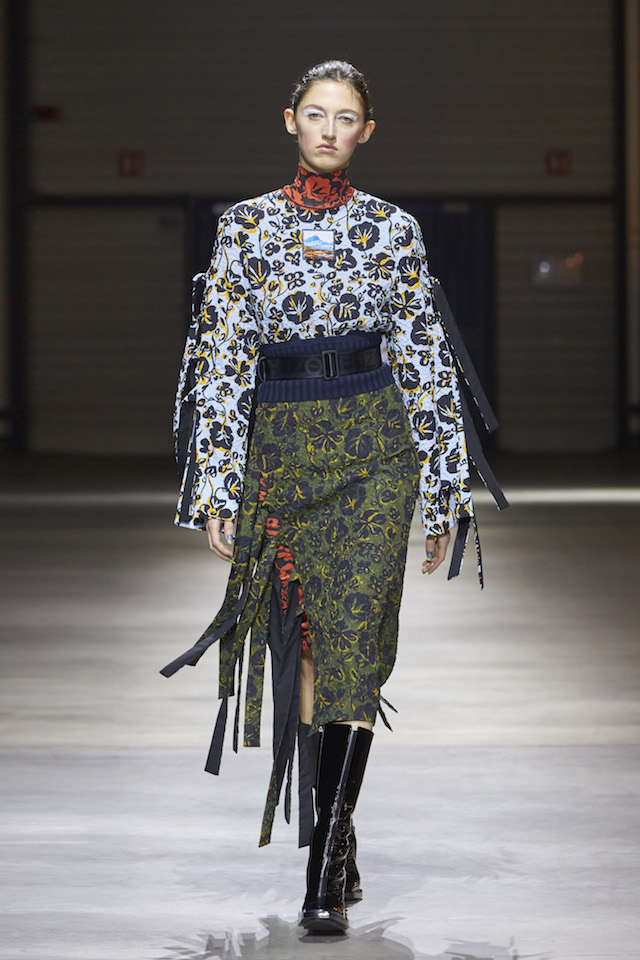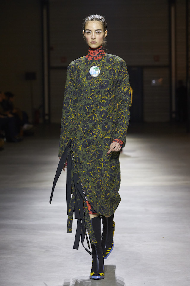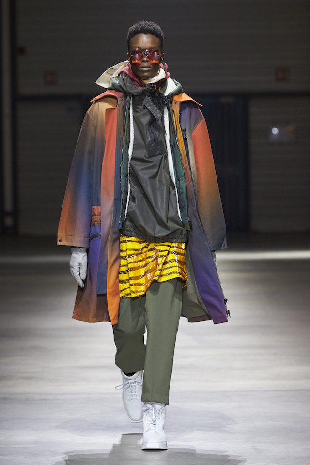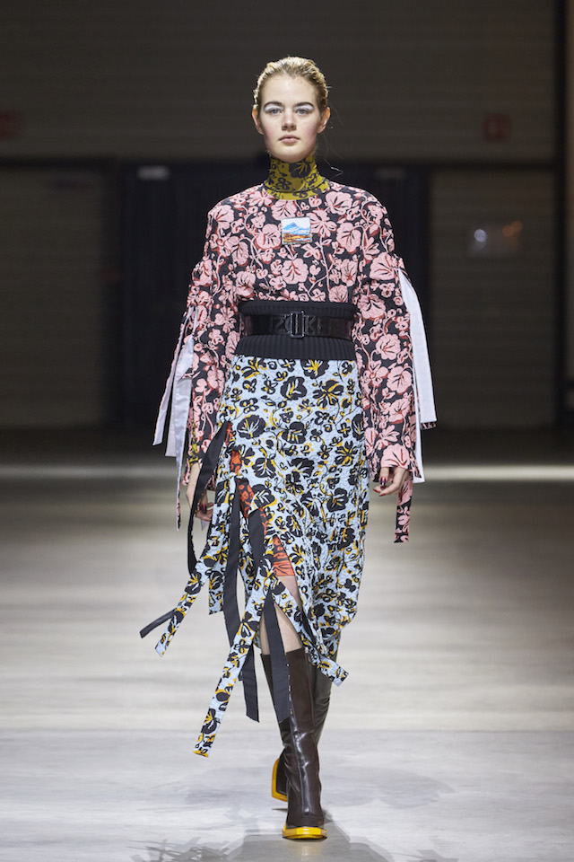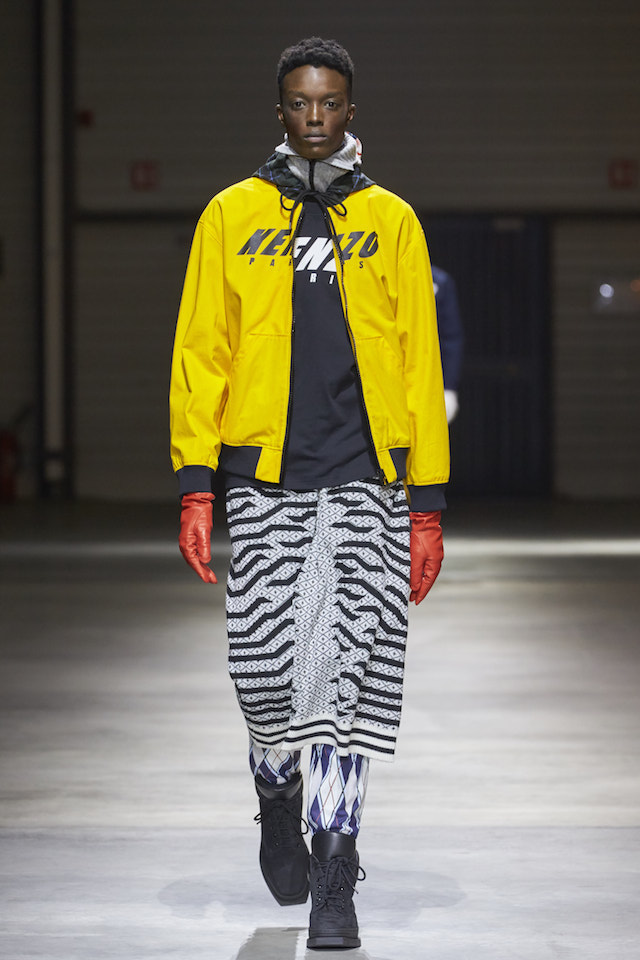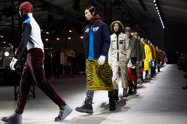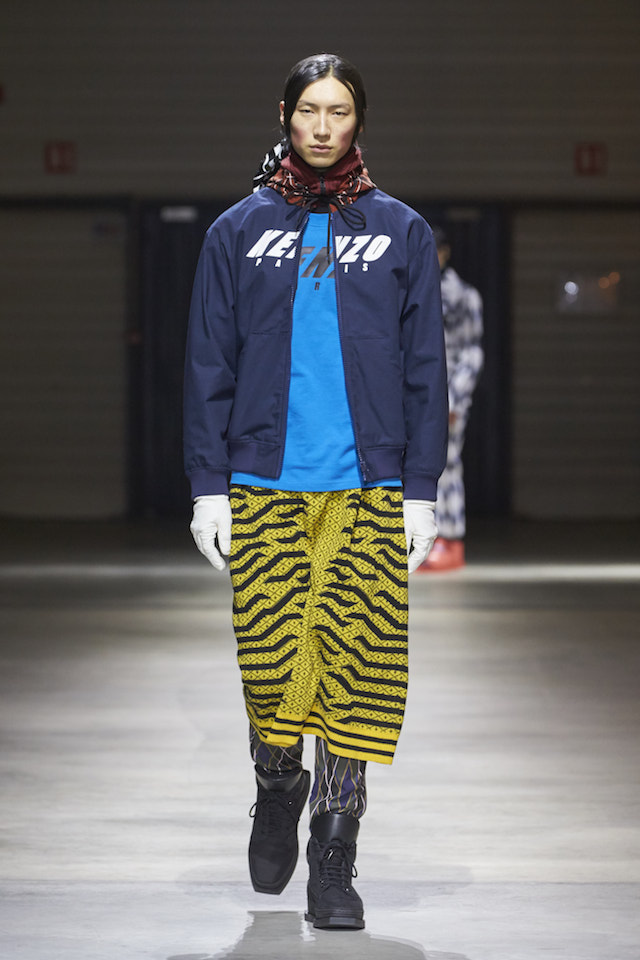 アークティック・サーフィン(北極圏でのサーフィン)のカルチャーから着想を得たという KENZO (ケンゾー) の2017年秋冬ウィメンズ&メンズコレクション。ビビッドなカラーパレットで彩られ、オーロラやハイビスカスなど多種多様なモチーフがプリントされたワークウェアが、Carol Lim (キャロル・リム) と Humberto Leon (ウンベルト・レオン) によって巧みにレイヤードされ、アーバンなスタイルへと昇華されている。IDEAS for Us (アイディアズ・フォー・アス) や Eath Guardians (アース・ガーディアンズ) といった環境保護団体と今シーズンよりパートナーシップを組んだ KENZO は、バックステージもセットの一部として見せるランウェイショーを展開。新たなネオ・エコロジカルスタイルをここに誕生させた。