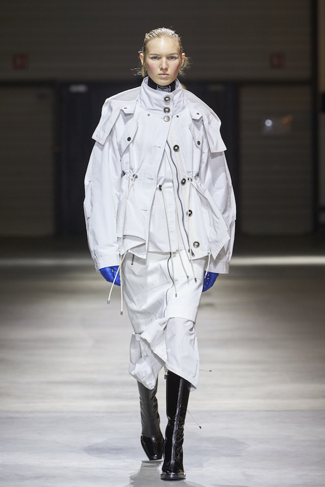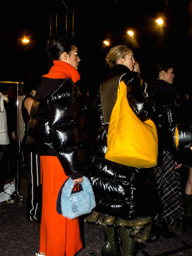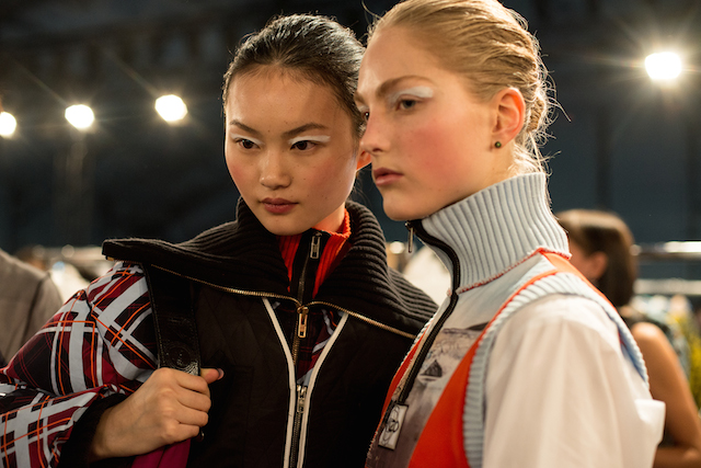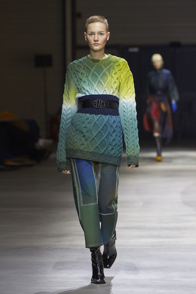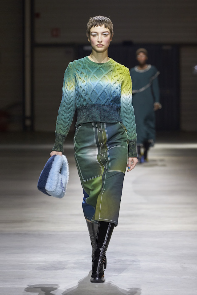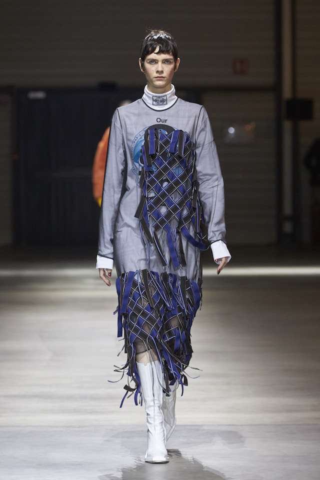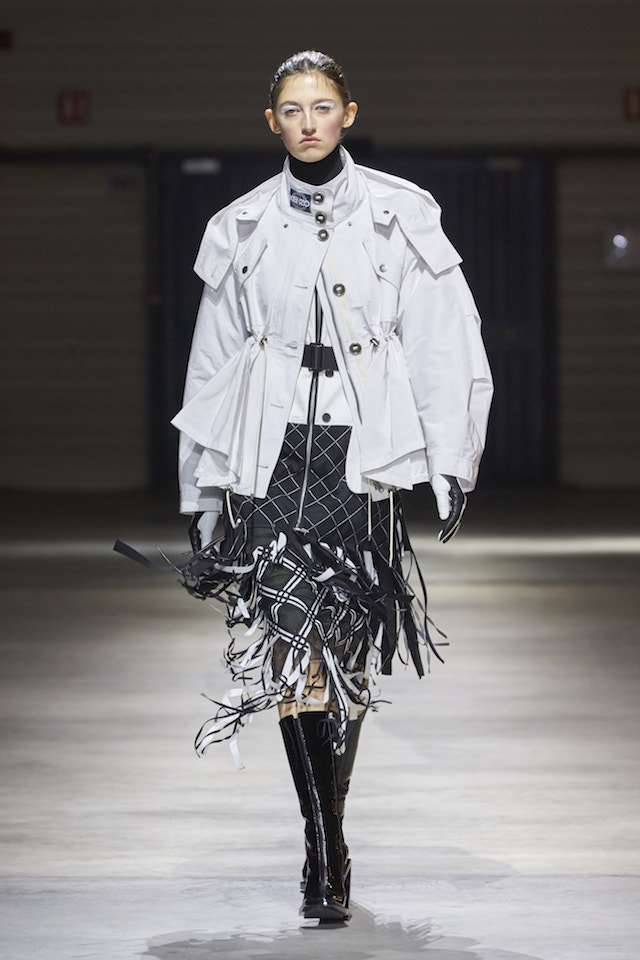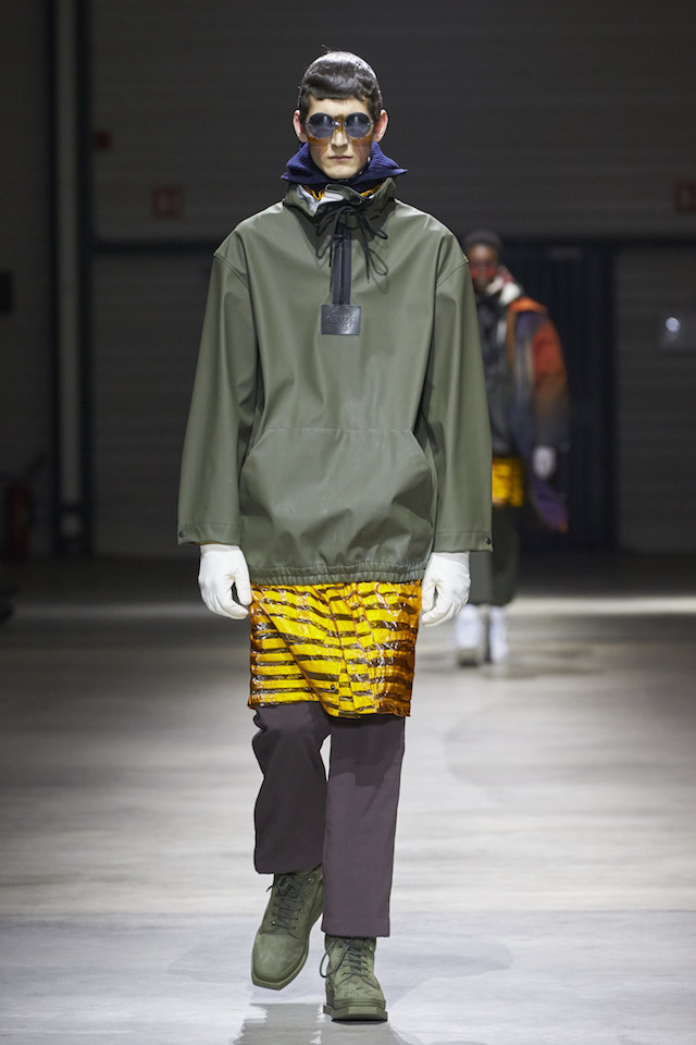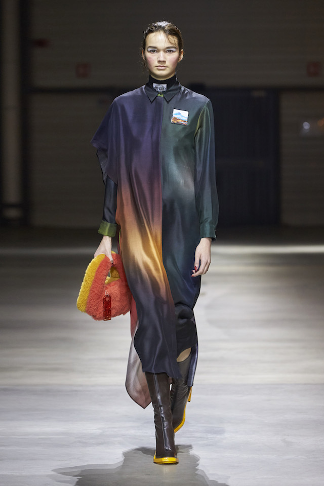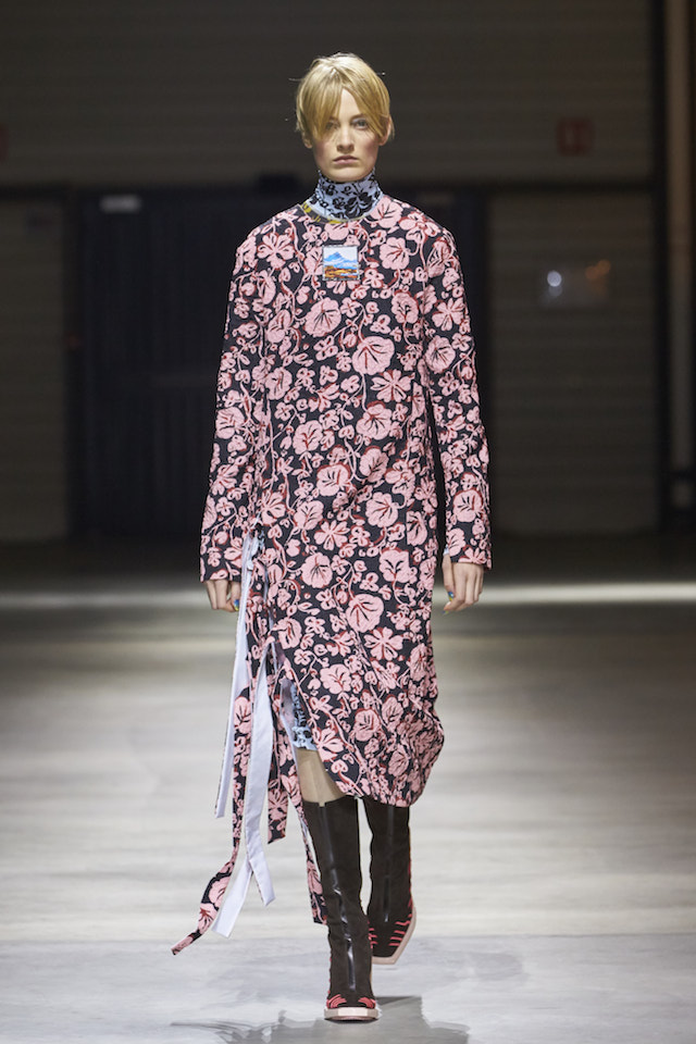 アークティック・サーフィン(北極圏でのサーフィン)のカルチャーから着想を得たという KENZO (ケンゾー) の2017年秋冬ウィメンズ&メンズコレクション。ビビッドなカラーパレットで彩られ、オーロラやハイビスカスなど多種多様なモチーフがプリントされたワークウェアが、Carol Lim (キャロル・リム) と Humberto Leon (ウンベルト・レオン) によって巧みにレイヤードされ、アーバンなスタイルへと昇華されている。IDEAS for Us (アイディアズ・フォー・アス) や Eath Guardians (アース・ガーディアンズ) といった環境保護団体と今シーズンよりパートナーシップを組んだ KENZO は、バックステージもセットの一部として見せるランウェイショーを展開。新たなネオ・エコロジカルスタイルをここに誕生させた。