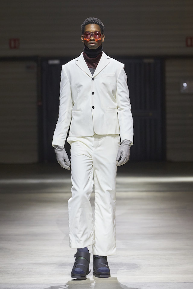 また、ランウェイショーの音楽を手掛けたのはR&Bミュージシャン兼音楽プロデューサーの Blood Orange (ブラッド・オレンジ) こと Dev Hynes (デヴ・ハインズ)。アクティビストとしても知られる人気アーティストは美しいピアノ演奏を披露し、ランウェイショーに華を添えた。